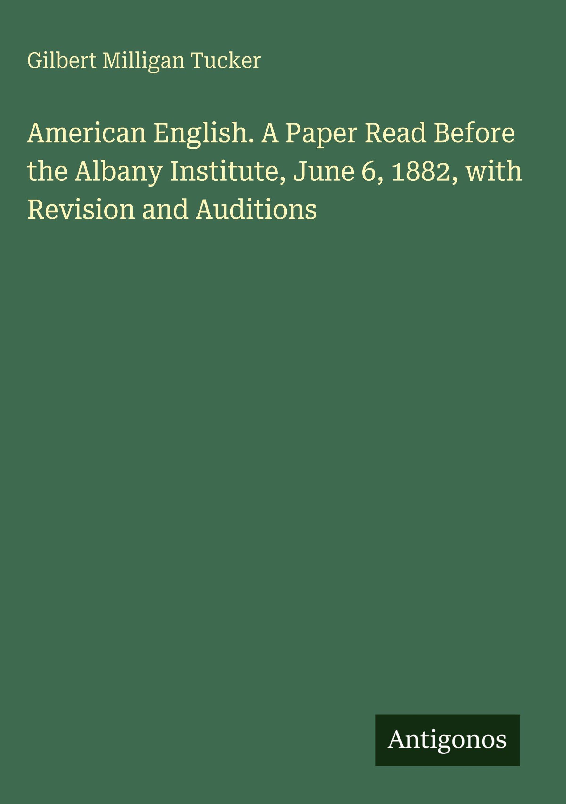 Gilbert Milligan Tucker: American English. A Paper Read Before the Albany Institute, June 6, 1882, with Revision..., Gebunden