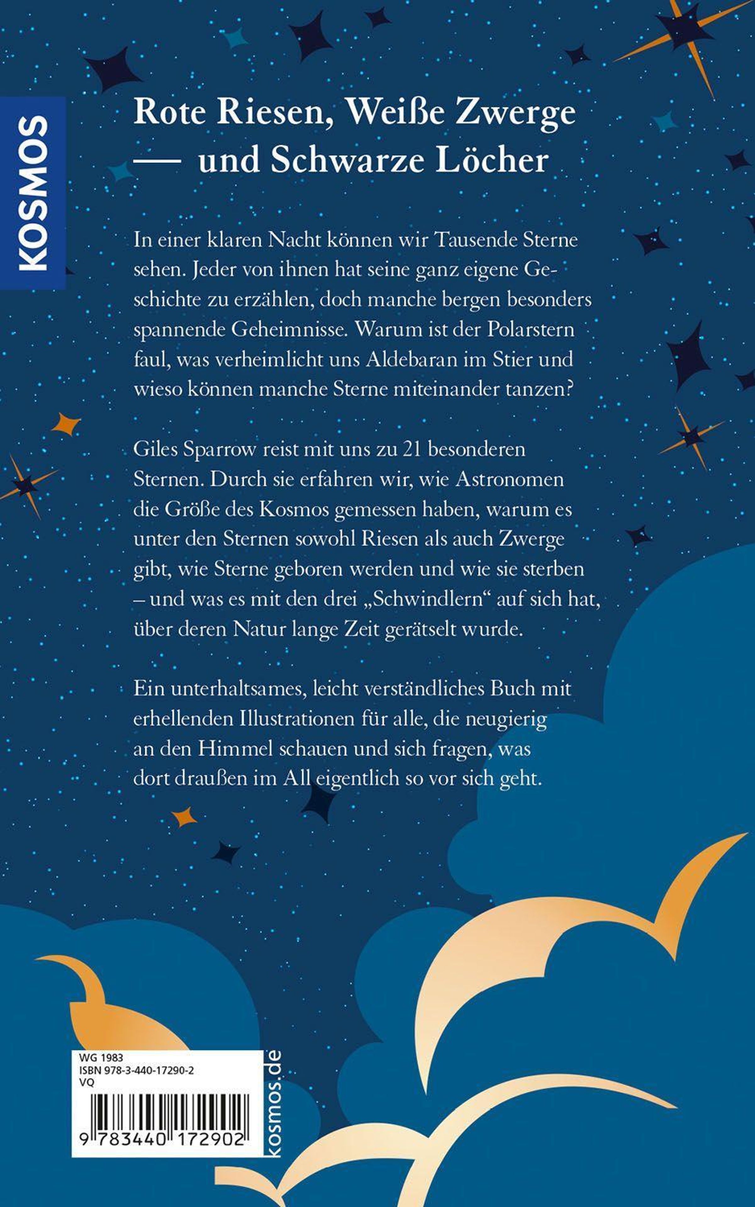 Die funkelnden Sterne am Firmament sind nicht nur wunderschön, sondern auch der Schlüssel zu den Geheimnissen des Universums. Giles Sparrow stellt 21 besonders berühmte wie den Polarstern, Aldebaran, Beteigeuze und natürlich die Sonne vor. Er berichtet, wie Astronomen die Größe des Kosmos gemessen und Schwarze Löcher entdeckt haben, warum es unter den Sternen Riesen und Zwerge gibt und was es mit den drei "Schwindlern" auf sich hat. Attraktive Skizzen helfen, die 24 Objekte am Himmel zu finden. Ein Buch für alle, die dem Weltall auf unterhaltsame Weise ein Stück näher kommen möchten.