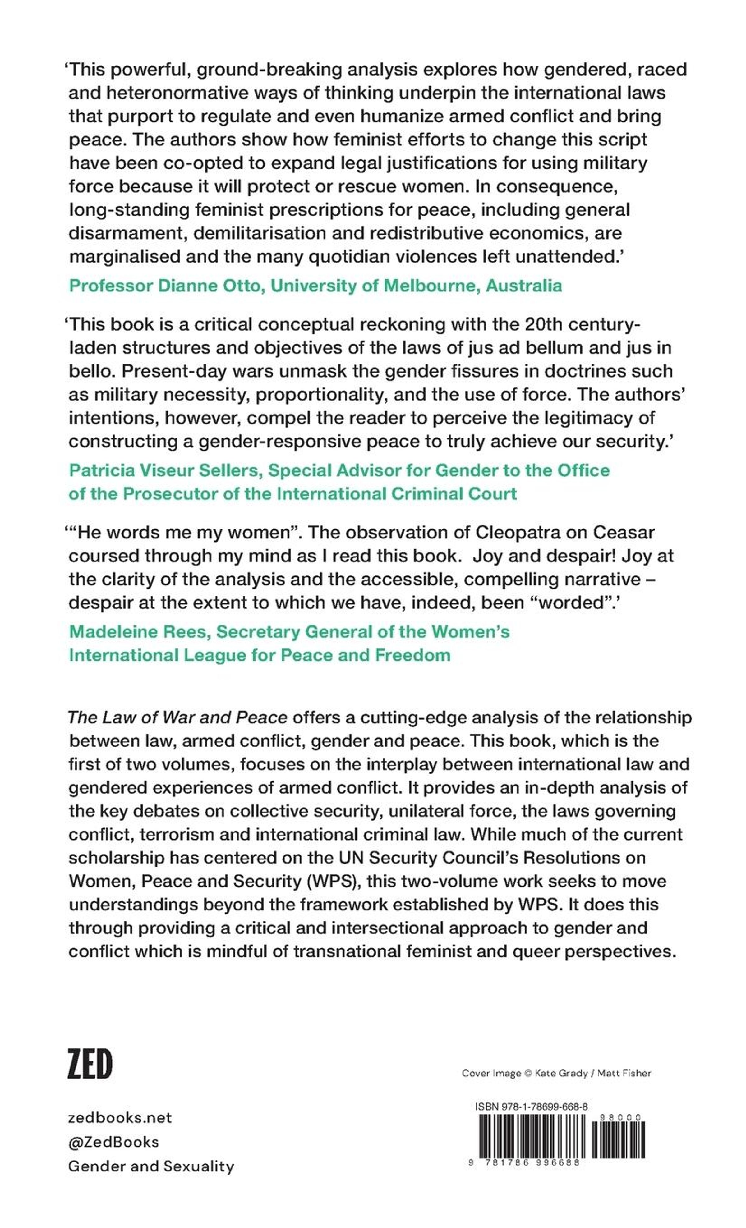 The Law of War and Peaceoffers a cutting-edge analysis of the relationship between law, armed conflict, gender and peace. This book, which is the first of two volumes, focuses on the interplay between international law and gendered experiences of armed conflict. It provides an in-depth analysis of the key debates on collective security, unilateral force, the laws governing conflict, terrorism and international criminal law. While much of the current scholarship has centered on the UN Security Council's Resolutions on Women, Peace and Security, this two-volume work seeks to move understandings beyond the framework established by WPS. It does this through providing a critical and intersectional approach to gender and conflict which is mindful of transnational feminist and queer perspectives.
