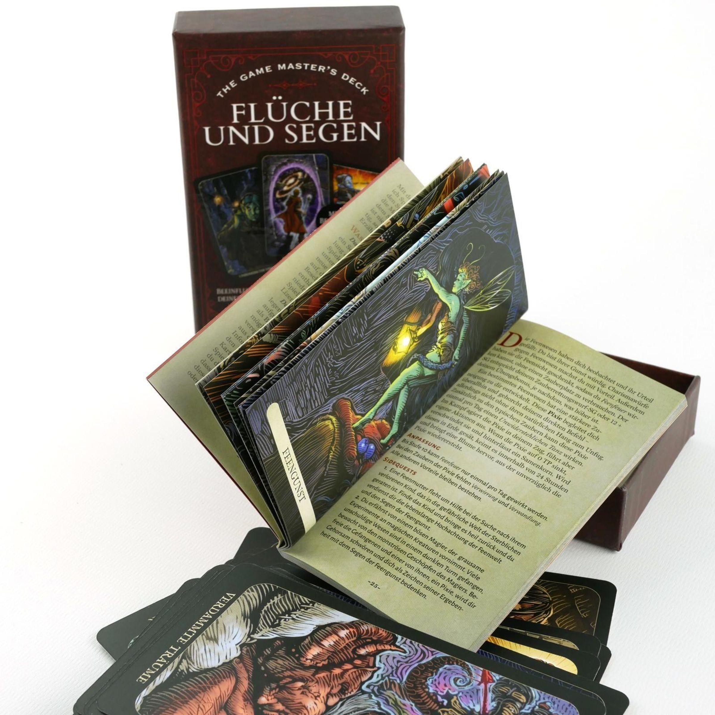 Mit diesem Kartendeck stellt ihr die Welt eurer Rollenspielcharaktere auf den Kopf! Werdet ihr für kluge Entscheidungen mit einem Segen belohnt? Oder habt ihr einen heimtückischen Gott verärgert und müsst euch nun mit einem Fluch herumschlagen?