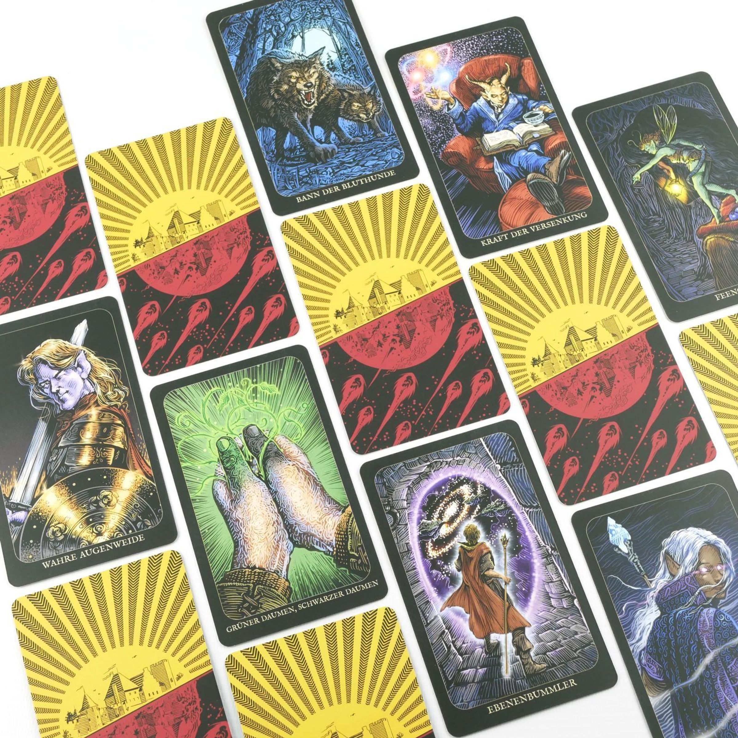 Jede der 40 Karten kann euer Abenteuer in eine völlig neue Richtung lenken. Neben den 20 Segen und 20 Flüchen inspiriert euch auch das Booklet zu neuen Spielideen, Charakterzügen und Side Quests. Wird sich euer Charakter durch einen Fluch langsam zu Stein verwandeln oder dank eines Segens zwei treue Geisterwölfe an seine Seite gestellt bekommen? Zieht eine Karte und findet es heraus!