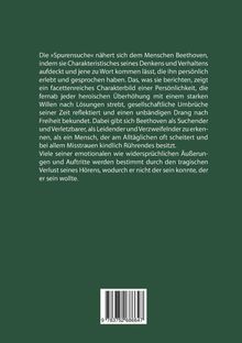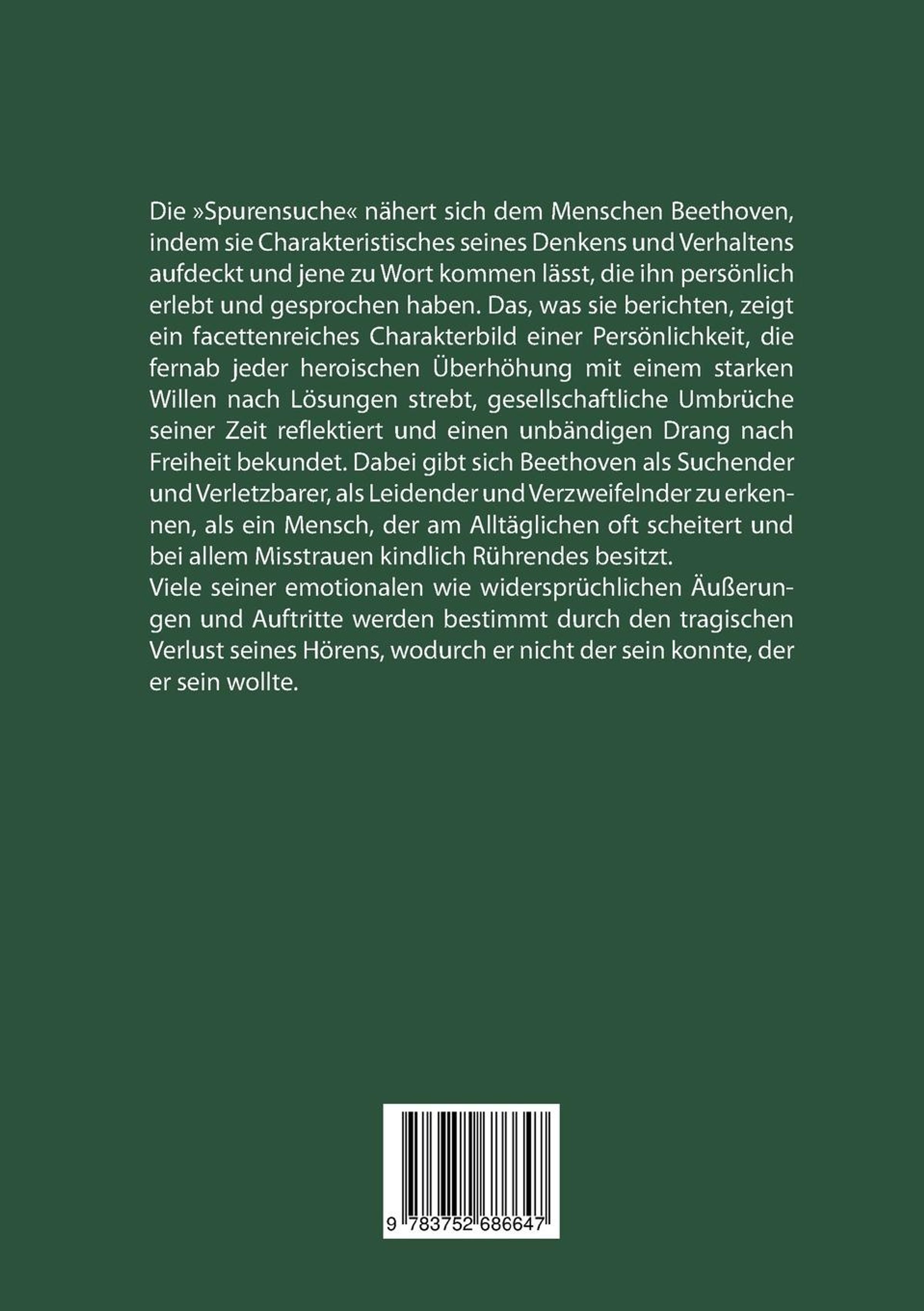Die "Spurensuche" nähert sich dem Menschen Beethoven, indem sie Charakteristisches seines Denkens und Verhaltens aufdeckt und jene zu Wort kommen lässt, die ihn persönlich erlebt und gesprochen haben. Das, was sie berichten, zeigt ein facettenreiches Charakterbild einer Persönlichkeit, die fernab jeder heroischen Überhöhung mit einem starken Willen nach Lösungen sucht, gesellschaftliche Umbrüche seiner Zeit reflektiert und einen unbändigen Drang nach Freiheit bekundet. Dabei gibt sich Beethoven als Suchender und Verletzbarer, als Leidender und Verzweifelnder zu erkennen, als ein Mensch, der am Alltäglichen oft scheitert und bei allem Misstrauen kindlich Rührendes besitzt. Viele seiner emotionalen wie widersprüchlichen Äußerungen und Auftritte werden bestimmt durch den tragischen Verlust seines Hörens, wodurch er nicht der sein konnte, der er sein wollte.