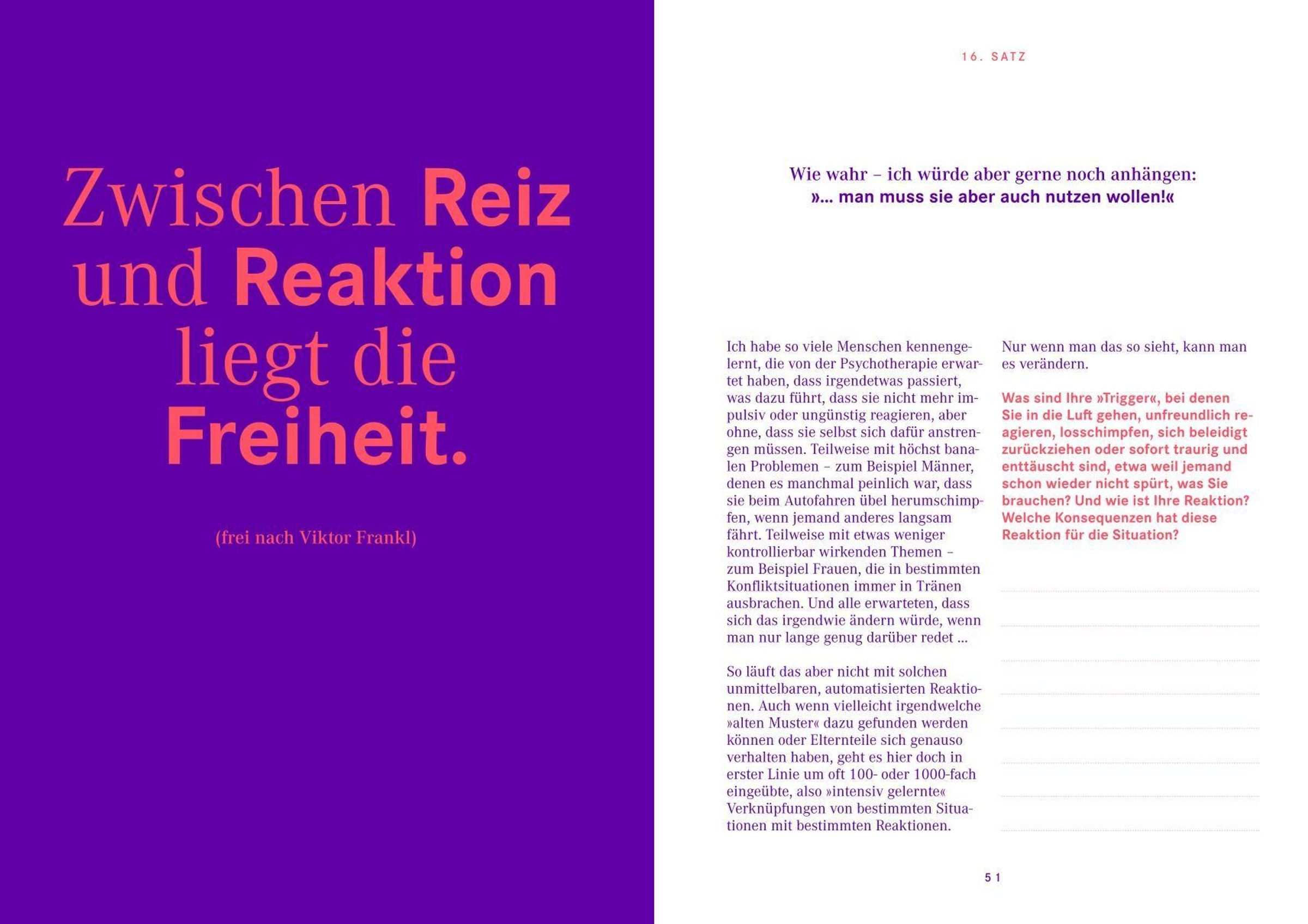 Manche Sätze treffen mitten ins Herz -- und bleiben ein Leben lang. Dieses Buch versammelt 52 authentische Sätze, die aus einer ZEIT Online-Befragung stammen: Leser: innen haben geteilt, welche Worte aus der Psychotherapie sie geprägt haben. Diese echten Erkenntnisse werden greifbar gemacht -- mit alltagsnahen Beispielen, spannenden psychologischen Hintergründen und Anregungen zum Nachdenken. Jeder Gedanke, jeder Satz eröffnet neue Perspektiven, inspiriert dazu, alte Muster zu hinterfragen, stärkt die Selbstfürsorge und bringt mehr Leichtigkeit ins Leben. Ein Buch zum Immer-wieder-Aufschlagen, zum Innehalten und Weiterdenken. Inspirierend gestaltet, klug geschrieben -- ein Geschenk an sich selbst und andere.