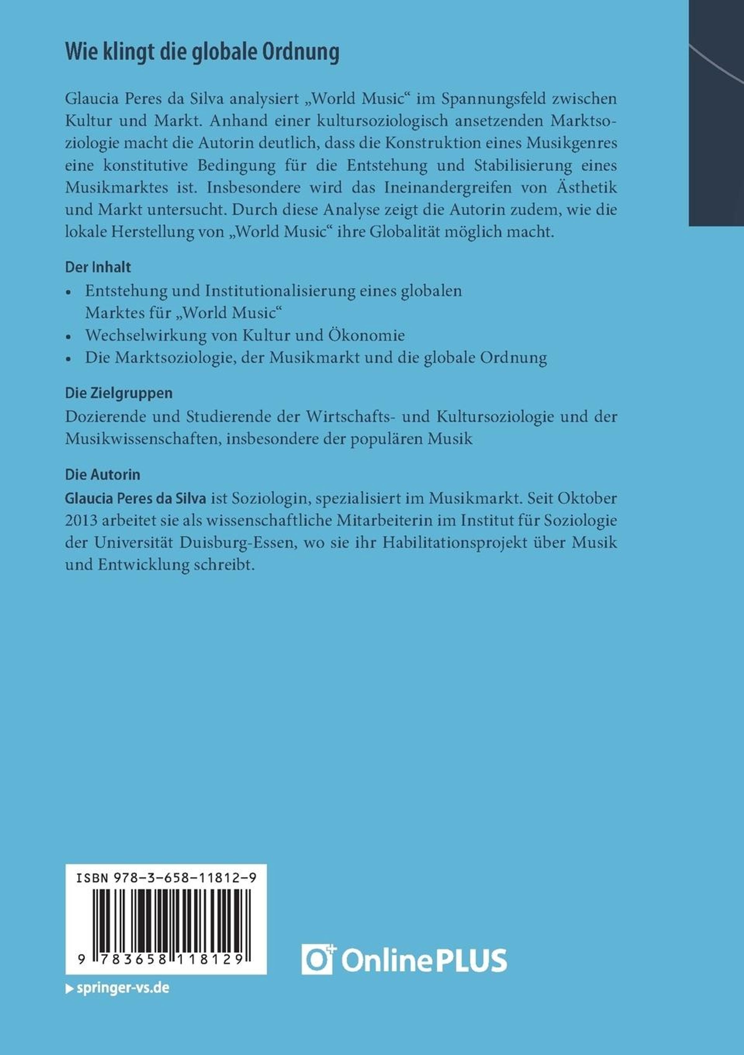 Glaucia Peres da Silva analysiert ¿World Music¿ im Spannungsfeld zwischen Kultur und Markt. Anhand einer kultursoziologisch ansetzenden Marktsoziologie macht die Autorin deutlich, dass die Konstruktion eines Musikgenres eine konstitutive Bedingung für die Entstehung und Stabilisierung eines Musikmarktes ist. Insbesondere wird das Ineinandergreifen von Ästhetik und Markt untersucht. Durch diese Analyse zeigt die Autorin zudem, wie die lokale Herstellung von ¿World Music¿ ihre Globalität möglich macht.