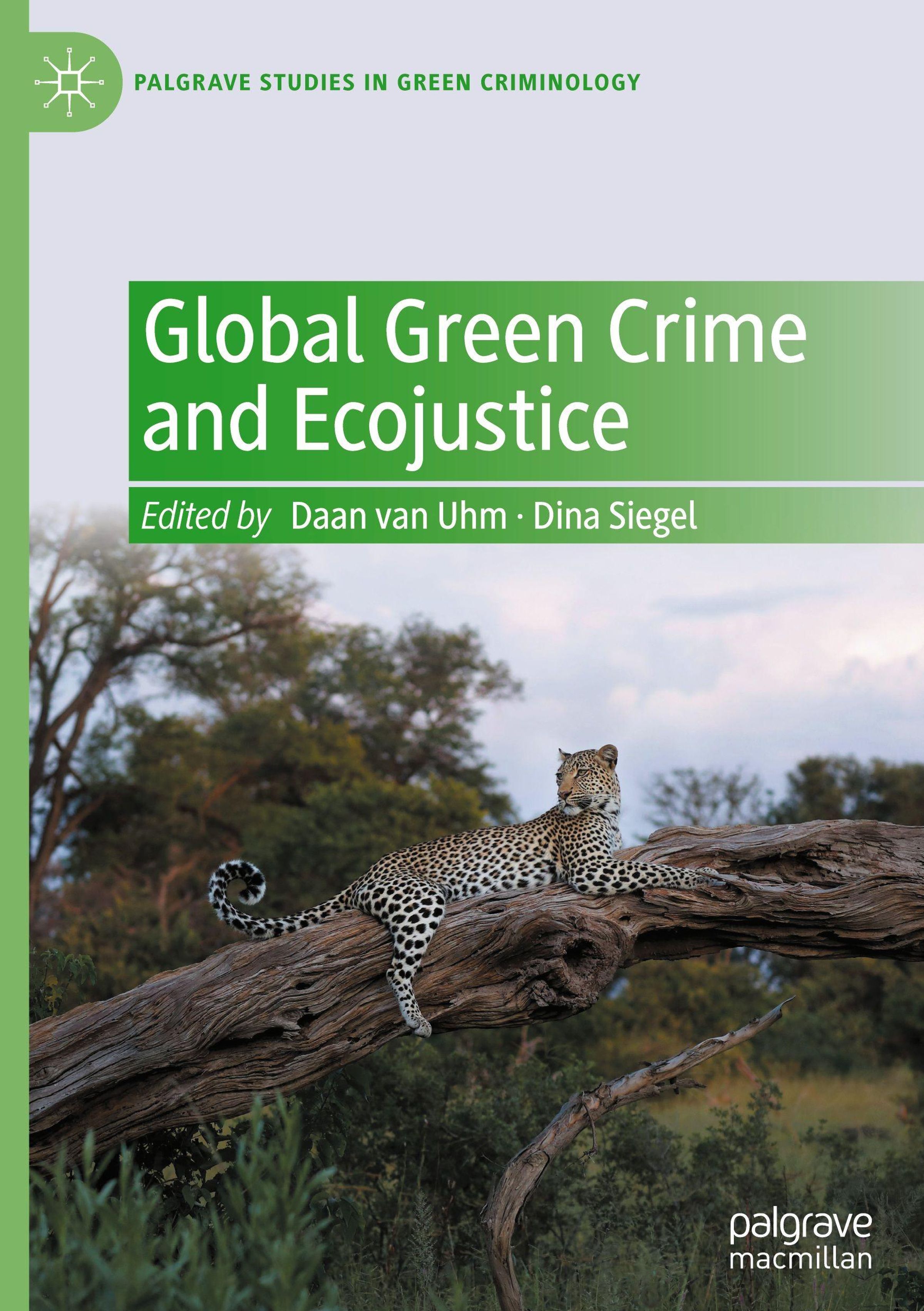 "Global Green Crime and Ecojustice" von Daan van Uhm und Dina Siegel; Leopard auf einem Baumstamm in einer bewaldeten Landschaft., Buch