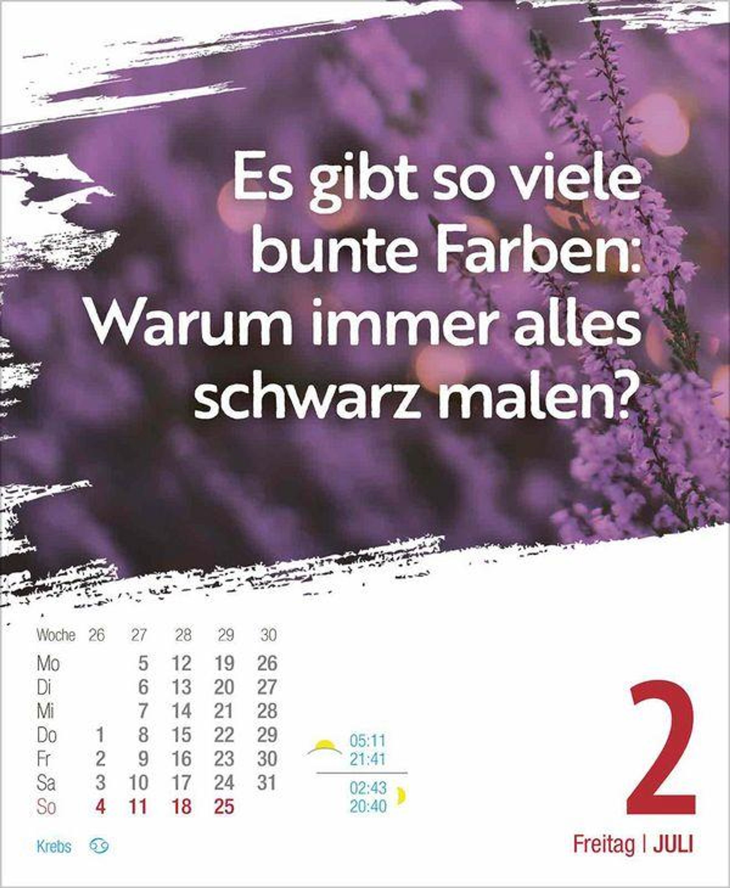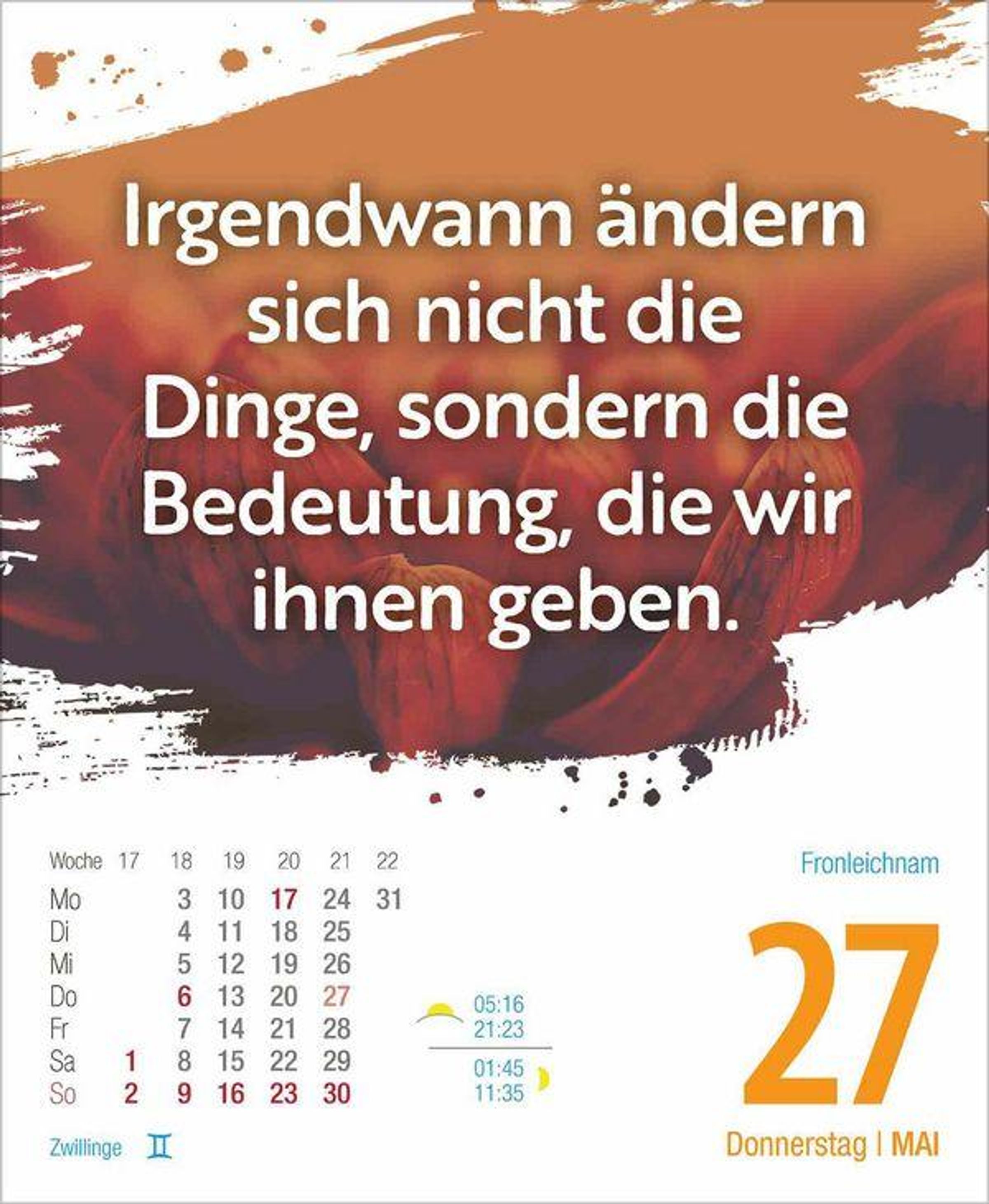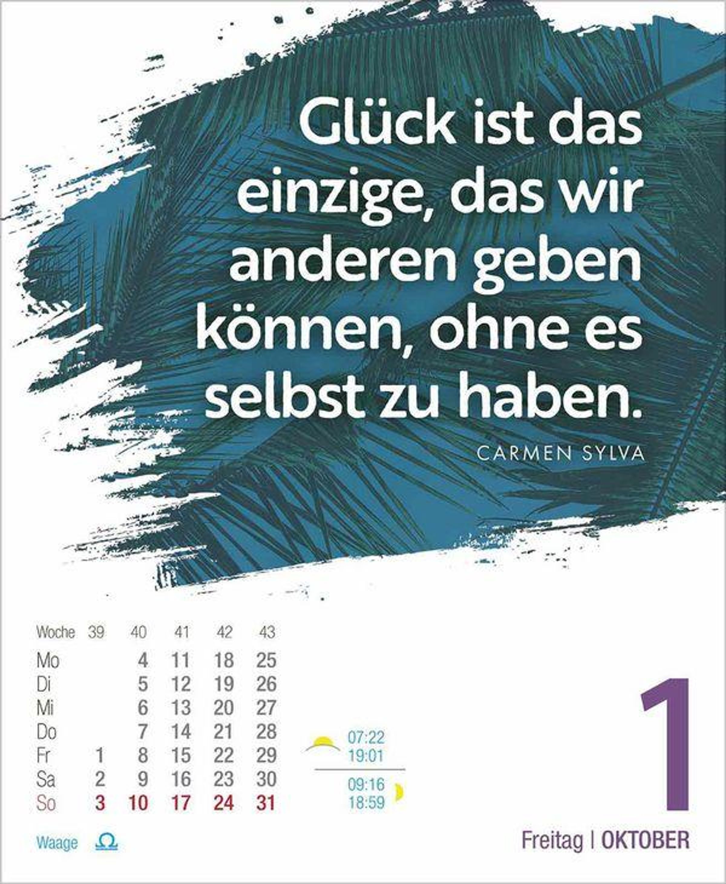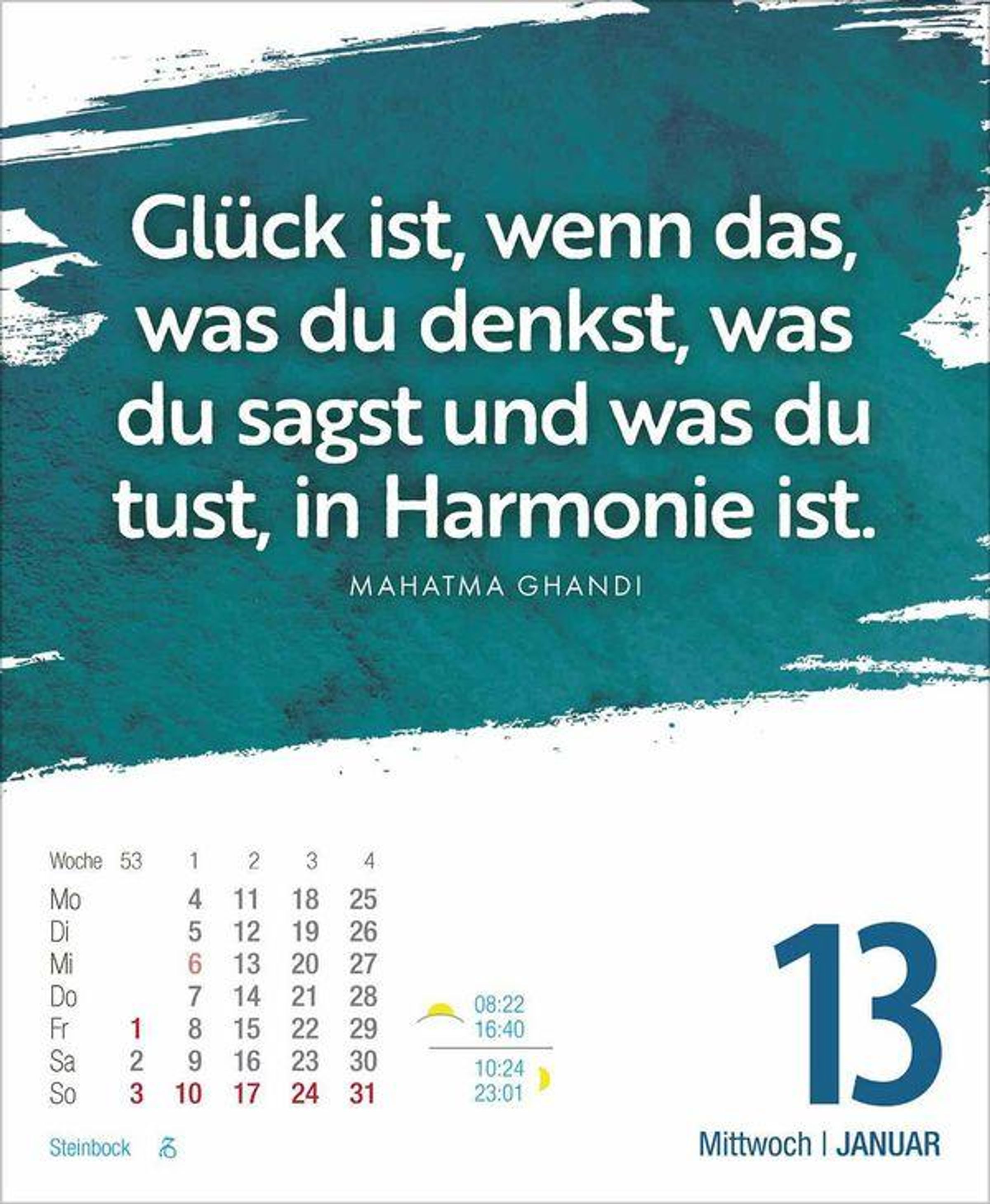 Dieser aufstellbare Tages-Abreisskalender sorgt mit inspirierenden Zitaten dafür, dass 2027 garantiert ein glückliches Jahr wird. Der Kalender ist mit seinen Zitaten und Wünschen rund ums Thema Glück ein praktischen Jahresbegleiter auf dem Schreibtisch.