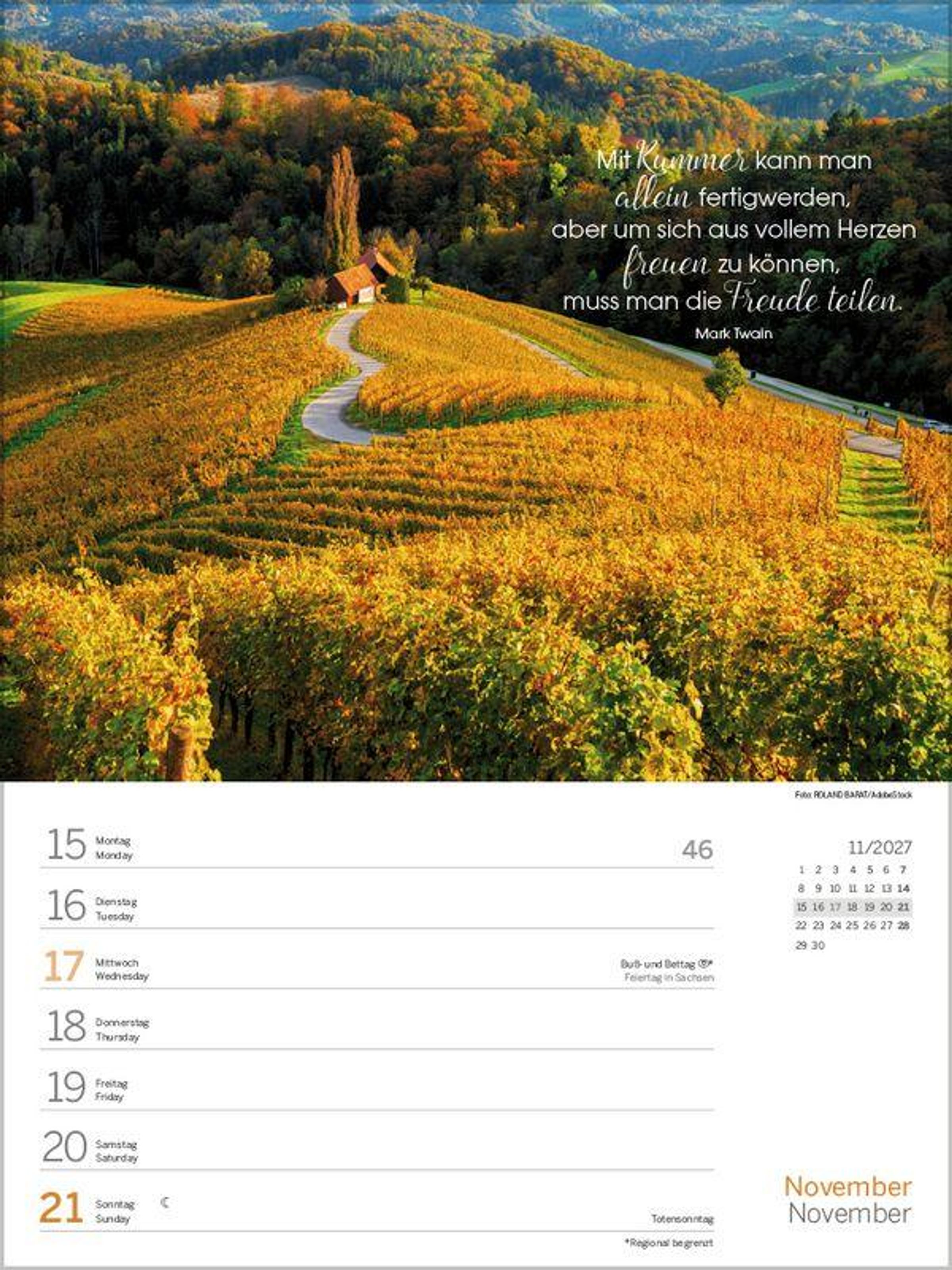 Format: 24 x 32 cm; Wochenkalender mit 53 einzigartigen Fotos und Zitaten