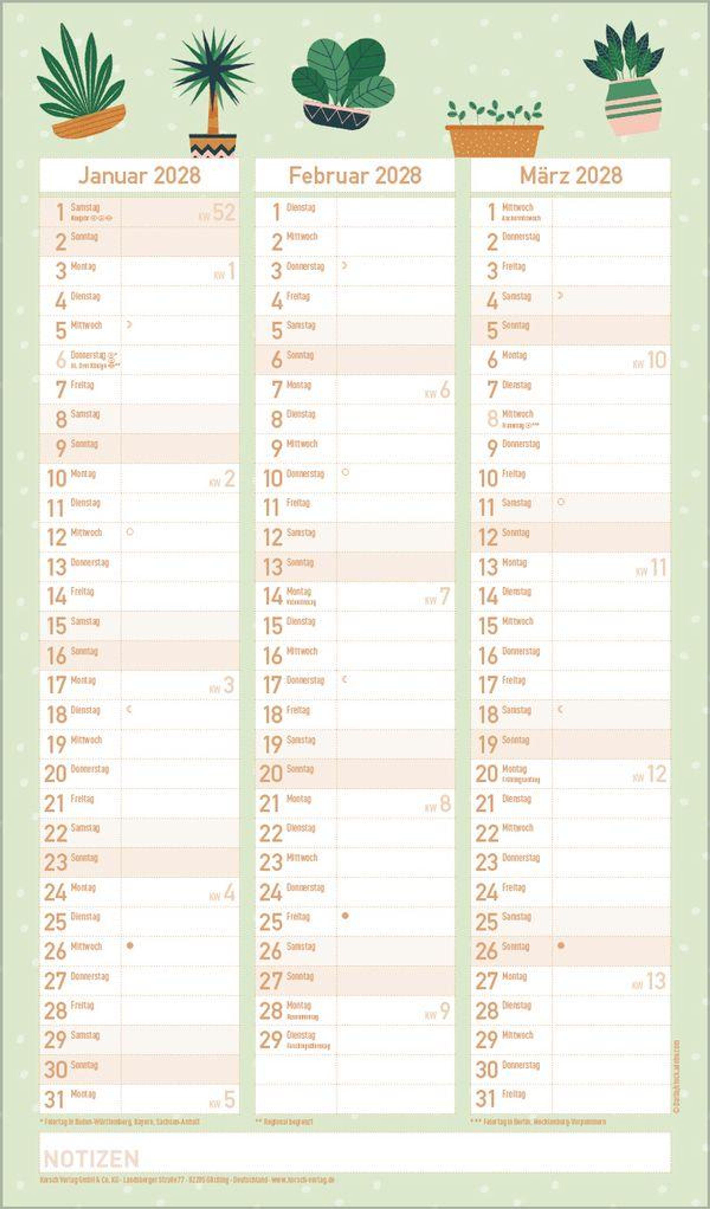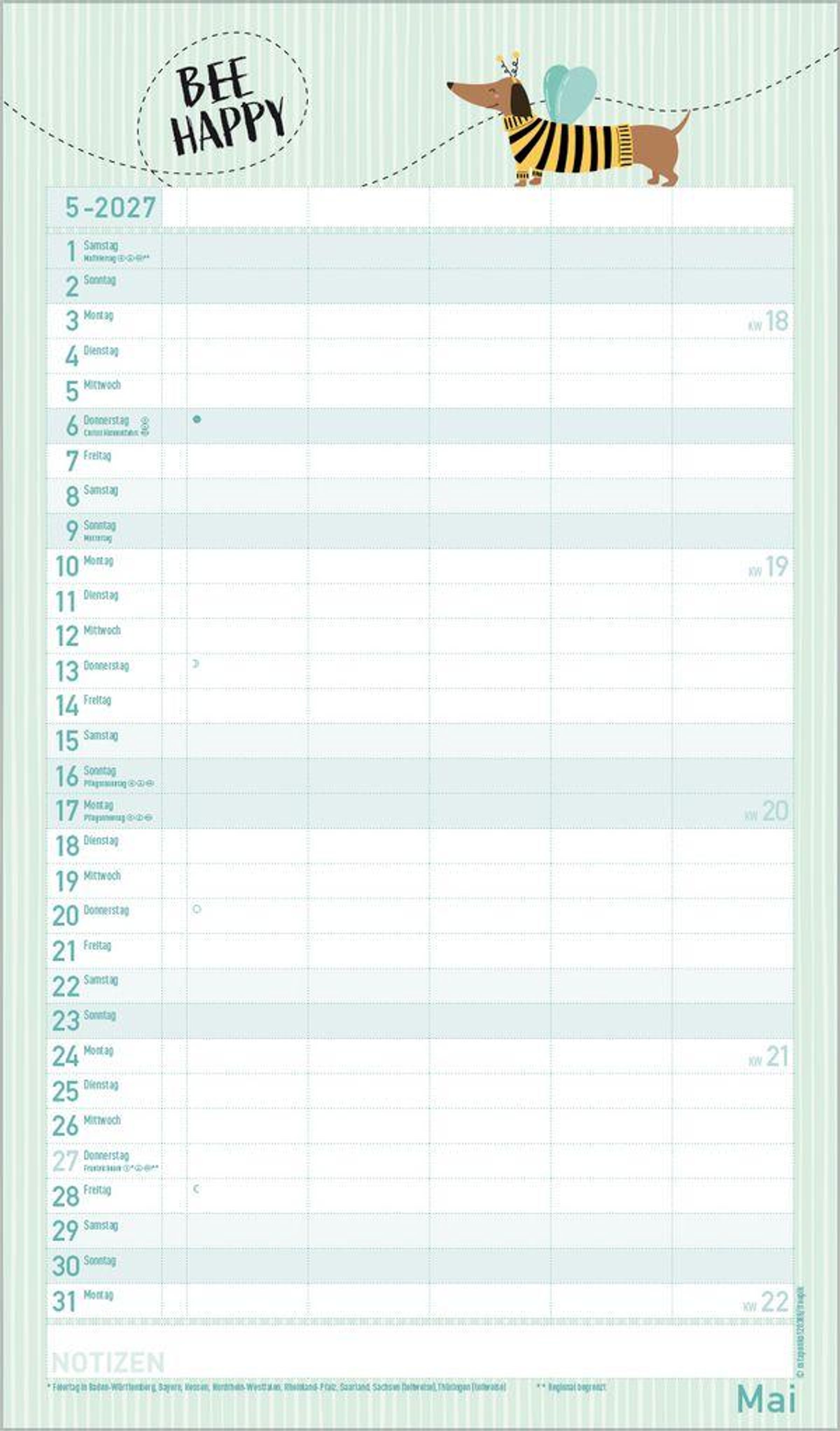 - Praktische Zusatzspalte für Ferien, Müll und weitere Aktivitäten