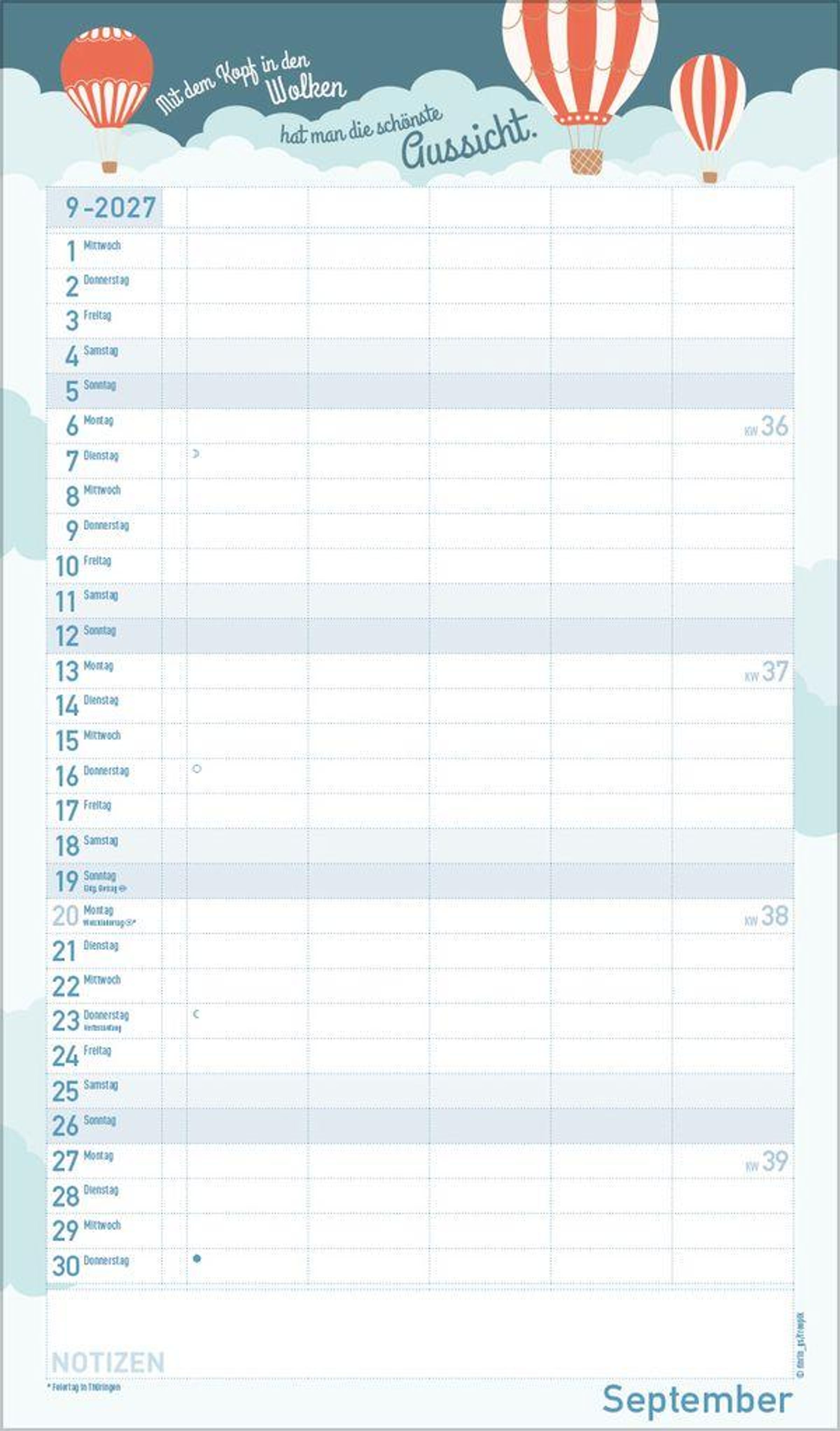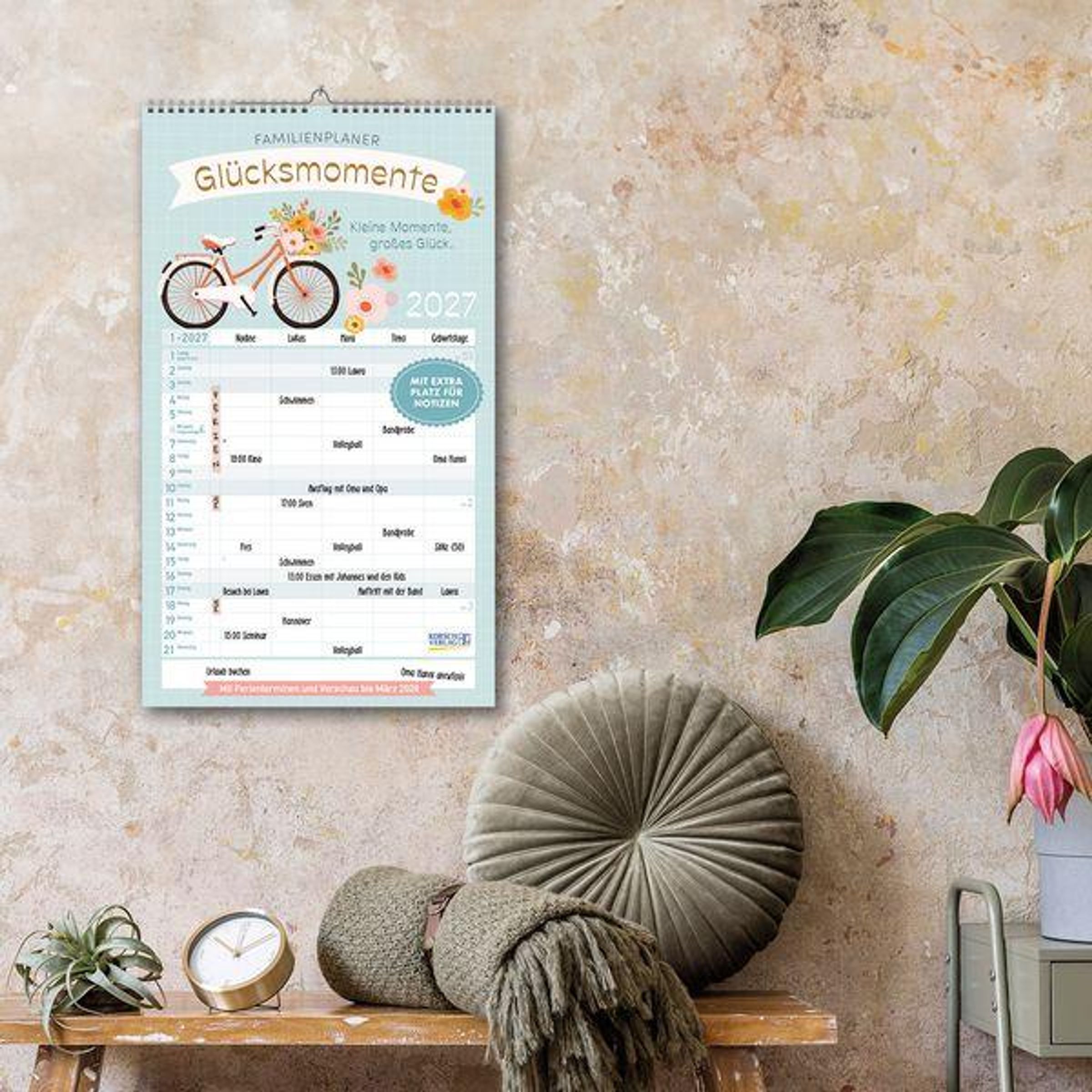 - Familienplaner mit 5 breiten Spalten. Mit Ferienterminen, extra Spalte und Vorschau bis März 2027. Format: 27 x 46 cm