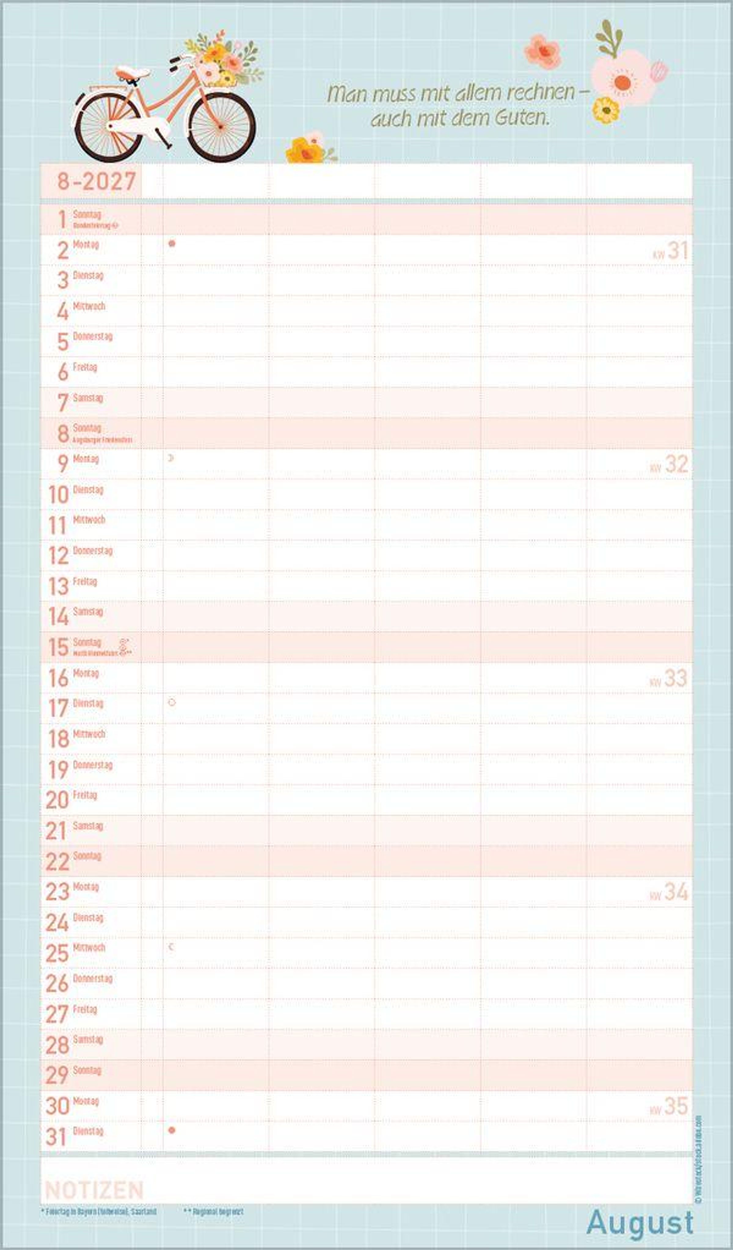 - Terminkalender mit viel Platz für Eintragungen, ohne störende Bilder in den Spalten