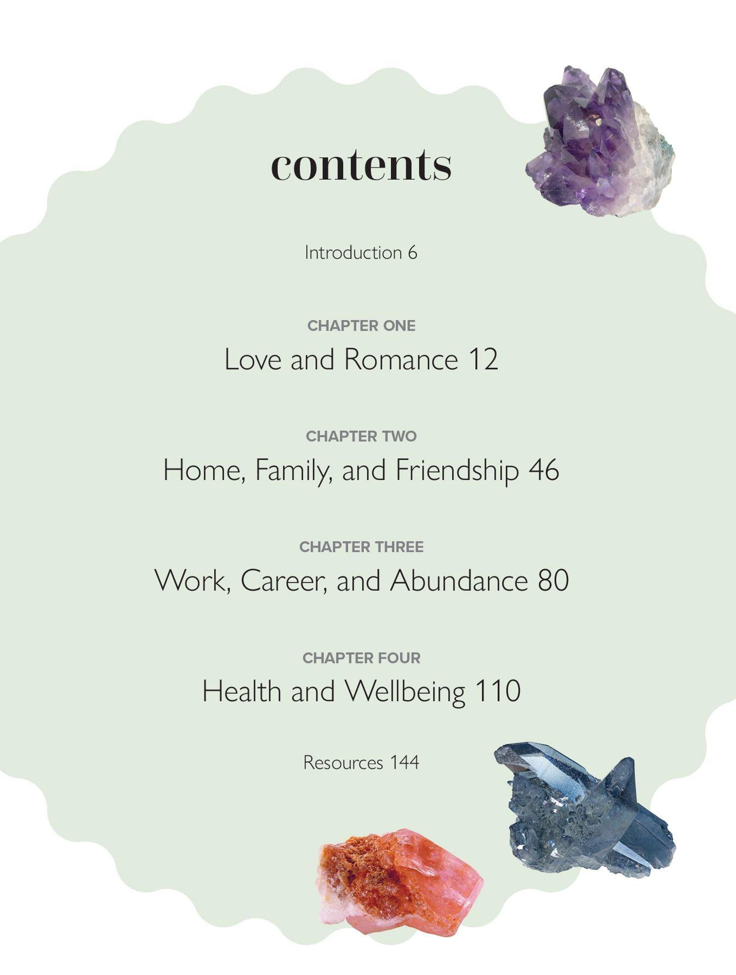with chapters covering areas such as love, home, friendship, work, and health.