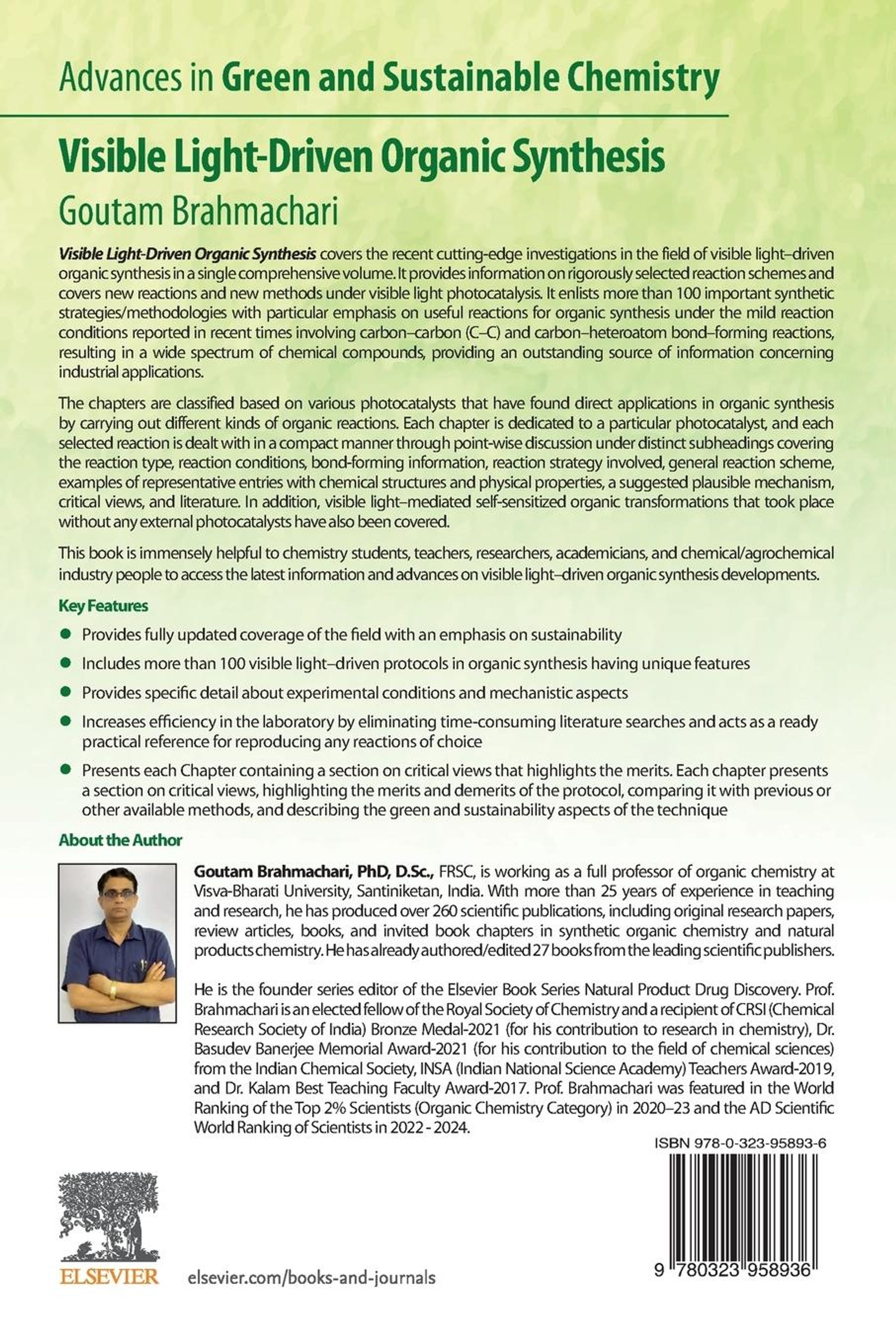 This book is immensely helpful to chemistry students, teachers, researchers, academicians, and chemical/ agrochemical industry people to access the latest information and advances on visible light-driven organic synthesis developments.