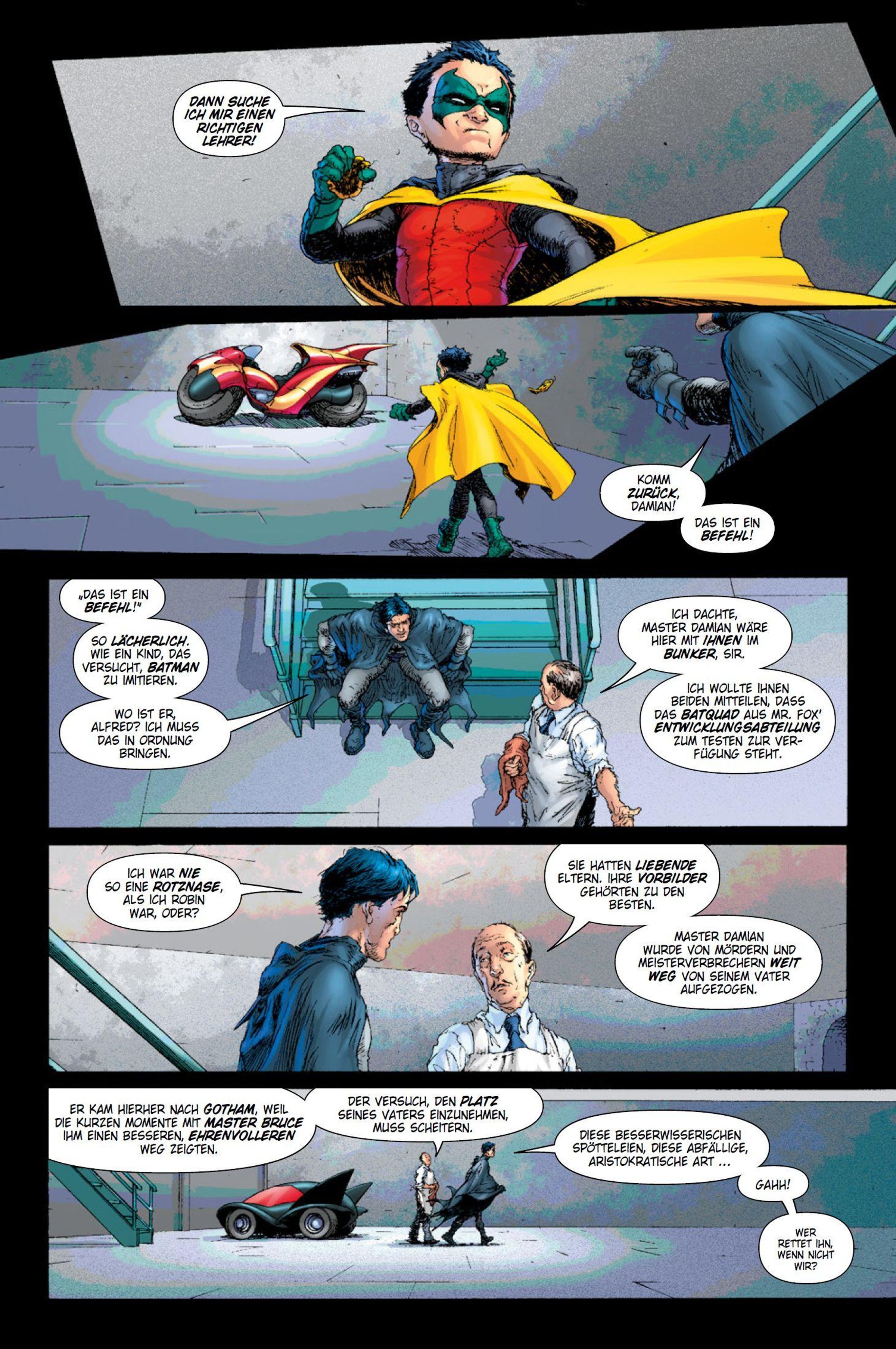 EIN NEUER BATMAN - EIN NEUER ROBIN: DAS DYNAMISCHSTE DUO ALLER ZEITEN! Batman ist tot! Es lebe ... Batman und Robin! Da Bruce Wayne alias Batman im Kampf gegen den kosmischen Gott Darkseid gefallen ist, übernimmt nun der frühere Robin Dick Grayson die Rolle des Dunklen Ritters, während Bruce' leiblicher Sohn Damian Wayne der neue Robin ist. Doch Damian, von Kindesbeinen an von der mörderischen League of Assassins ausgebildet, tut sich schwer mit der Heldenrolle. Und erst recht kann er nicht akzeptieren, dass nun Dick Maske und Cape seines Vaters trägt und er selbst nur der "Sidekick" sein soll! Kann dieses ungleiche neue "Dynamische Duo" trotz all dem Zank und Zoff gegen den irren, sadistischen Professor Pyg bestehen? Und gegen den brutalen Rächer Red Hood, unter dessen Maske sich ein von den Toten zurückgekehrter ehemaliger Held verbirgt?