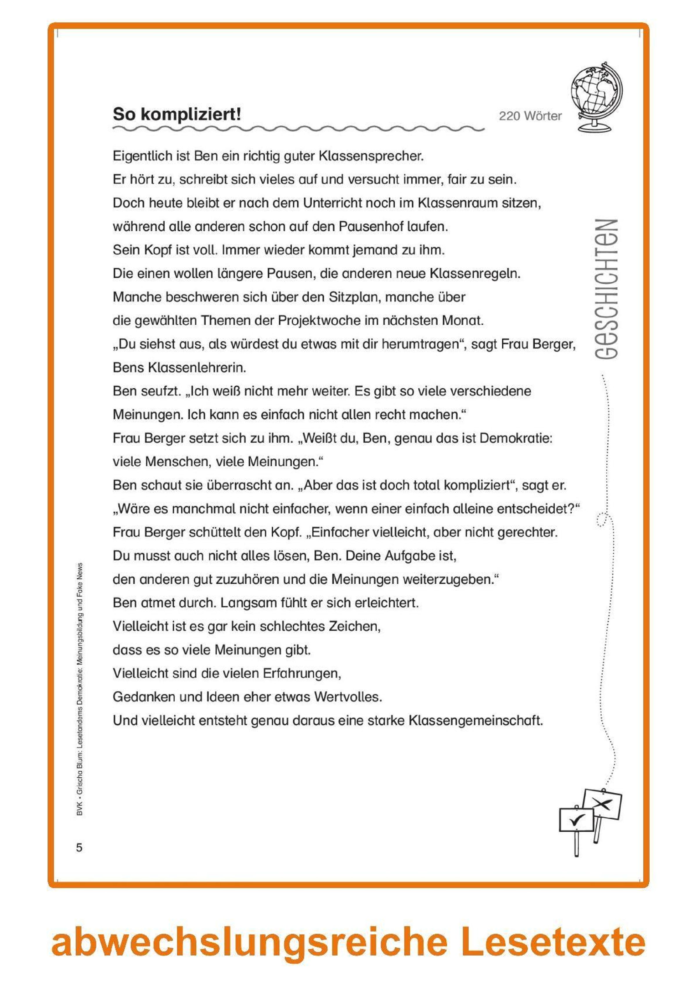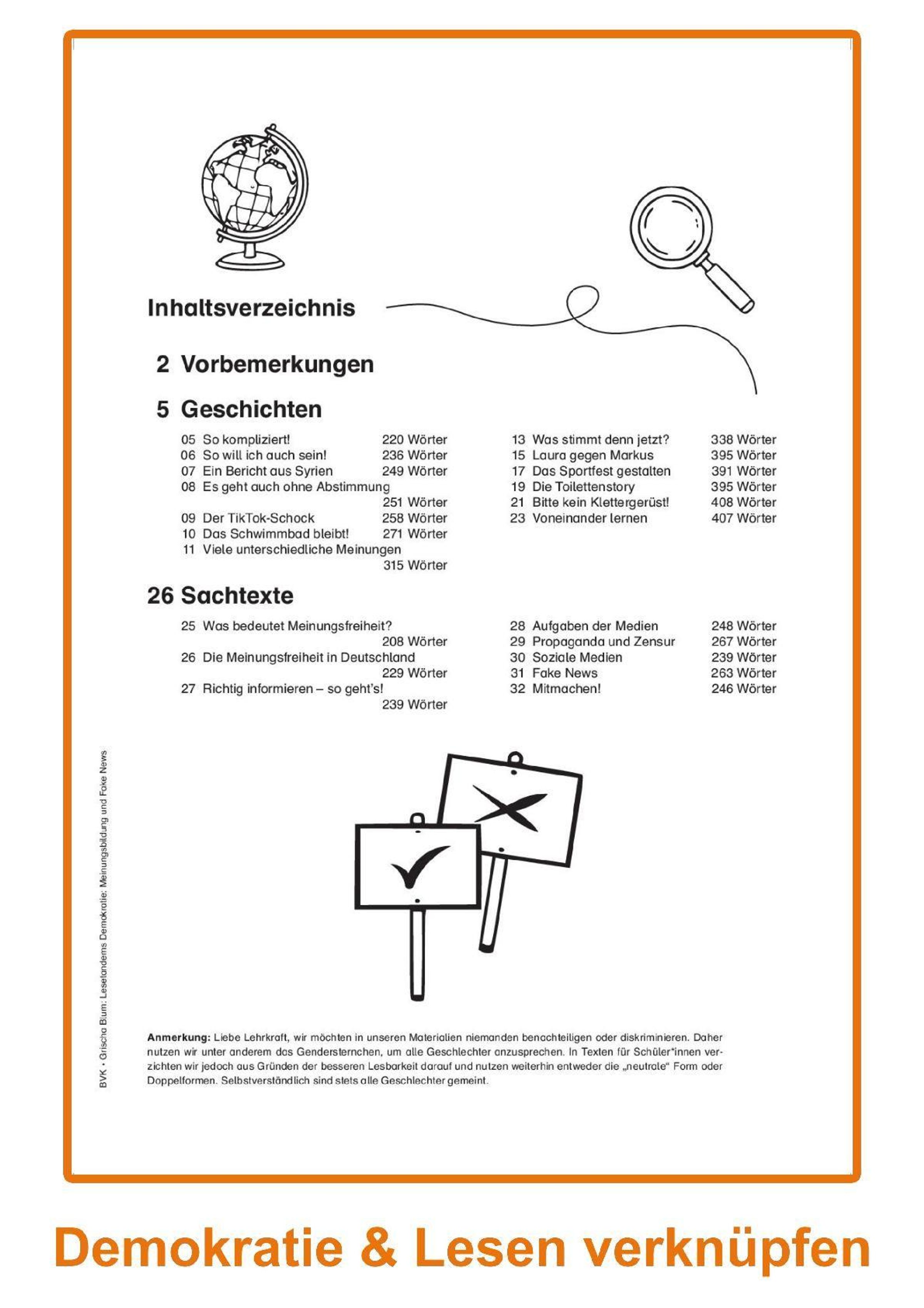 Leseförderung und Demokratieunterricht (wie z. B. in der Verfassungsviertelstunde) verknüpfen - mit Lesetandems zum Thema Meinungsbildung und Fake News! Mit den abwechslungsreichen Texten motivieren Sie Kinder ab der dritten Klasse zum Lesen und führen sie an demokratische Werte heran. Die Geschichten und Sachtexte beschäftigen sich mit der Stellung der Medien in unserer Demokratie, den Besonderheiten von Social Media, Fehlinformationen und damit, wie man sich richtig informieren kann. Die Lesetandems sind ohne viel Vorbereitung direkt im Unterricht einsetzbar. Durch die unterschiedlichen Textlängen ist eine Differenzierung möglich.