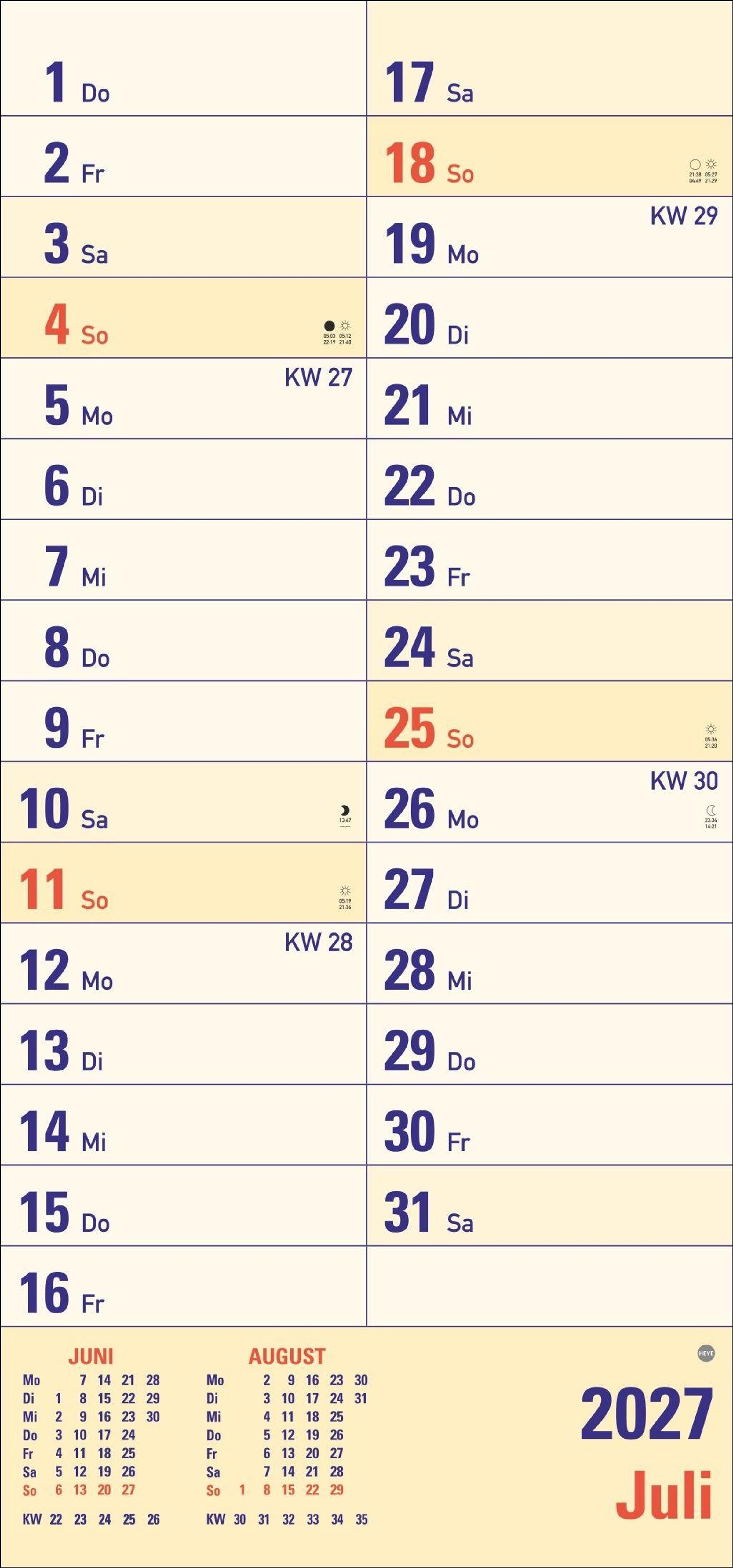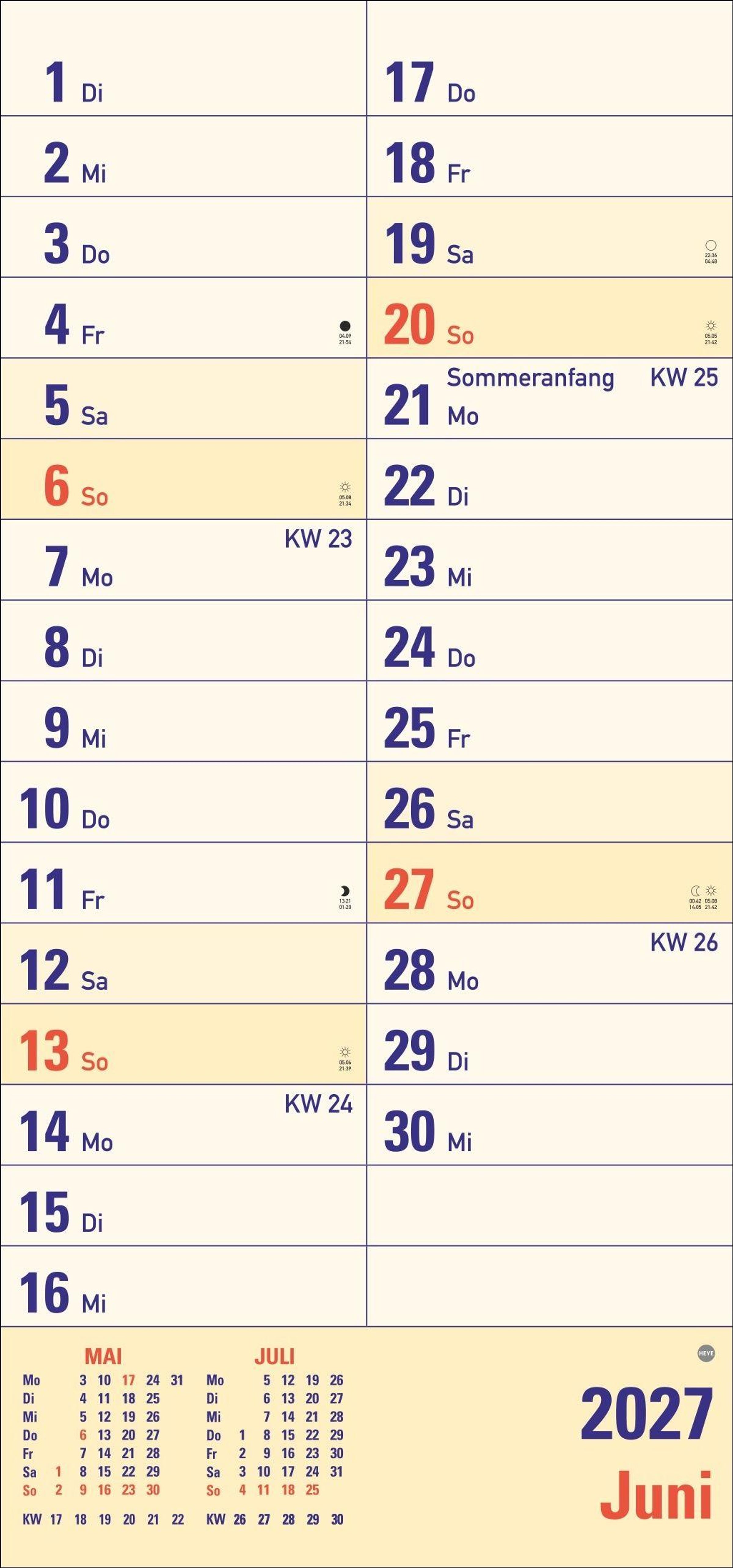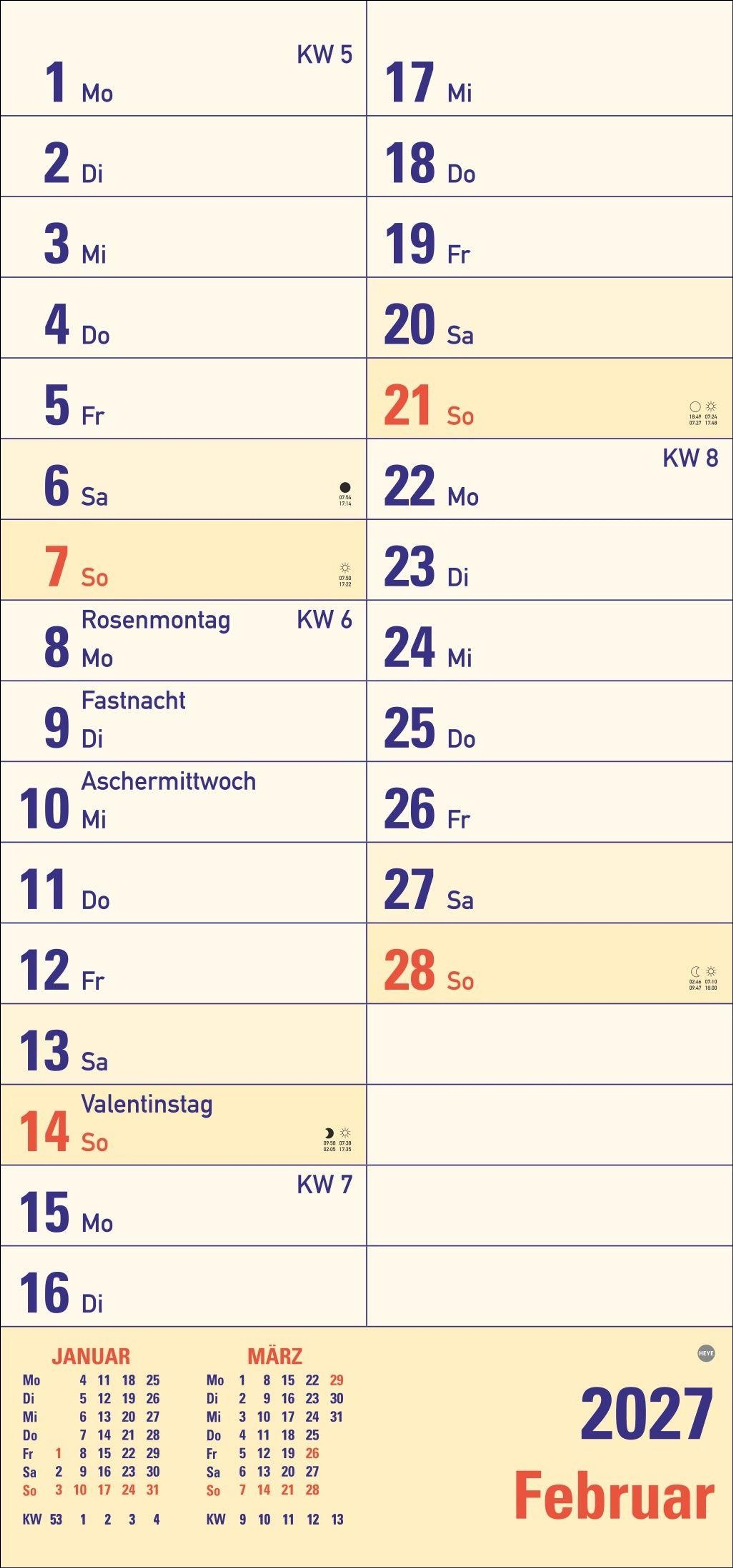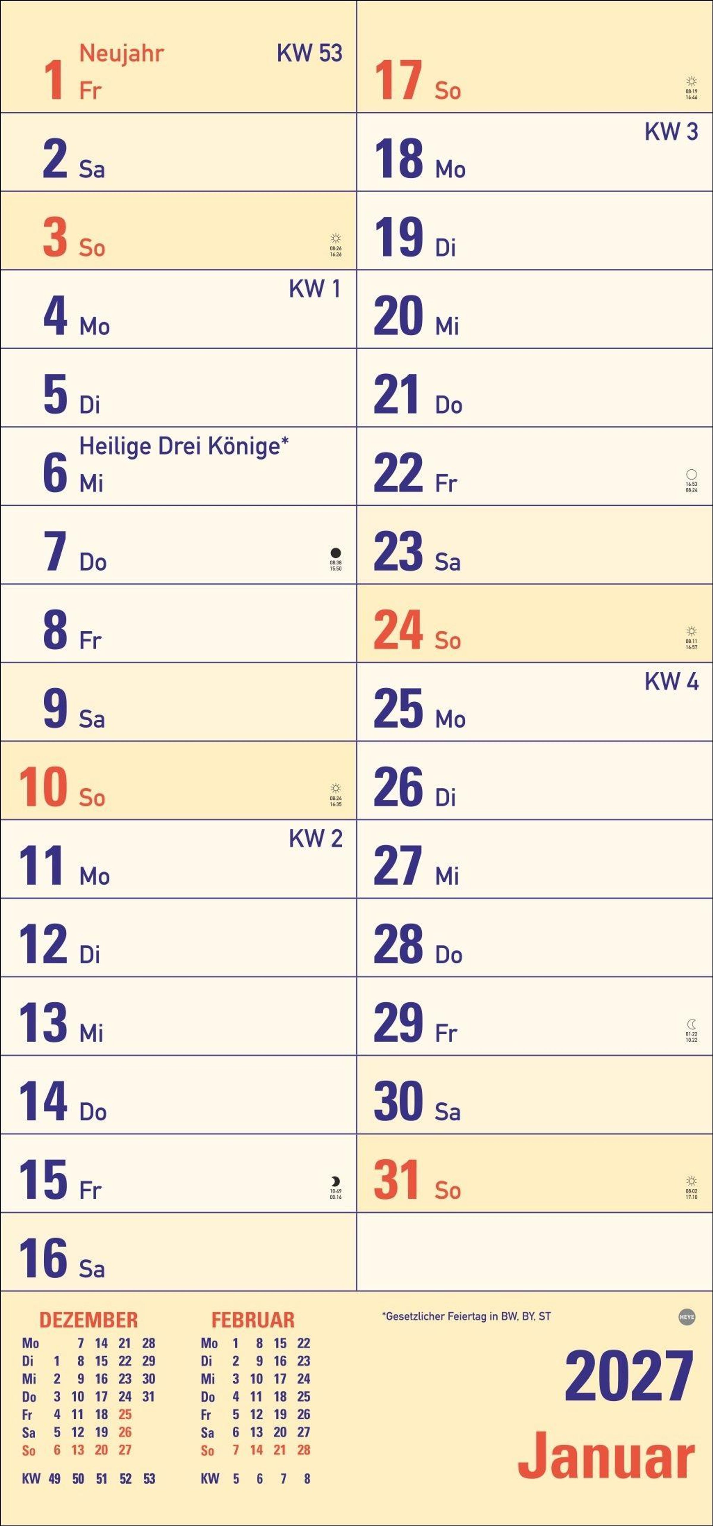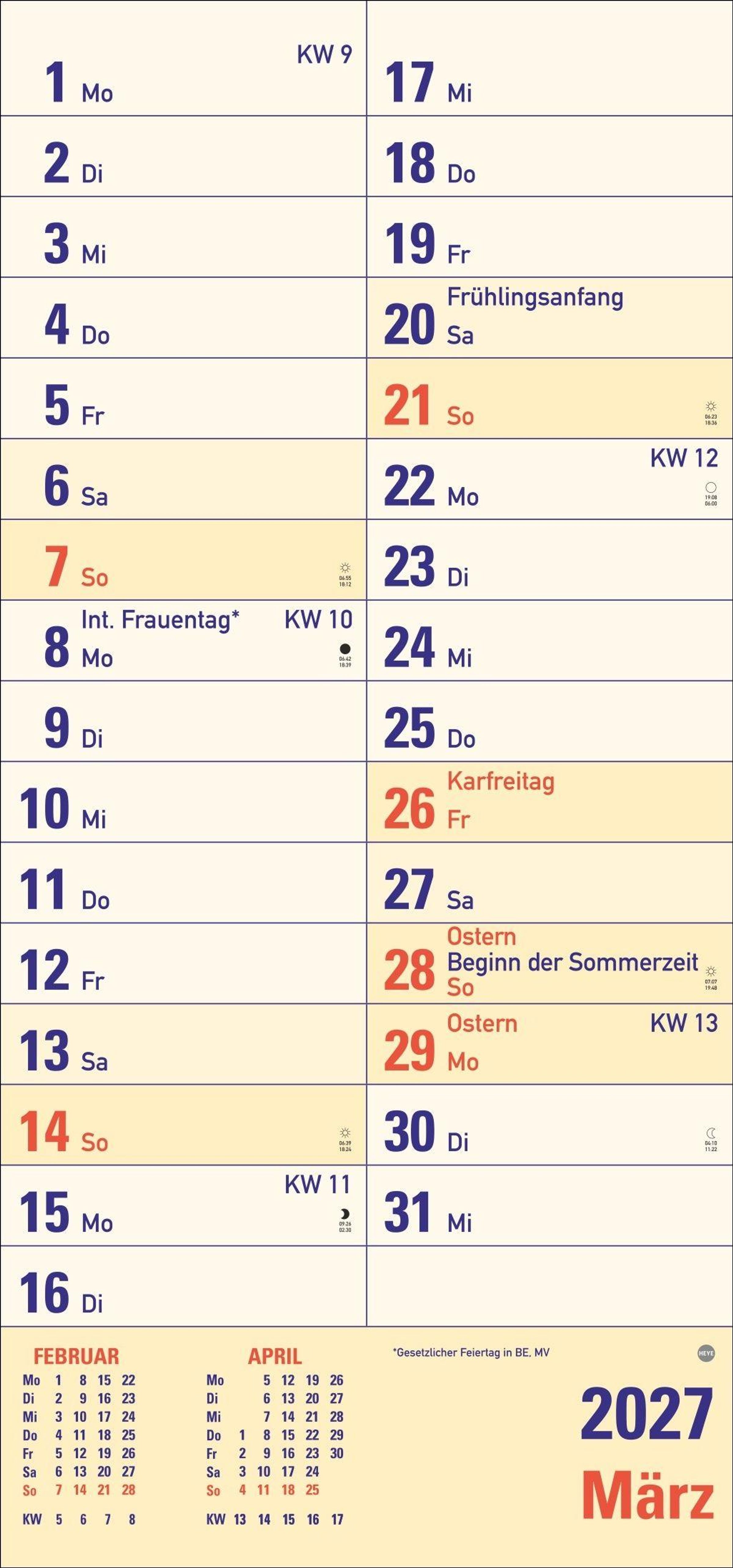 - Praktischer Wandplaner mit extra großer Schrift. Großer Wandkalender mit Schulferien und 3-Monats-Ausblick. Terminkalender 2027. 21 x 45 cm