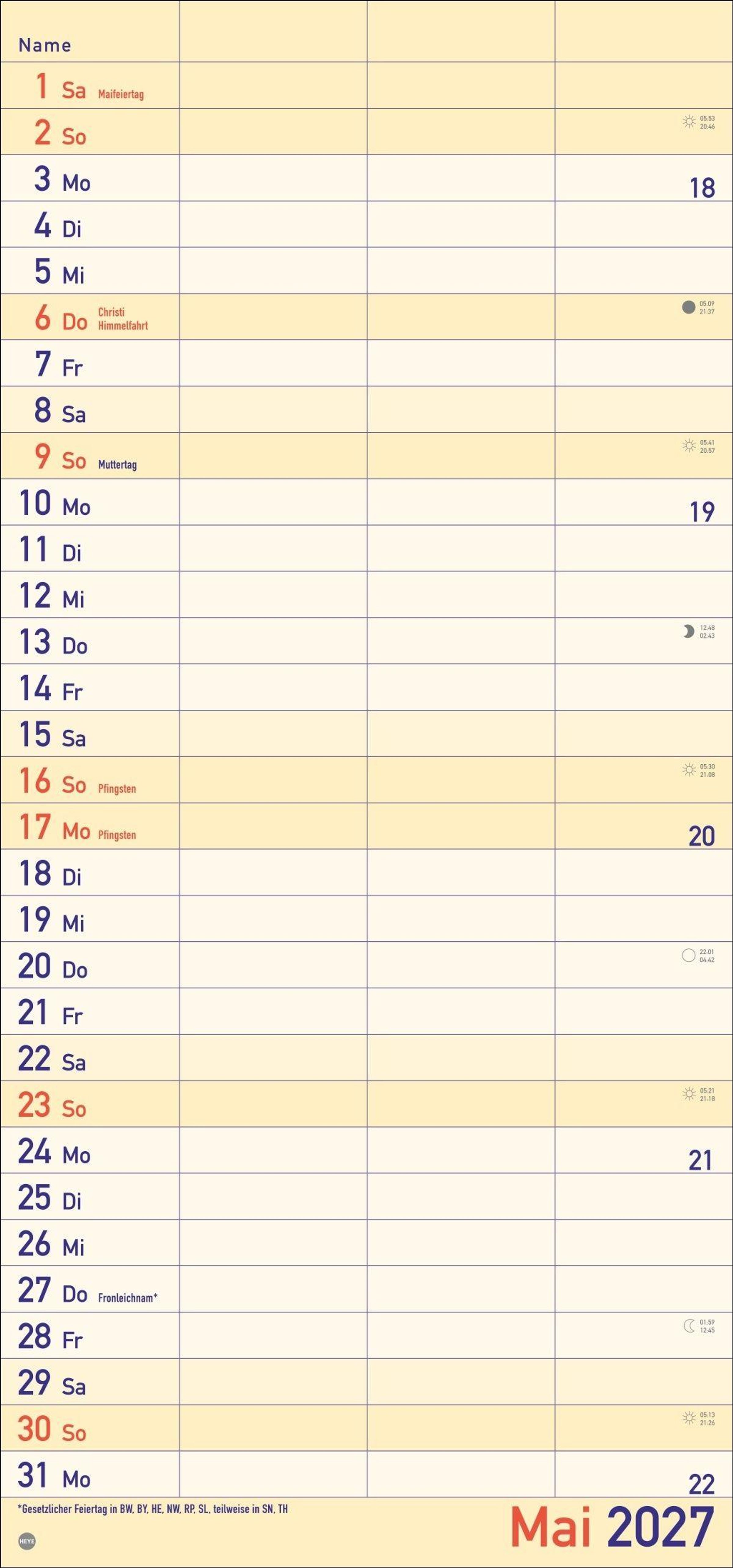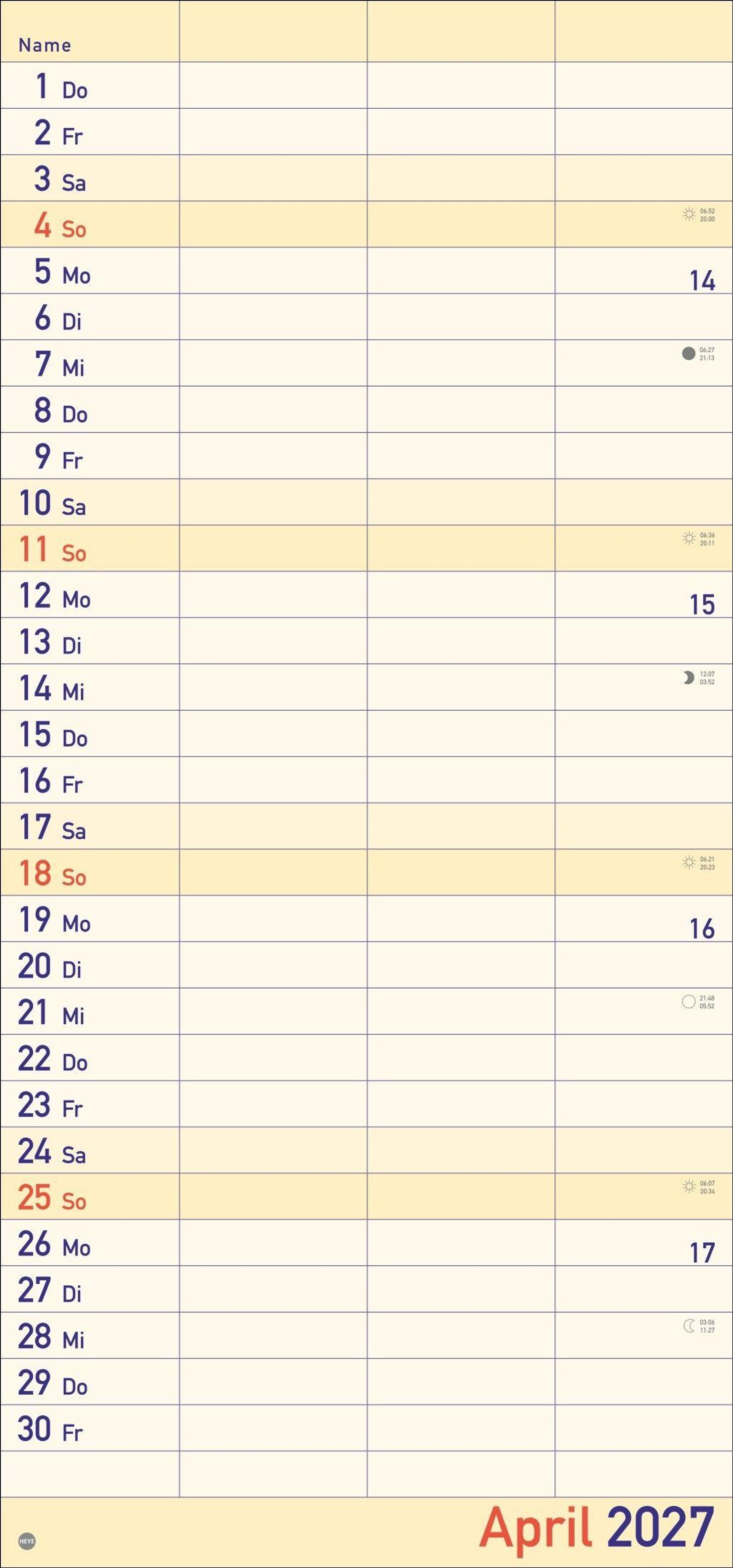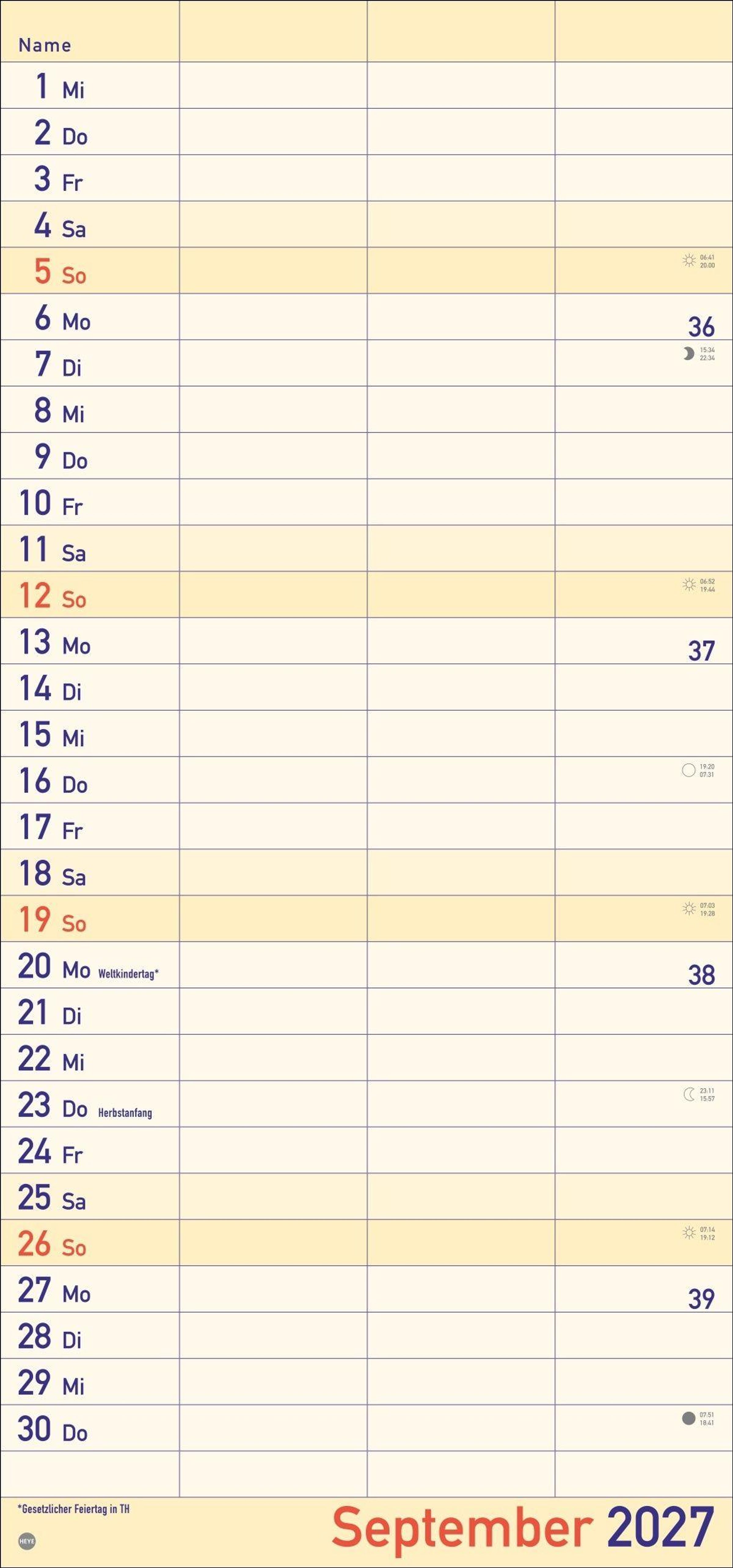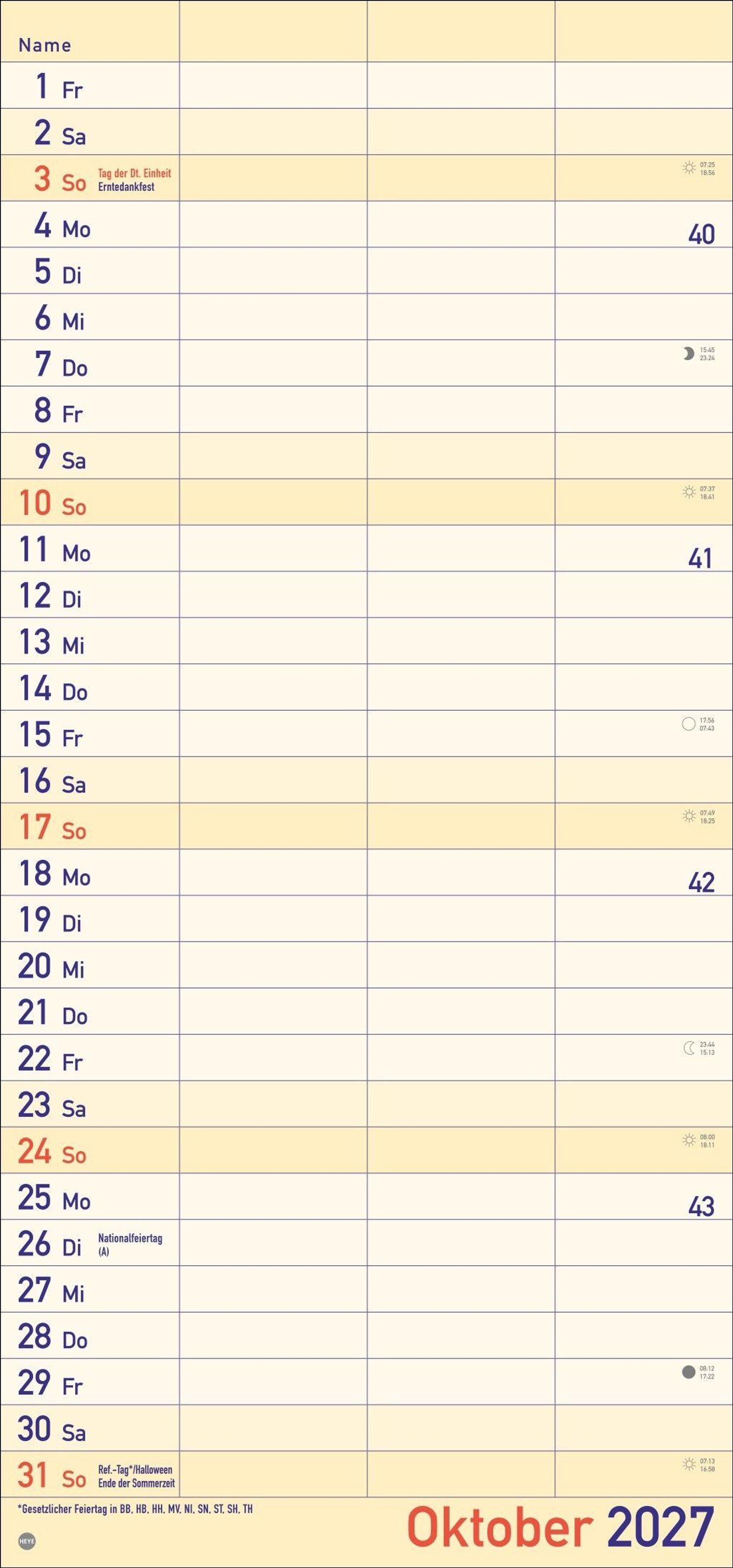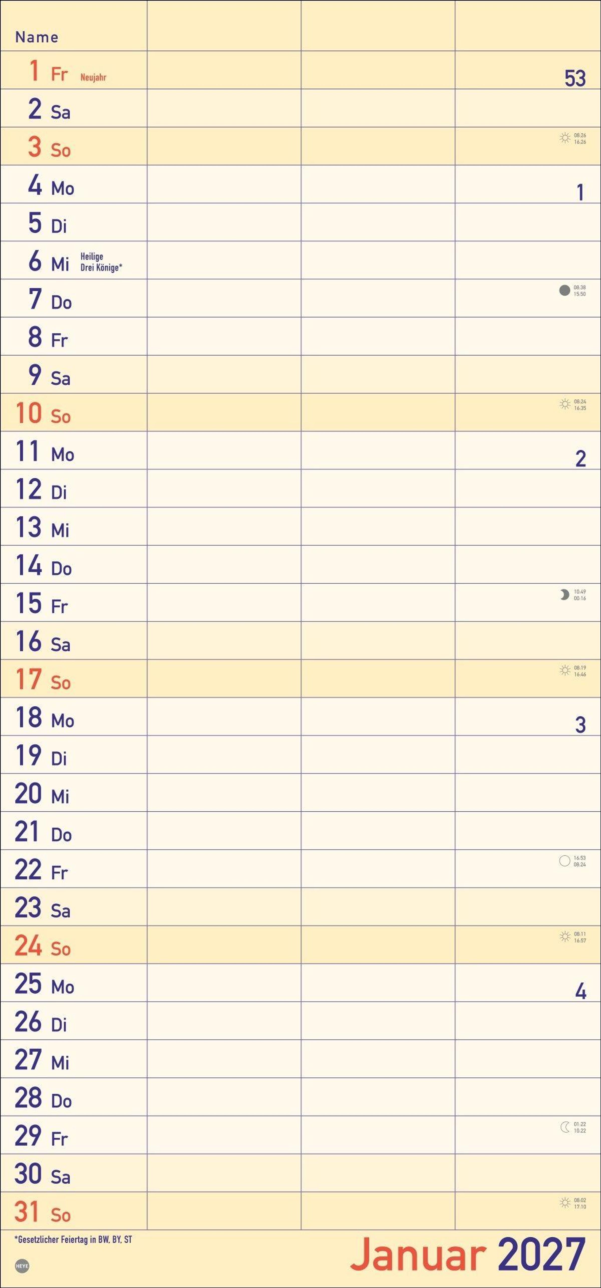 - Praktischer Wandplaner für 2 mit extra großer Schrift und 3 Spalten. Wandkalender mit Schulferien und 3-Monats-Ausblick. Terminkalender 2027