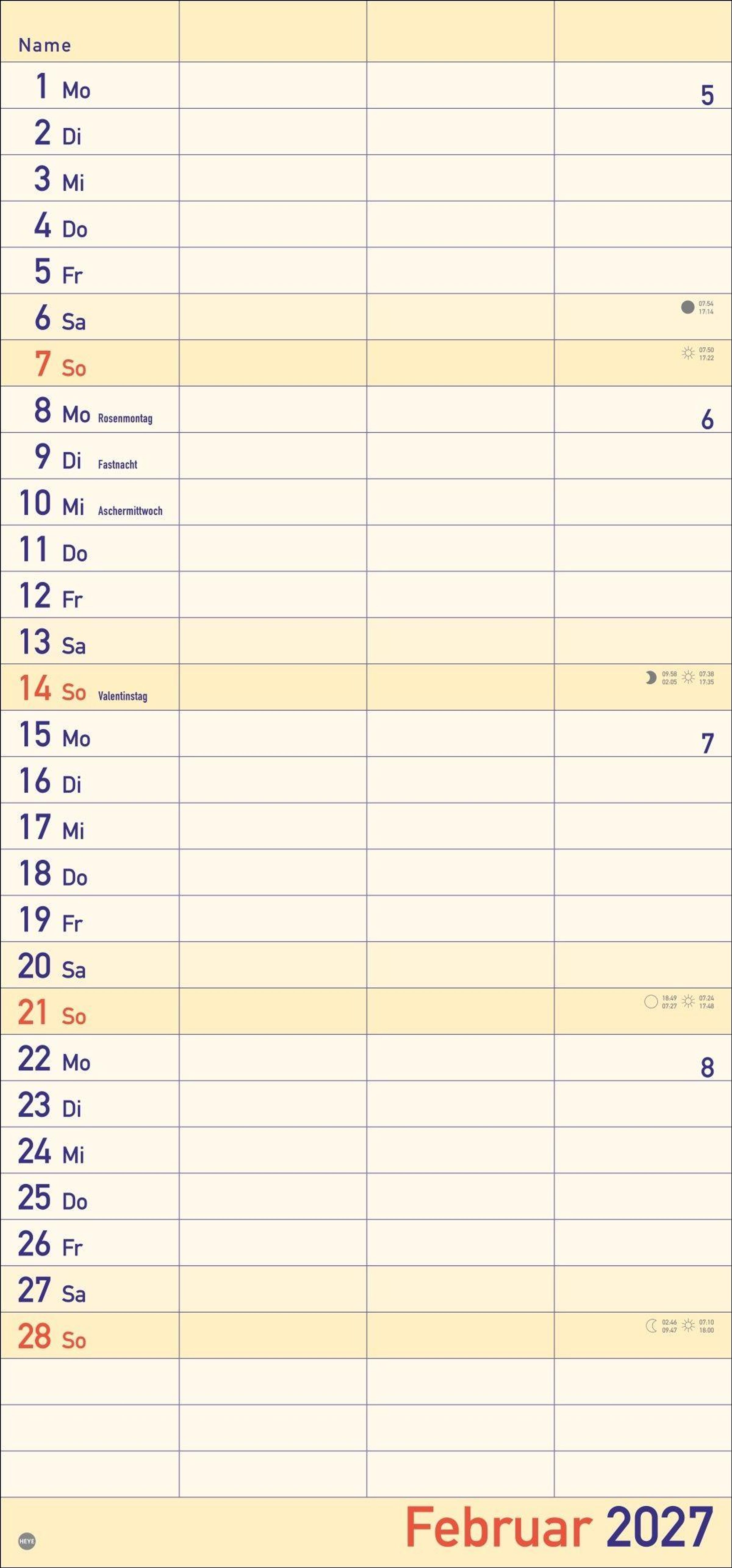 Für alle, die richtig was vorhaben: Paarkalender mit 3 Spalten für ihre Unternehmungen und Termine