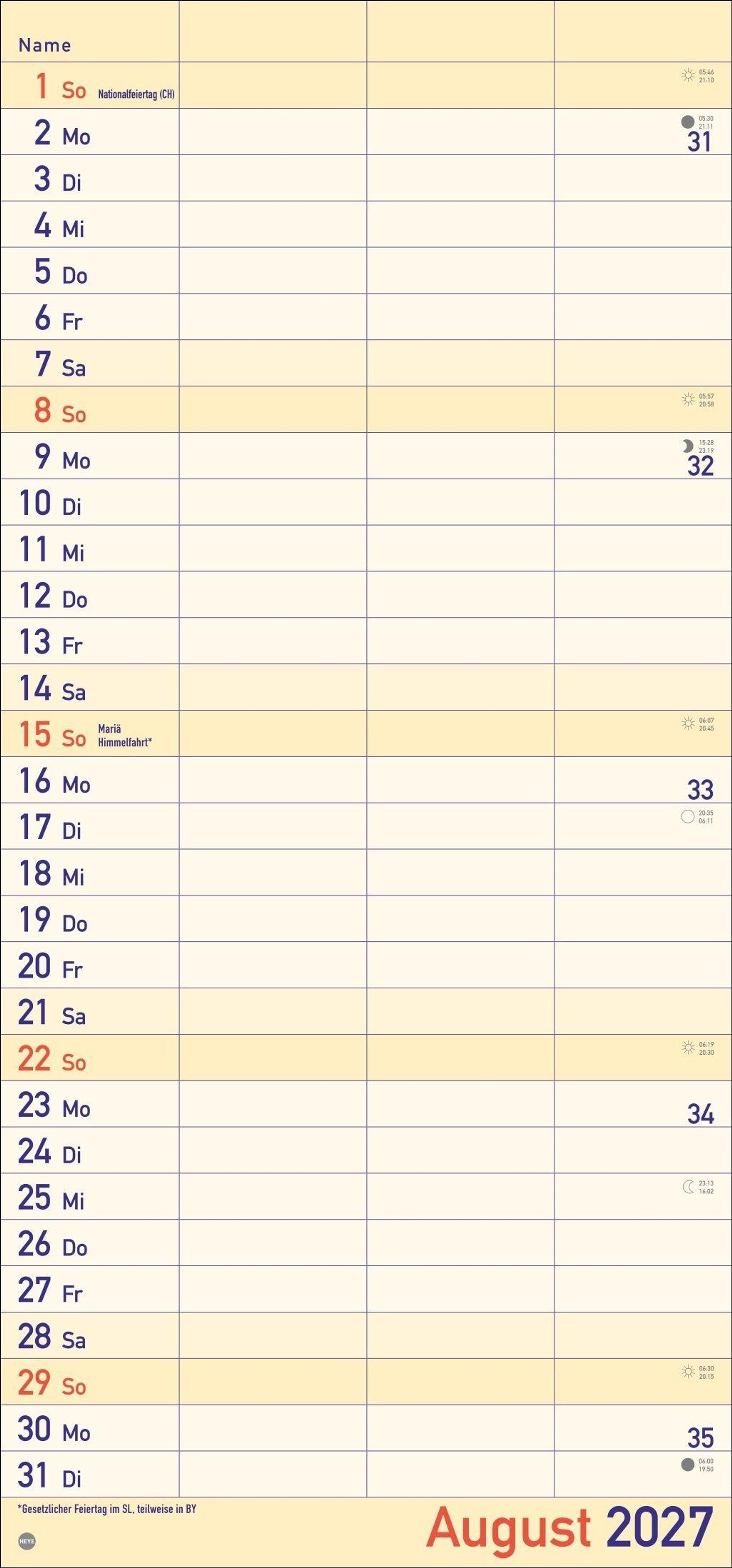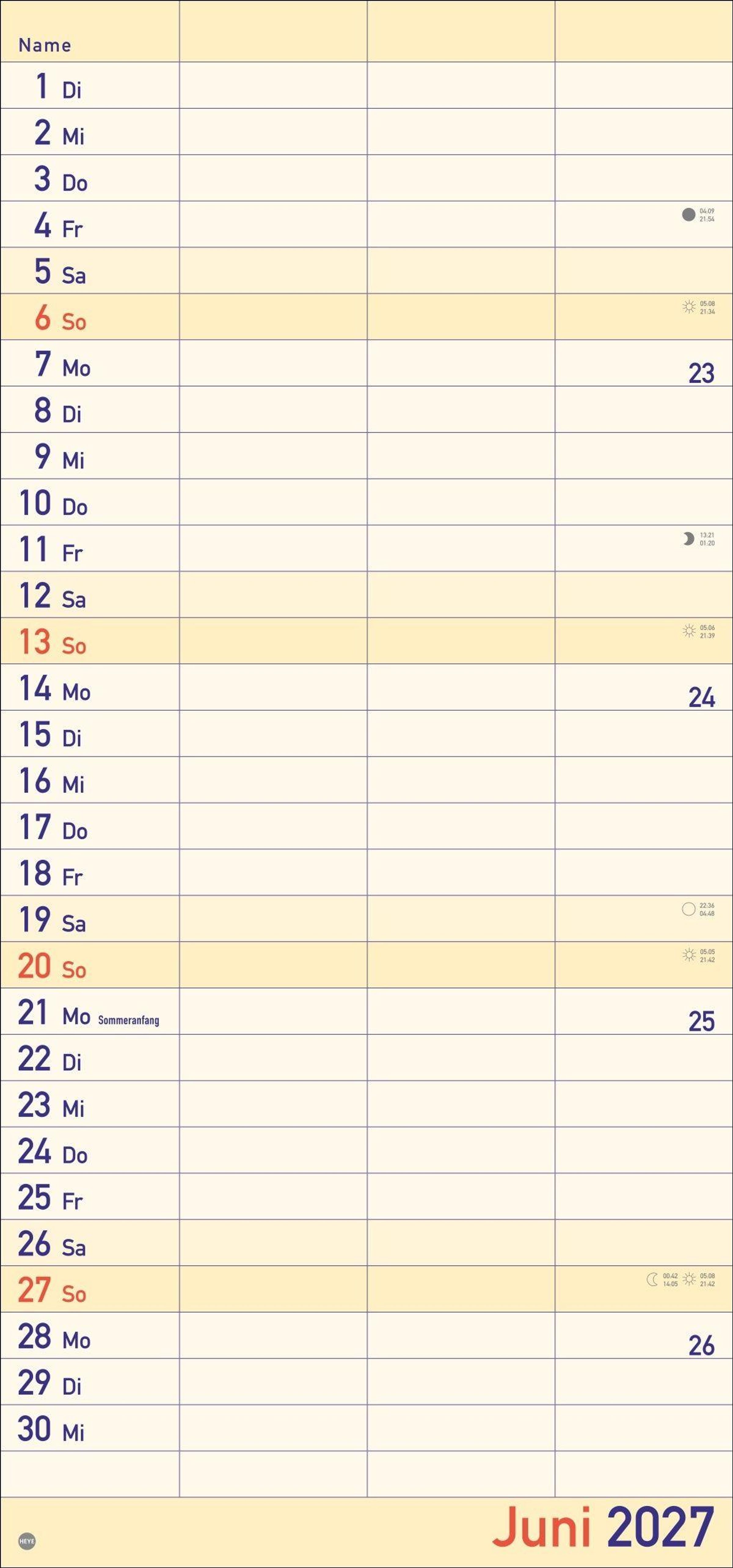 Alle Termine im Blick: länglicher Monatskalender - groß gedruckt und mit breiten Spalten für eine gute Lesbarkeit