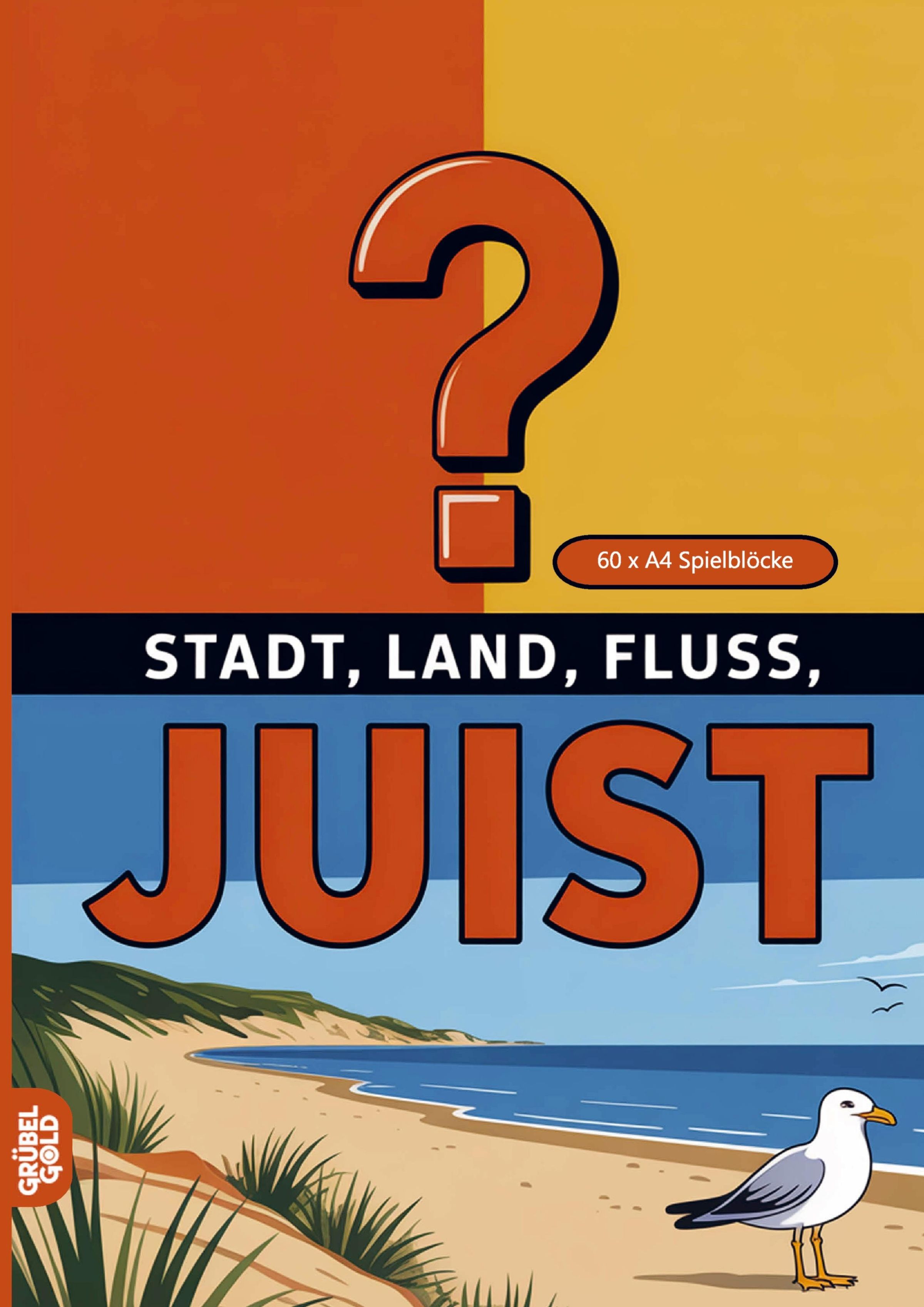 Text: STADT, LAND, FLUSS, JUIST. 60 x A4 Spielblöcke. Illustration: Strand mit Möwe, Dünen und Meer., Buch