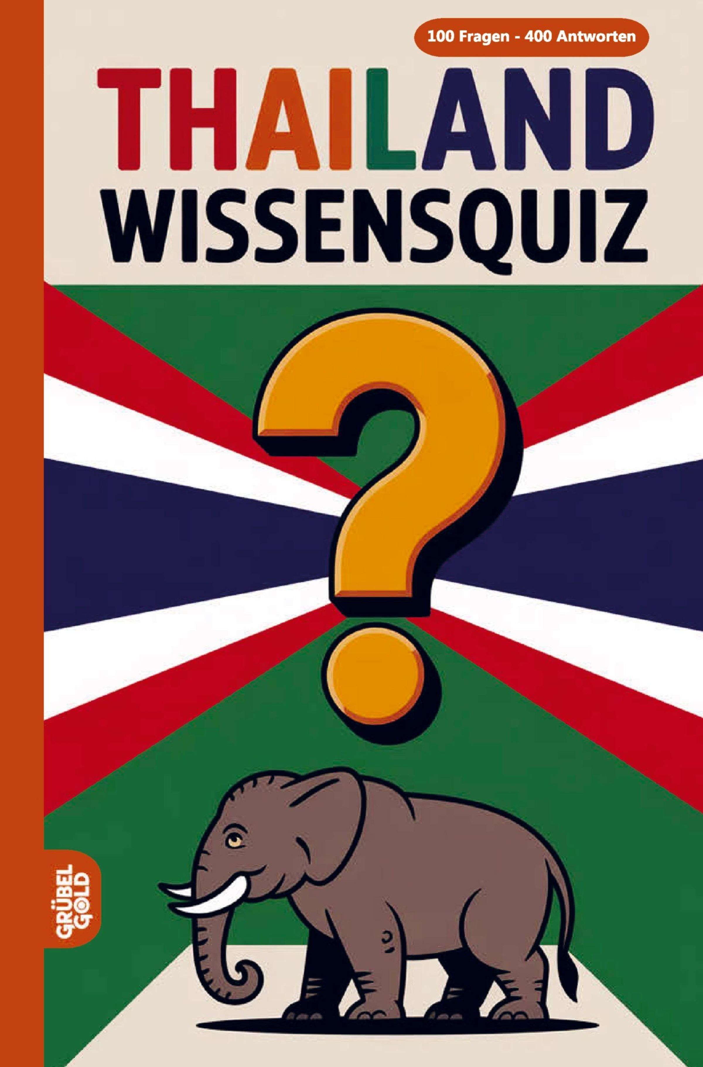 Text: "100 Fragen - 400 Antworten", "THAILAND WISSENSQUIZ". Illustration: Ein Elefant vor einem großen Fragezeichen. , Buch