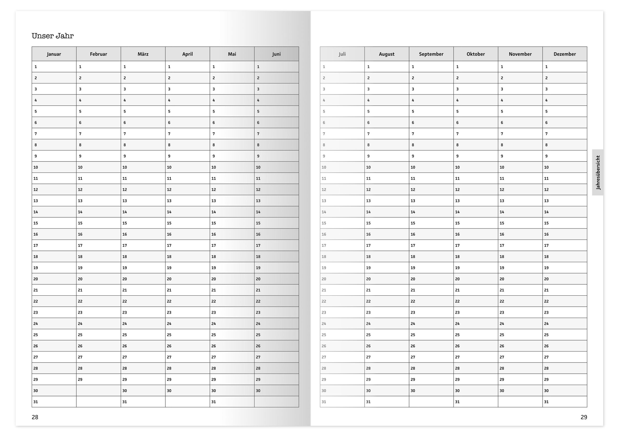 ¿ Jahres- und Wochenplaner unterstützen bei der Organisation von Projekten, Ausflügen und Terminen.