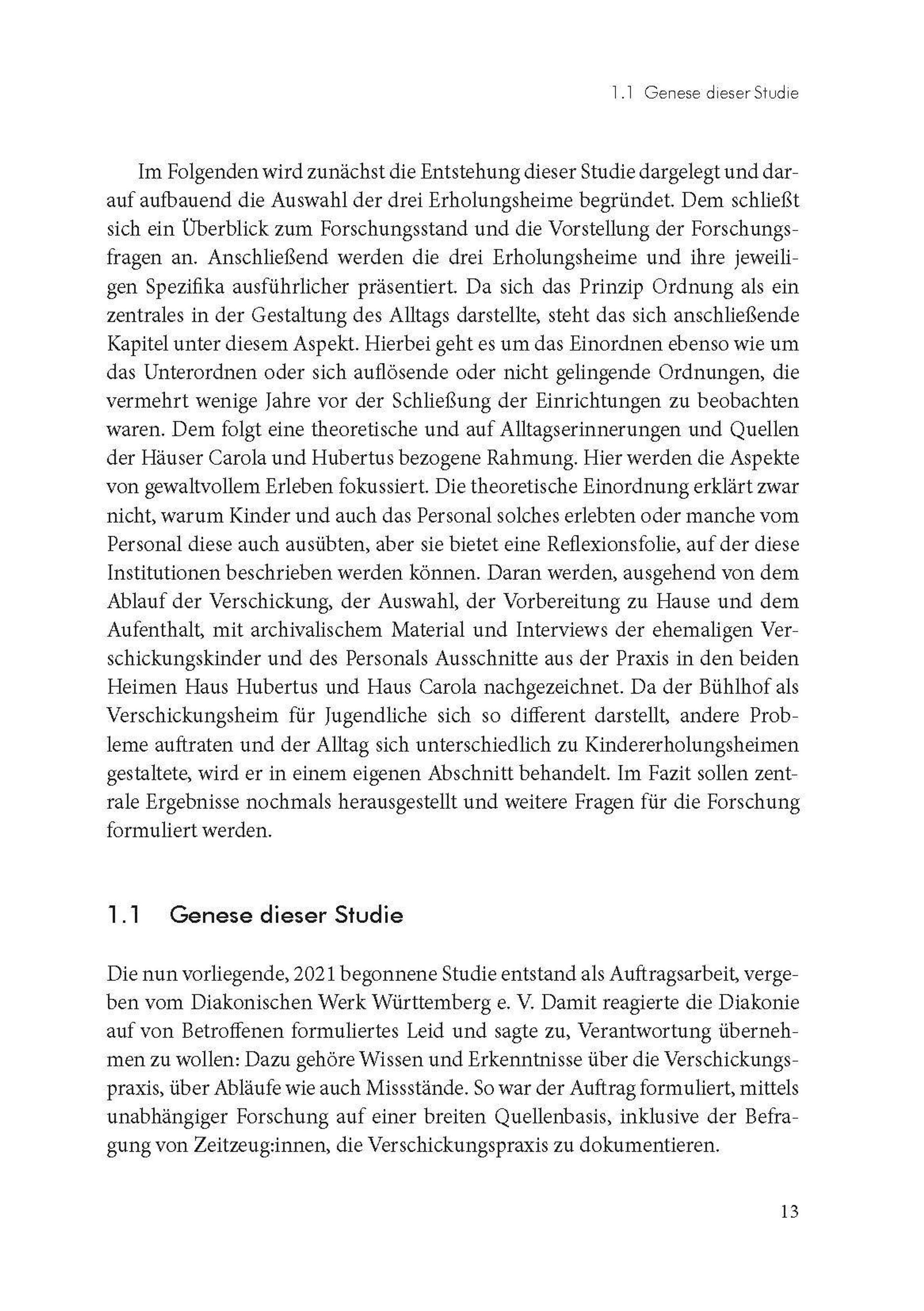 Das Diakonische Werk Württemberg und seine Mitgliedsorganisationen unterhielten bis Ende der 1980er Jahre Erholungsheime für Kinder, u. a. das Haus Hubertus in Scheidegg, das Haus Carola in Schönau bei Berchtesgaden und den Bühlhof in Königsfeld. Betroffene, die als Kind in Kindererholungsheimen und -kurstätten untergebracht waren, verschafften sich mit öffentlichen Auftritten, Presseberichten und Publikationen Gehör. Sie fordern von der Politik und den Trägerorganisationen eine Aufarbeitung des an ihnen begangenen Unrechts während der Verschickung. Gudrun Silberzahn-Jandt erforscht im Auftrag des Diakonischen Werks Württemberg, was die Kinder und Jugendlichen, aber auch die Mitarbeiter: innen in den drei ausgewählten Heimen erlebten. Anhand umfassender Quellen und mittels Interviews gibt sie Einblick in den Alltag der Erholungseinrichtungen, der durch viele leidvolle, aber auch manche schönen Momente geprägt war.