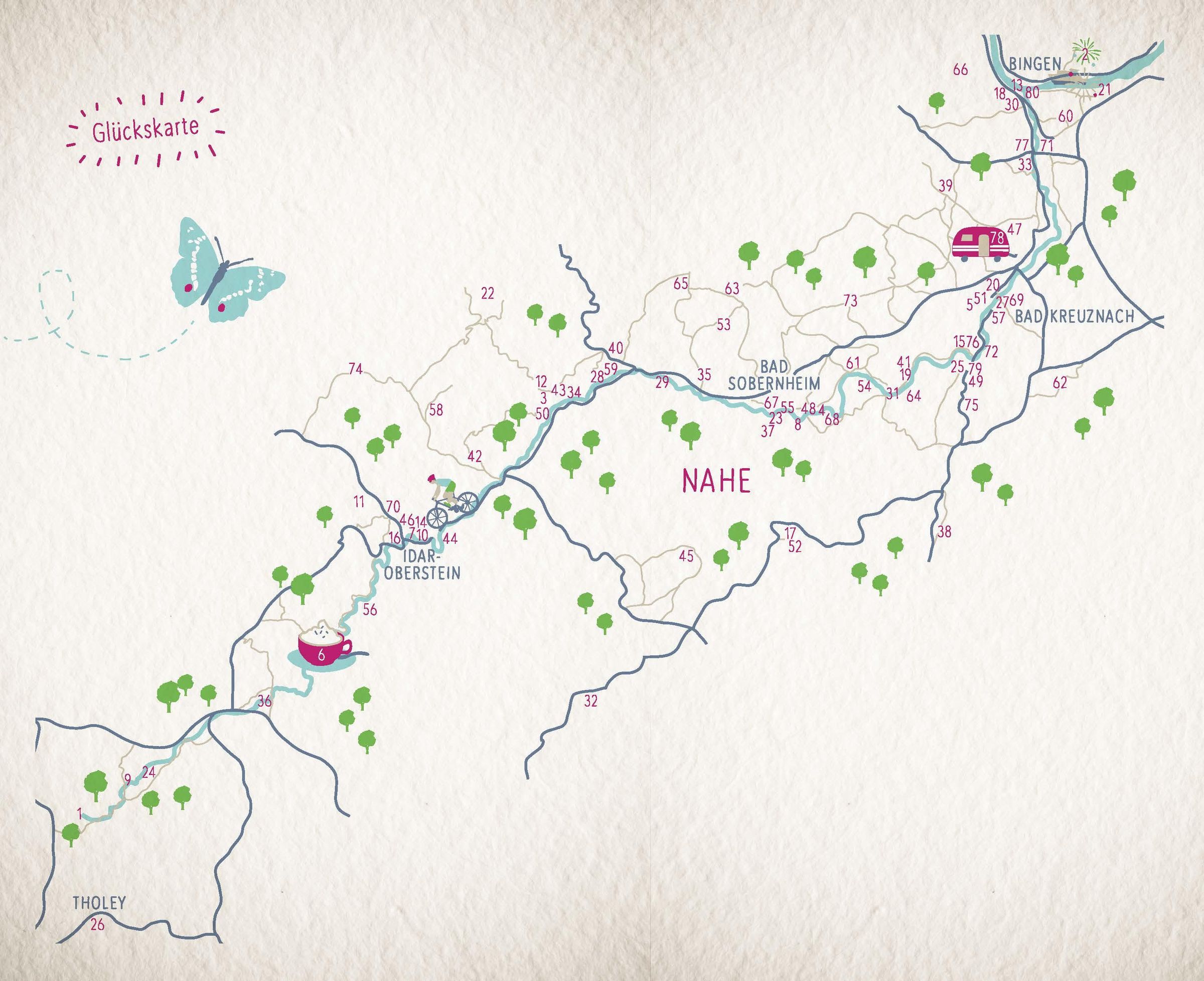 Gemütlich bahnt sich die Nahe ihren Weg, Hektik ist für sie ein Fremdwort. Auch an ihren Ufern findet sich Entspannung: Wunderschöne Orchideen, wohltuende Schlammbäder und weitläufige Wanderwege sorgen für besondere Glücksmomente. Das erkannten sicherlich auch schon die Kelten und Römer, die hier eine Vielzahl an Ruinen hinterlassen haben. Rechts und links der Nahe hat Günter Schenk 80 Orte ausgesucht, an denen wir das Glück mit allen Sinnen spüren können.