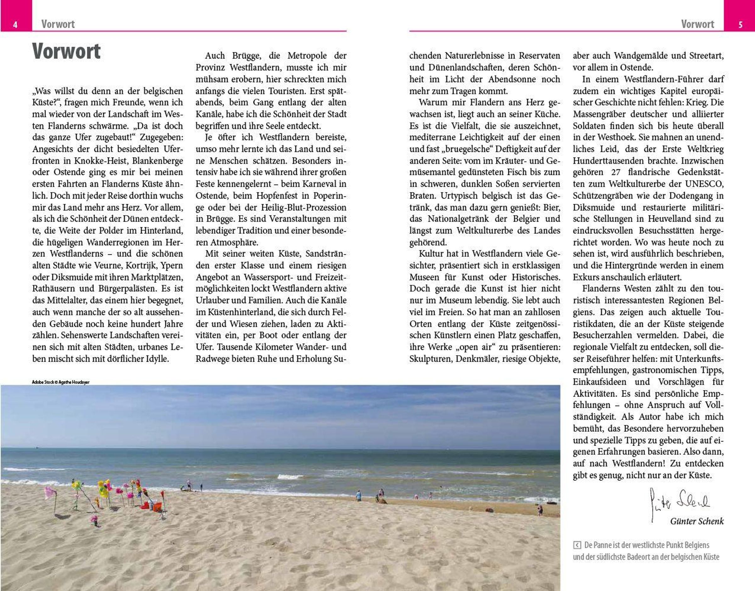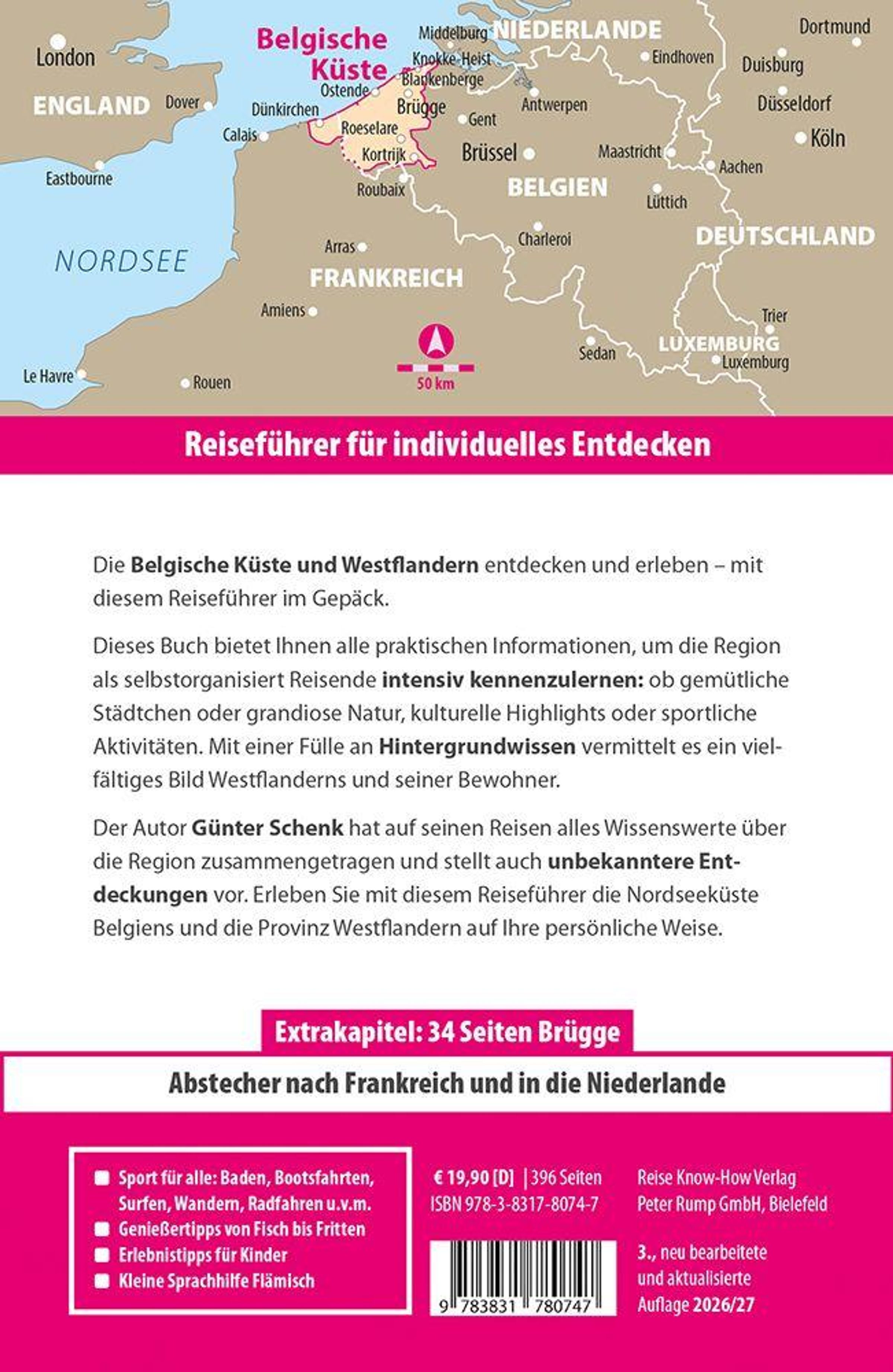 Innerhalb weniger Zug- oder Autostunden erreicht man von Deutschland aus die belgische Nordseeküste mit ihren mondänen Seebädern wie Blankenberge oder De Haan, familien- und campingfreundlichen Ziele wie Middelkerke oder Westend und Wassersportparadiese wie De Panne. In seinem Reiseführer Belgische Küste - Westflandern mit Brügge lädt Autor Günter Schenk dazu ein, Westflandern samt seiner französischen und niederländischen Nachbarregionen in allen Facetten zu erkunden. Er zeigt Orte für gemütliche Badeurlaube, fesselnde Naturerlebnisse, einmalige Wander- und Radrouten und interessante Stadterkundungen auf. Brügge und Ostende werden besonders ausführlich porträtiert. Aber auch die Menschen, ihre Lebensart und die kulinarischen Besonderheiten der Region kommen nicht zur kurz. Typische Speisen, Biere und Weine Flanderns werden vorgestellt und Einkaufsadressen für frischen Fisch und Meeresfrüchte verraten.