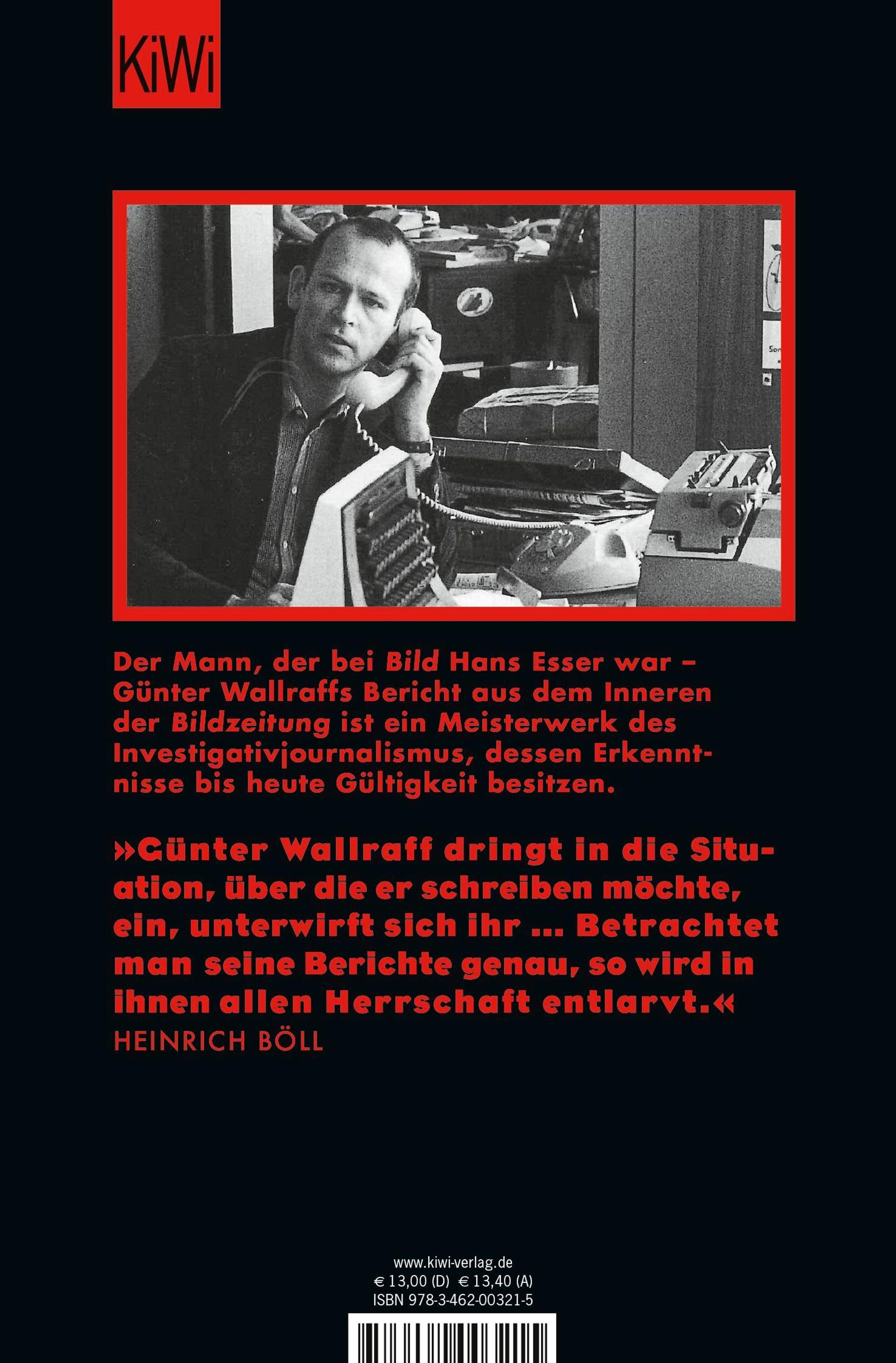 Günter Wallraff, geb. 1942 in Burscheid bei Köln, war zuerst Buchhändler, dann Journalist und Schriftsteller. Heute engagiert er sich vor allem in Ostdeutschland gegen Rechtsradikalismus und Rassismus. Zahlreiche weitere Veröffentlichungen. 2010 wird ihm der Gerty-Spies-Literaturpreis der rheinland-pfälzischen Landeszentrale für politische Bildung verliehen.Anmerkungen: