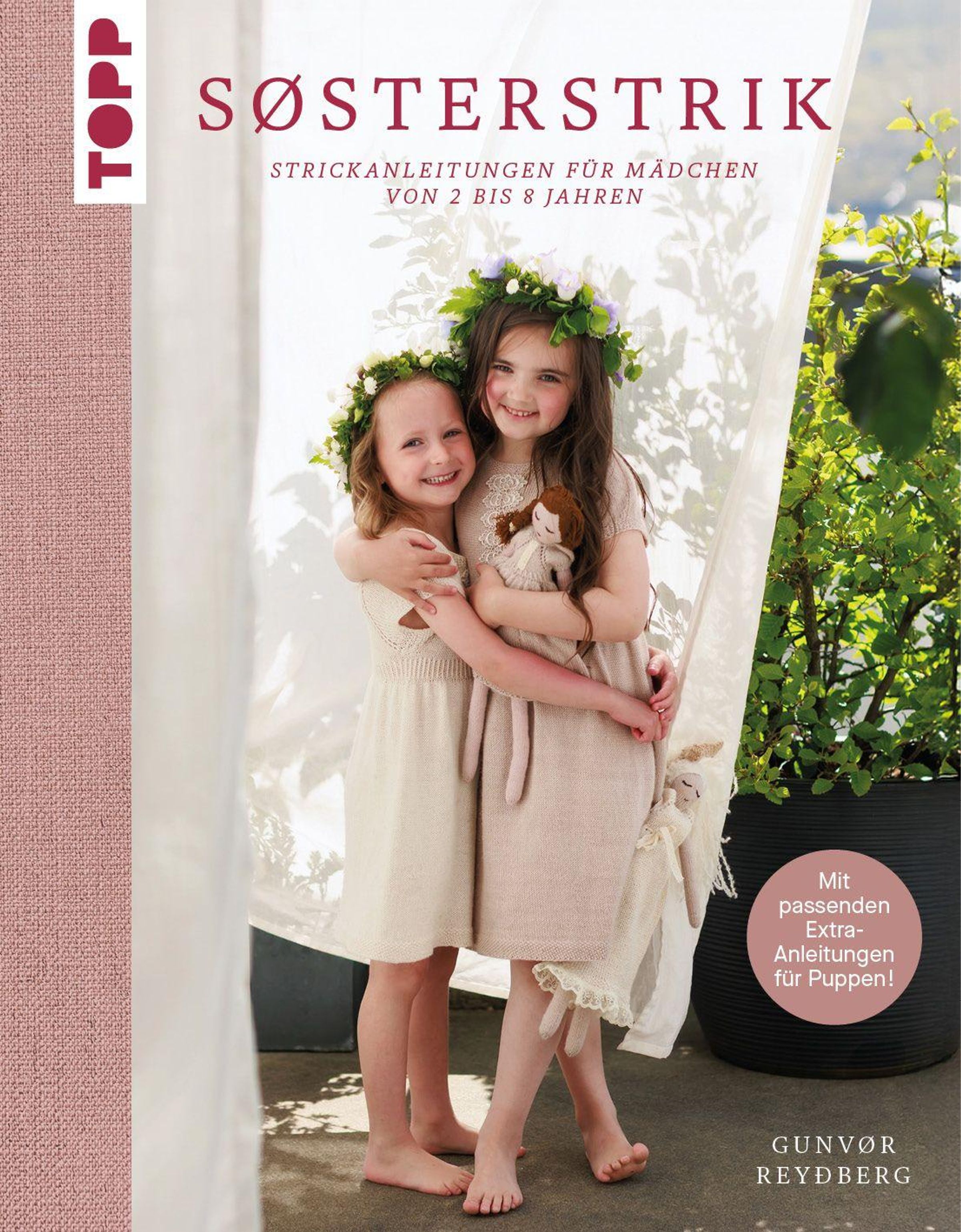 "SØSTERSTRIK: Strickanleitungen für Mädchen von 2 bis 8 Jahren. Mit Extra-Anleitungen für Puppen. Zwei Mädchen umarmen sich.", Buch
