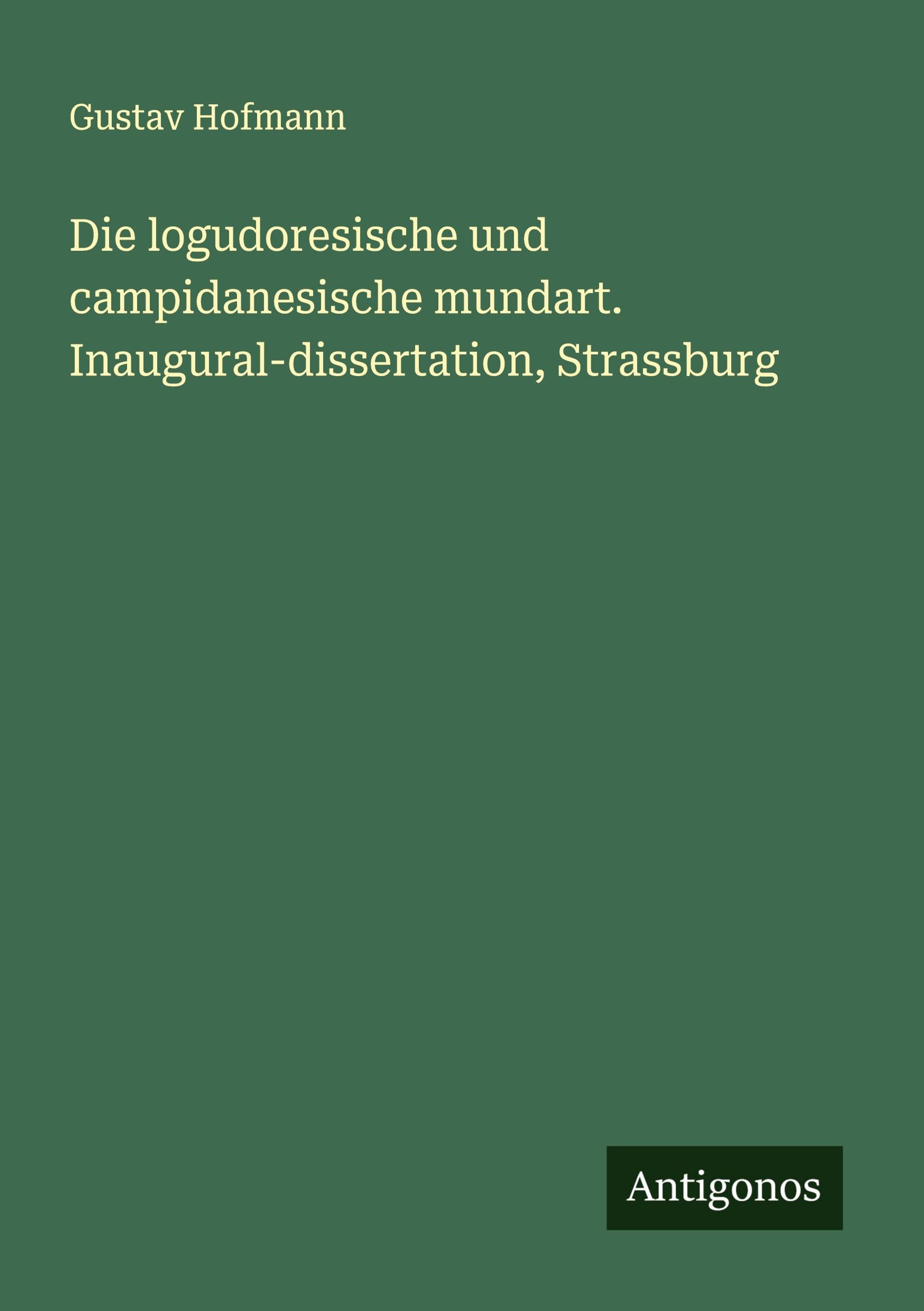 Gustav Hofmann: Die logudoresische und campidanesische mundart. Inaugural-dissertation, Strassburg, Kartoniert / Broschiert