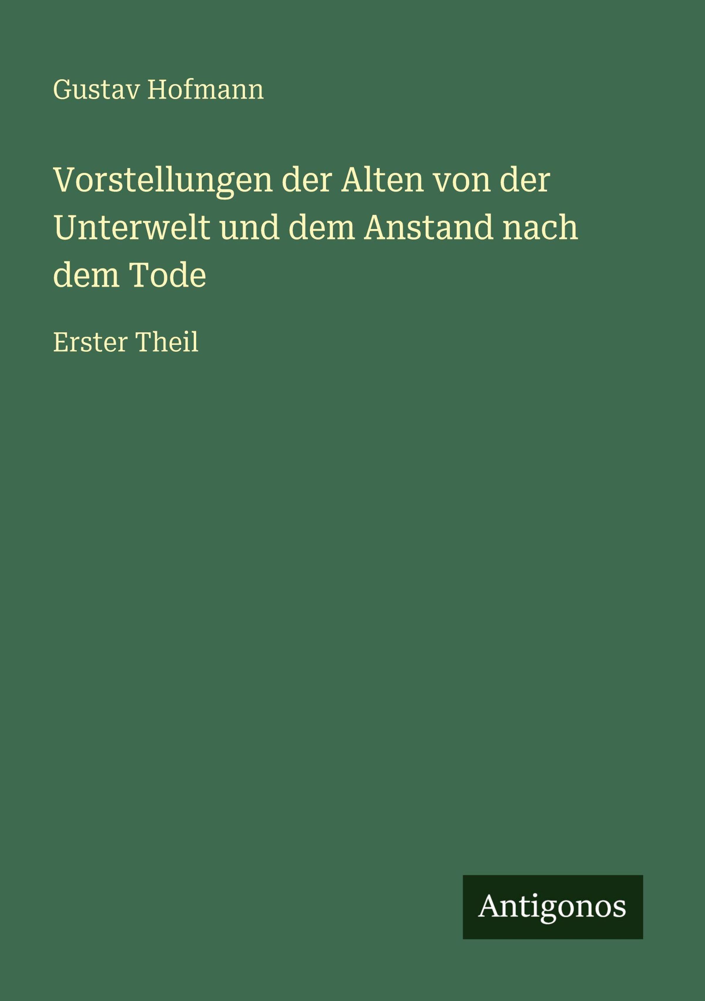 Gustav Hofmann: Vorstellungen der Alten von der Unterwelt und dem Anstand nach dem Tode, Kartoniert / Broschiert
