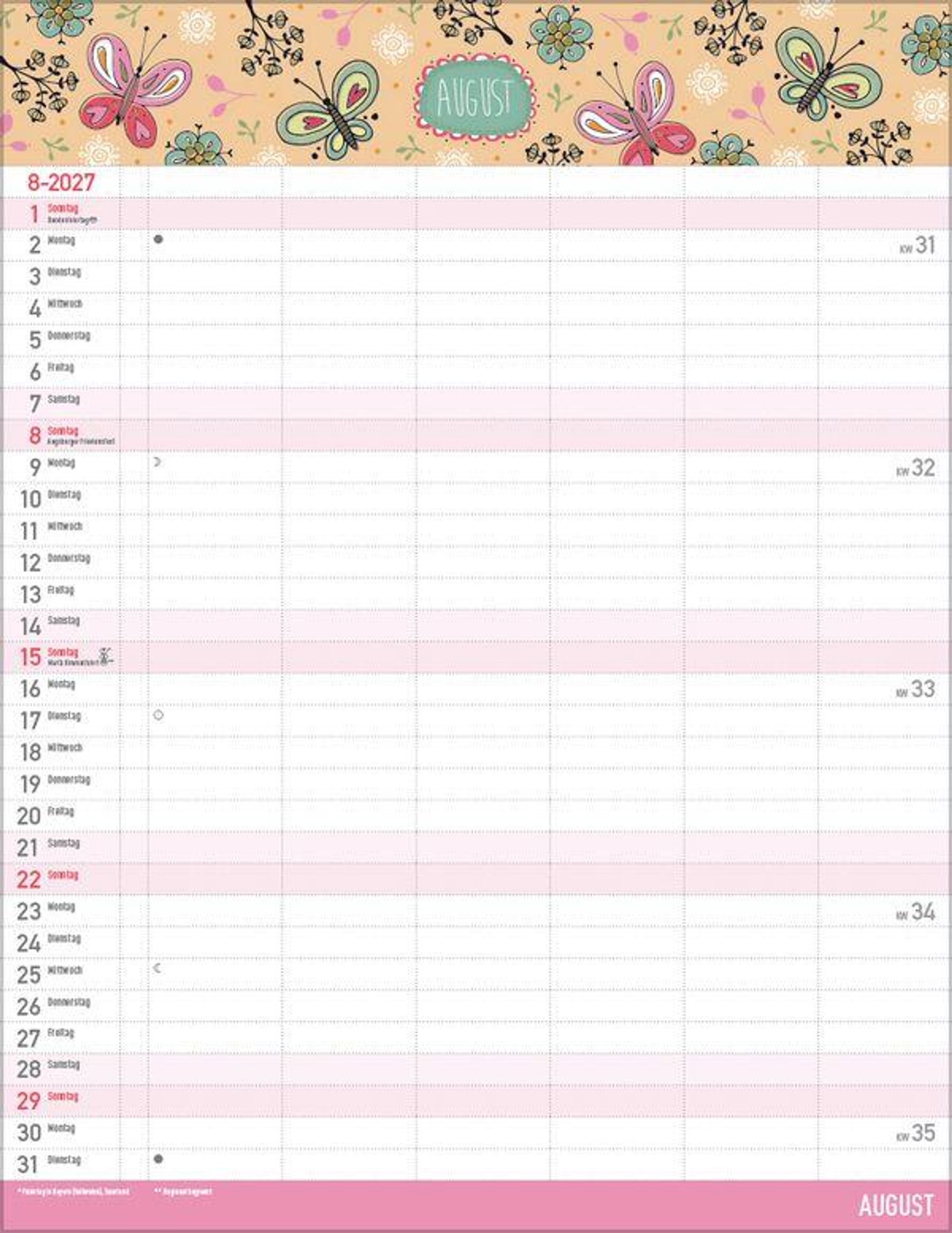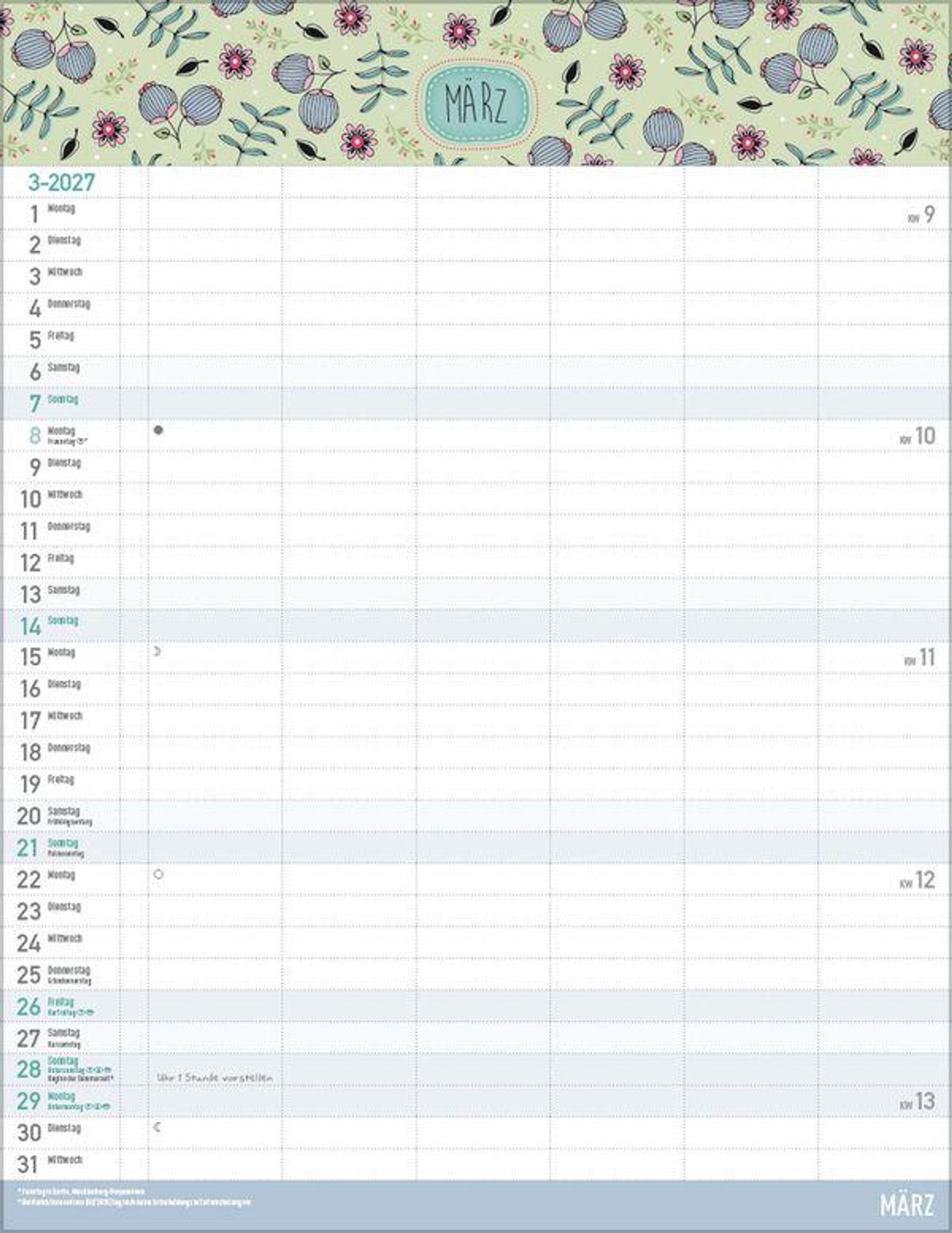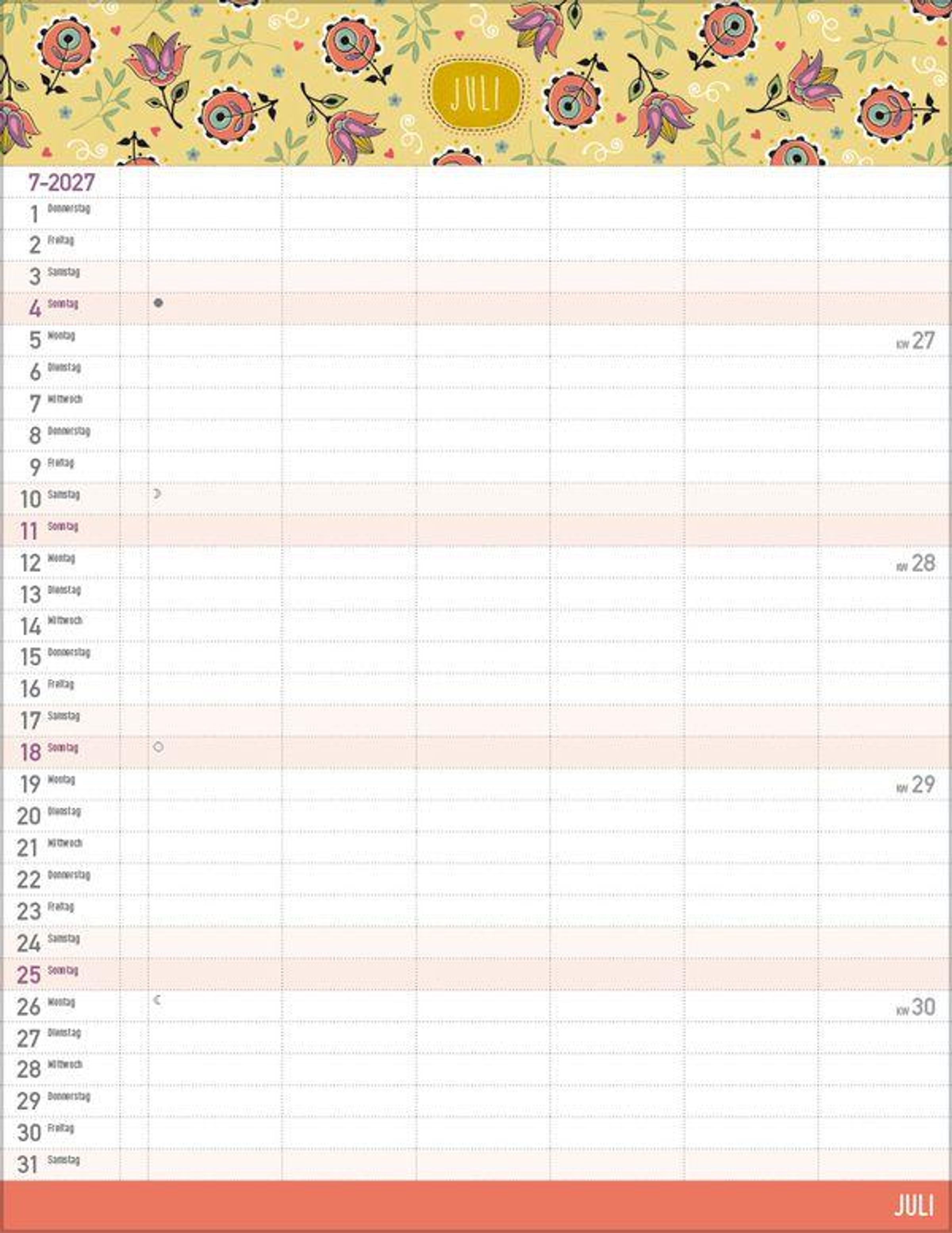 - Familientimer - 6 große Spalten mit viel Platz. Hochwertiger Familienkalender mit Zettelfach und Vorschau bis März 2027. 27 x 46 cm.