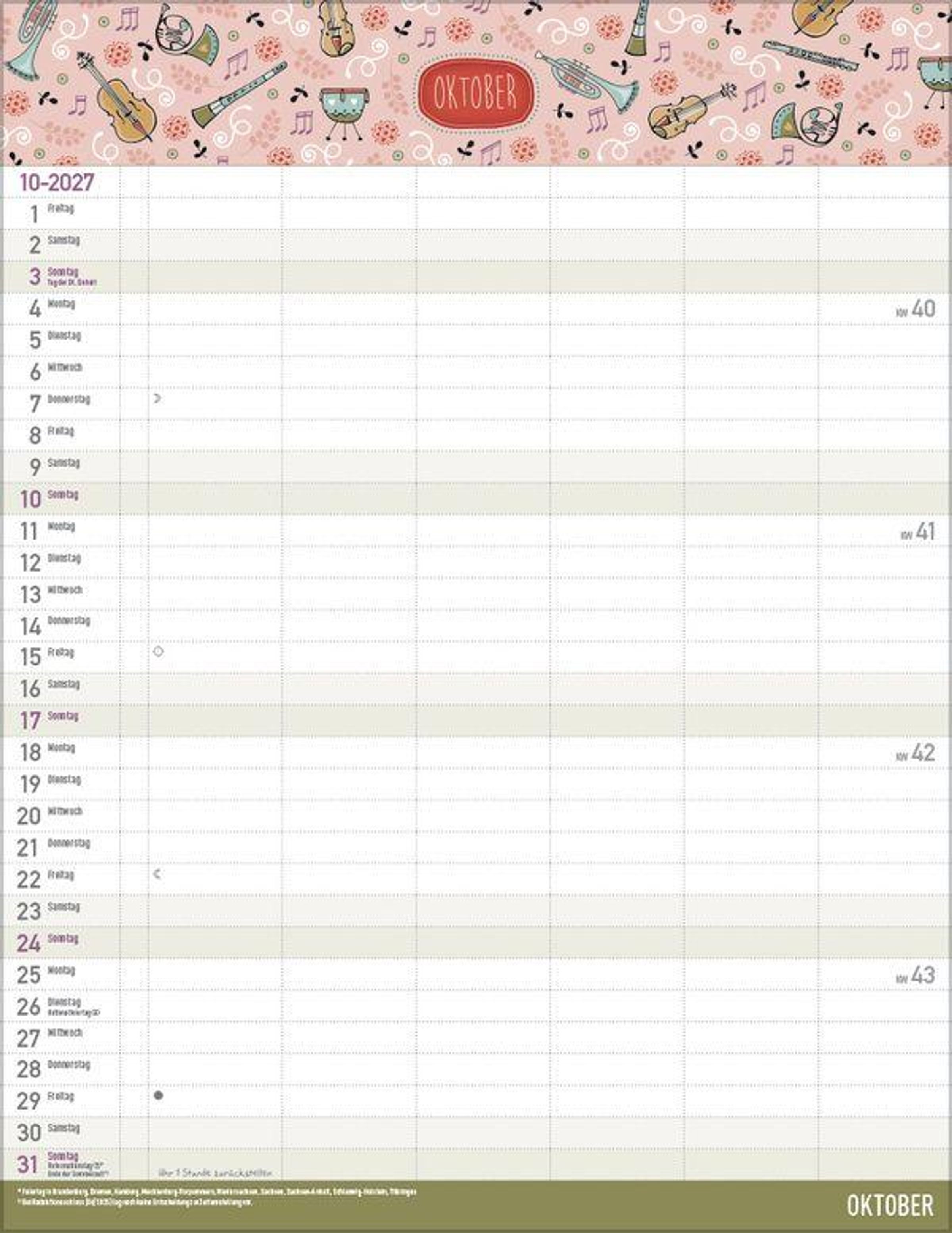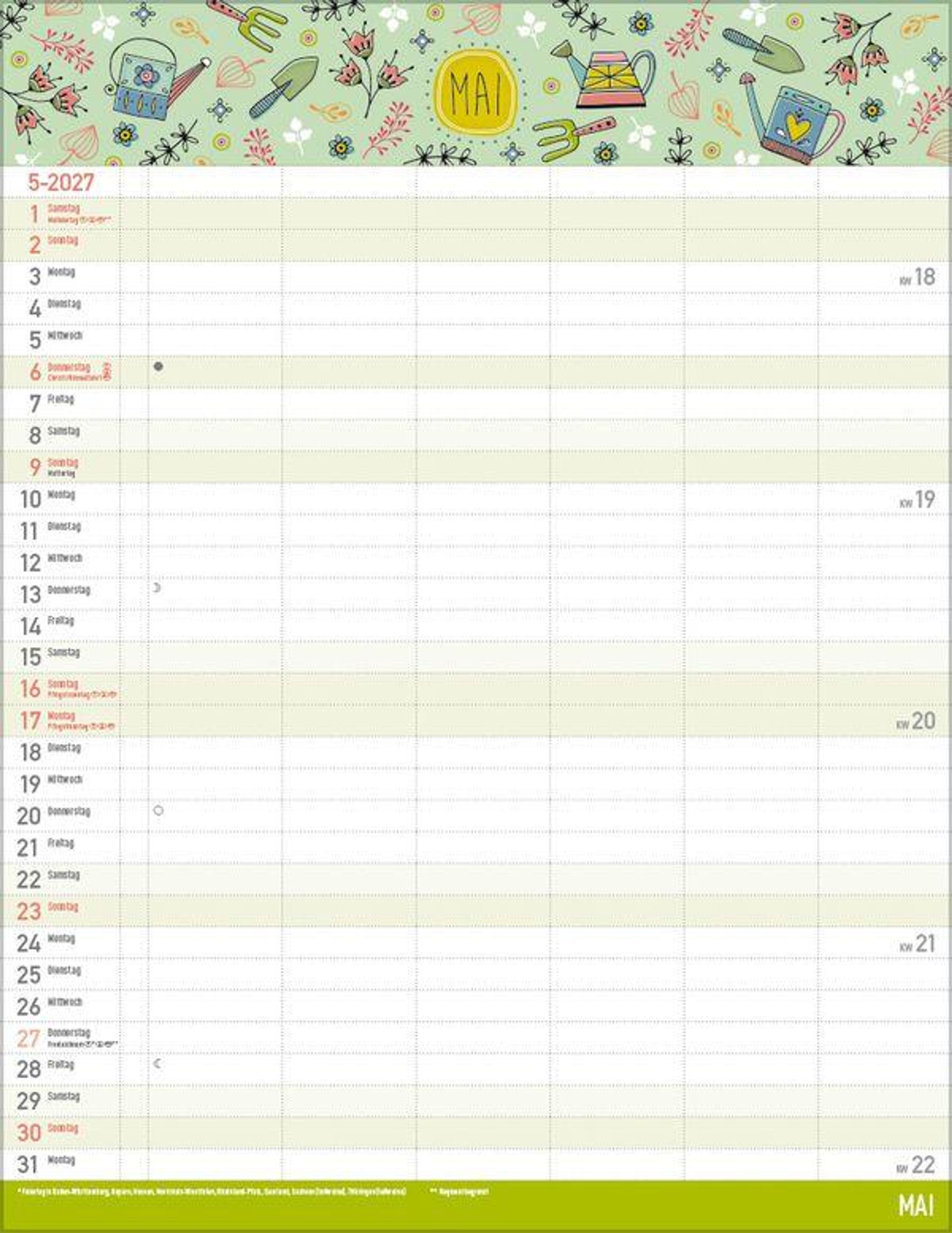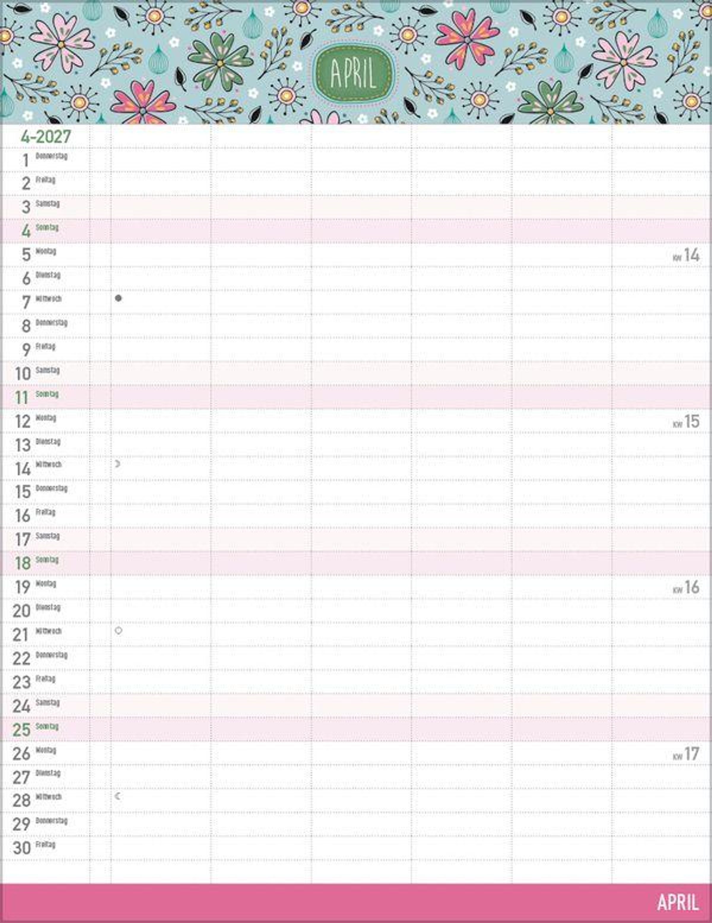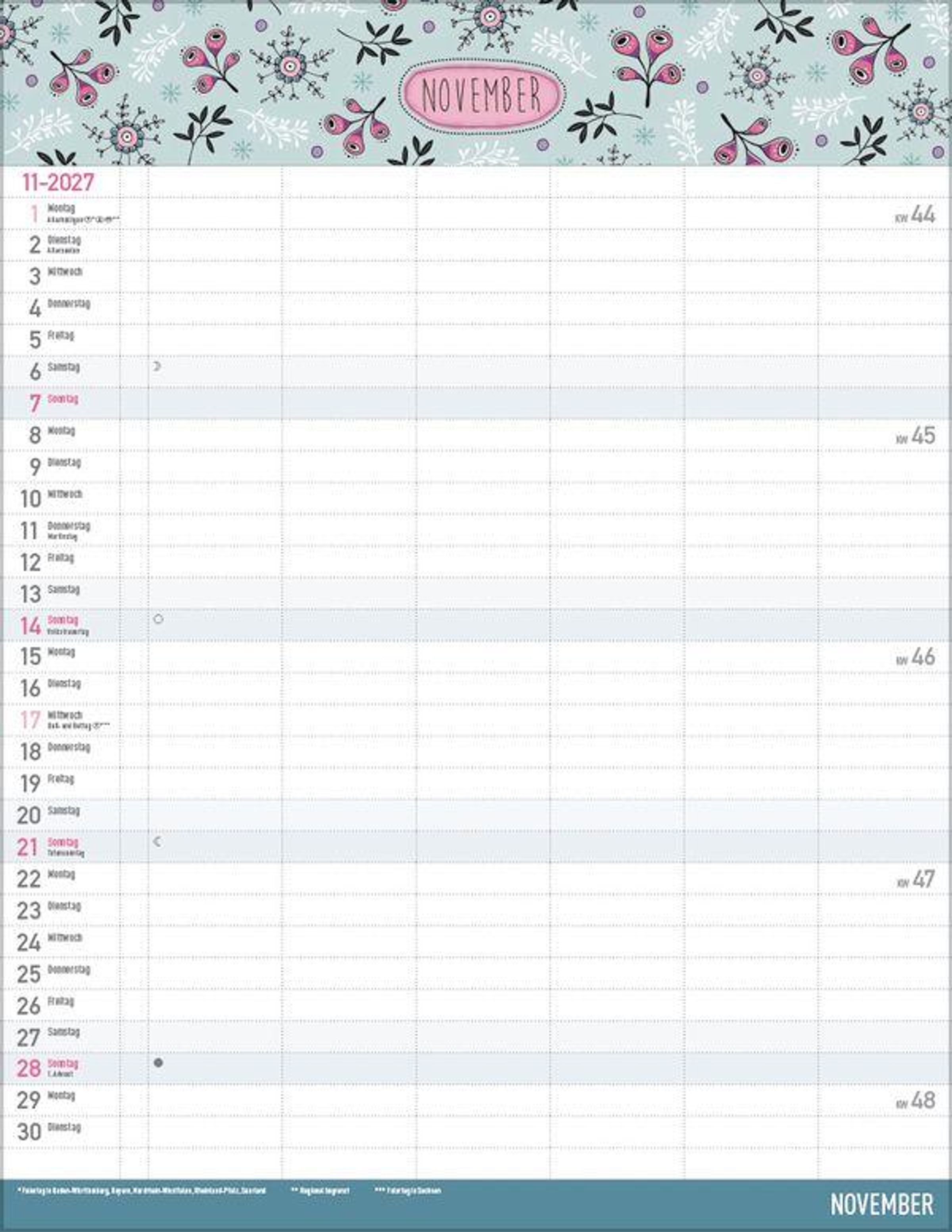 - Familientimer - 6 große Spalten mit viel Platz. Hochwertiger Familienkalender mit Zettelfach und Vorschau bis März 2027. 27 x 46 cm.