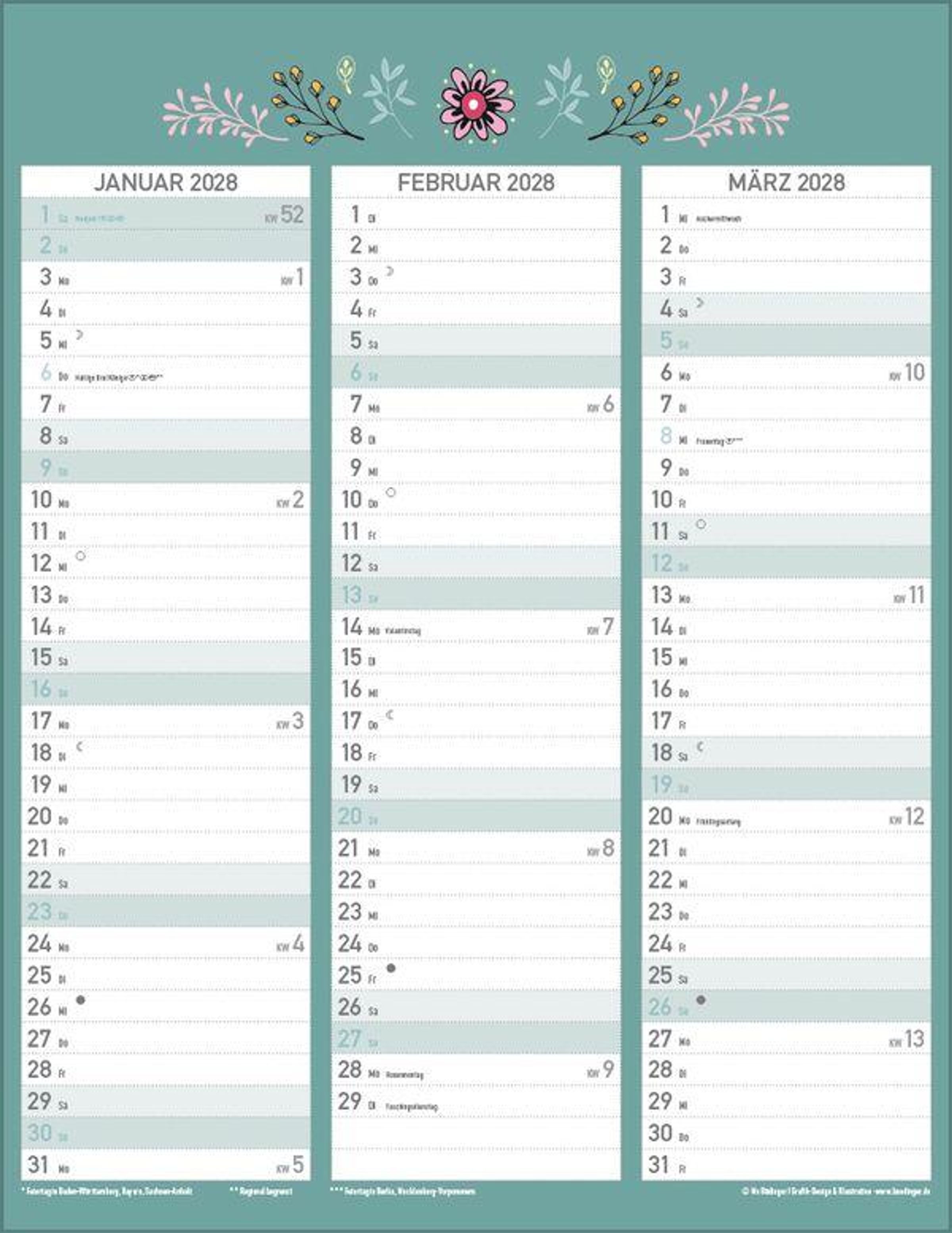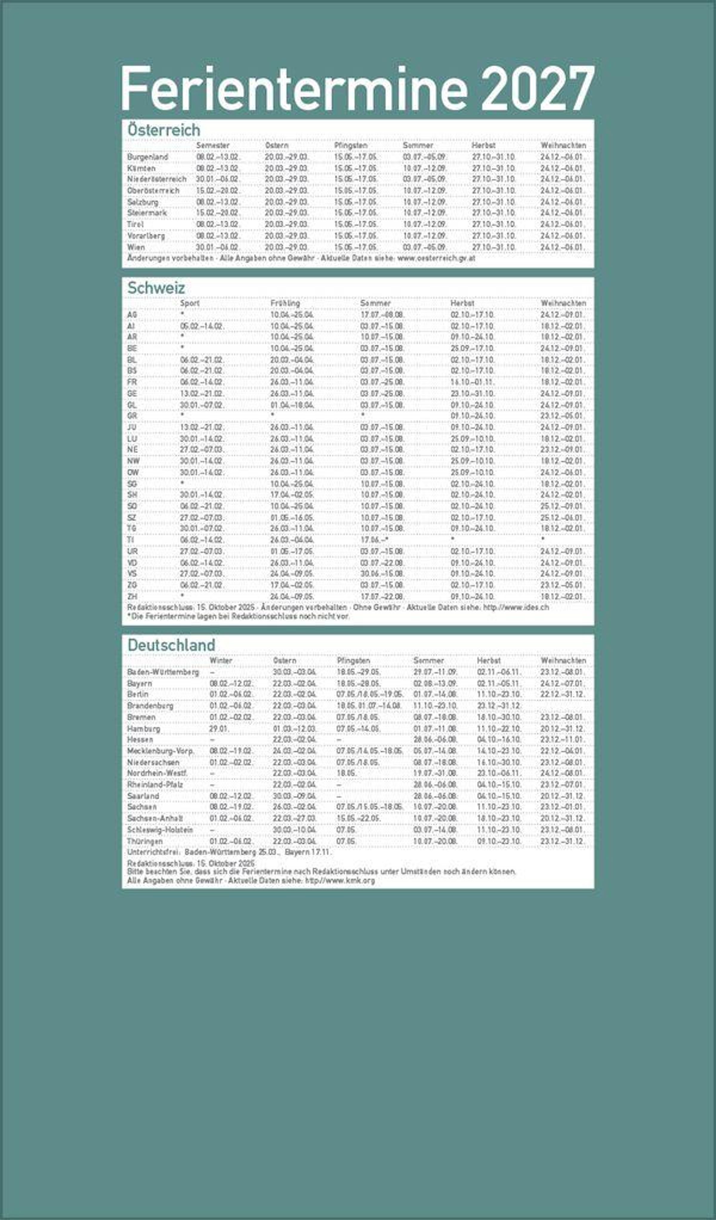 - Praktische Zusatzspalte für Ferien, Müll und weitere Aktivitäten
