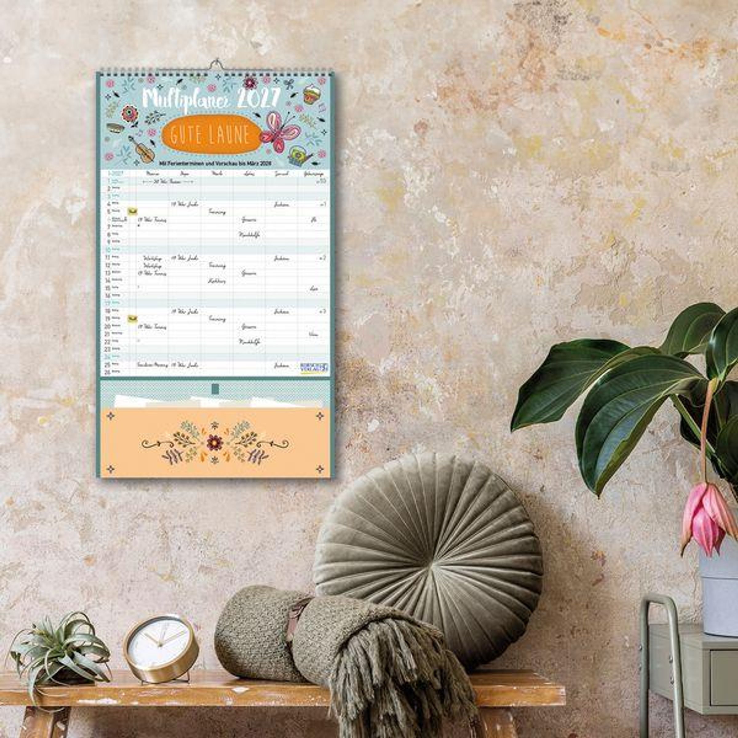 Dieser Kalender zaubert Gute-Laune-Momente in jeden Alltag! Die fröhlich filigranen Illustrationen der Künstlerin Mo Büdinger sorgen für beste Stimmung beim Planen. Detailreich ausgearbeitete Muster mit feinen Linien verschönen zart und farbenfroh die tägliche Organisation. Ideal für Familien und alle, die vieles im Blick behalten müssen. Mit Stiftehalter und praktischer Zetteltasche.