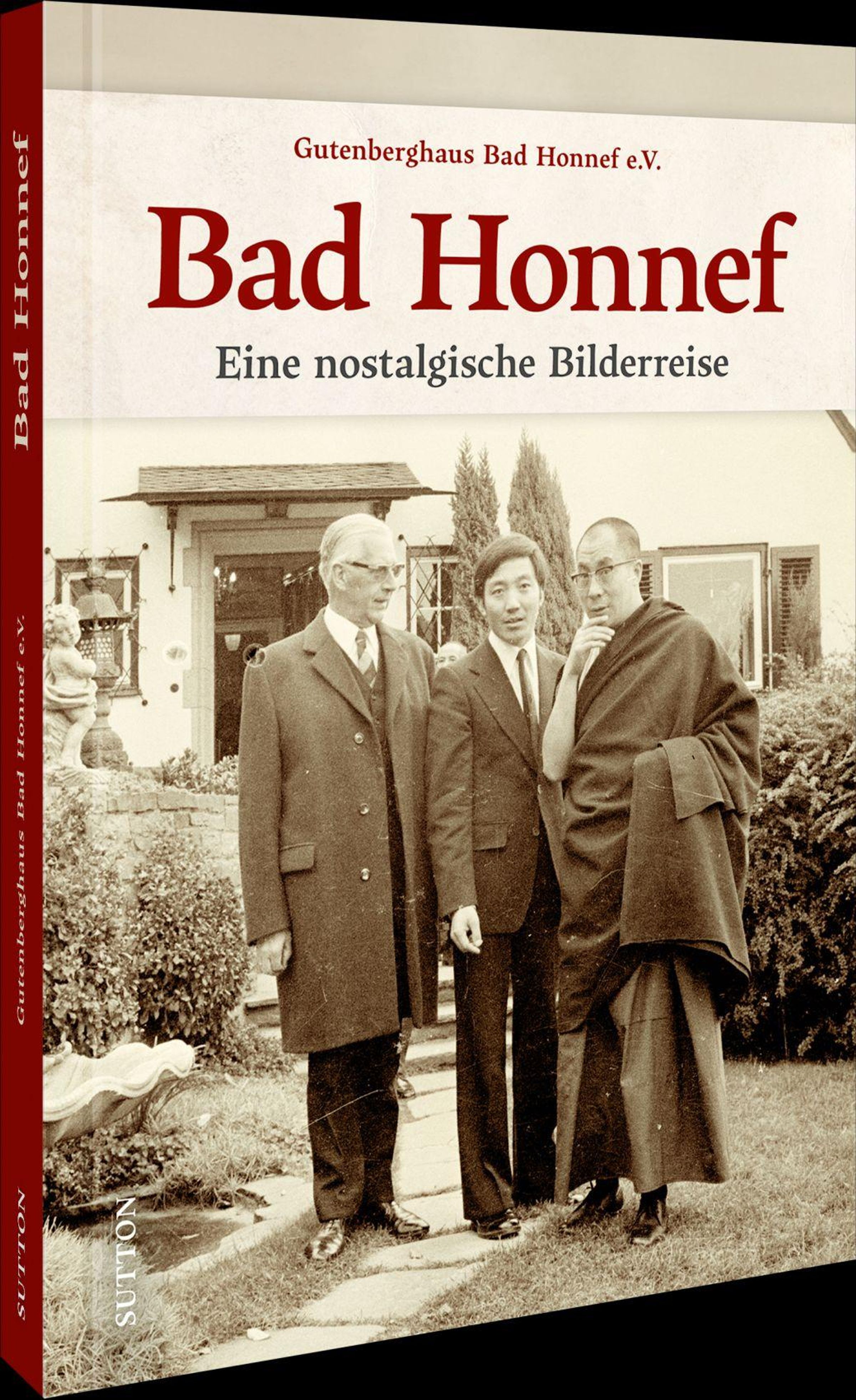"Bad Honnef: Eine nostalgische Bilderreise." Drei Männer in Anzügen vor einem traditionellen Gebäude., Buch