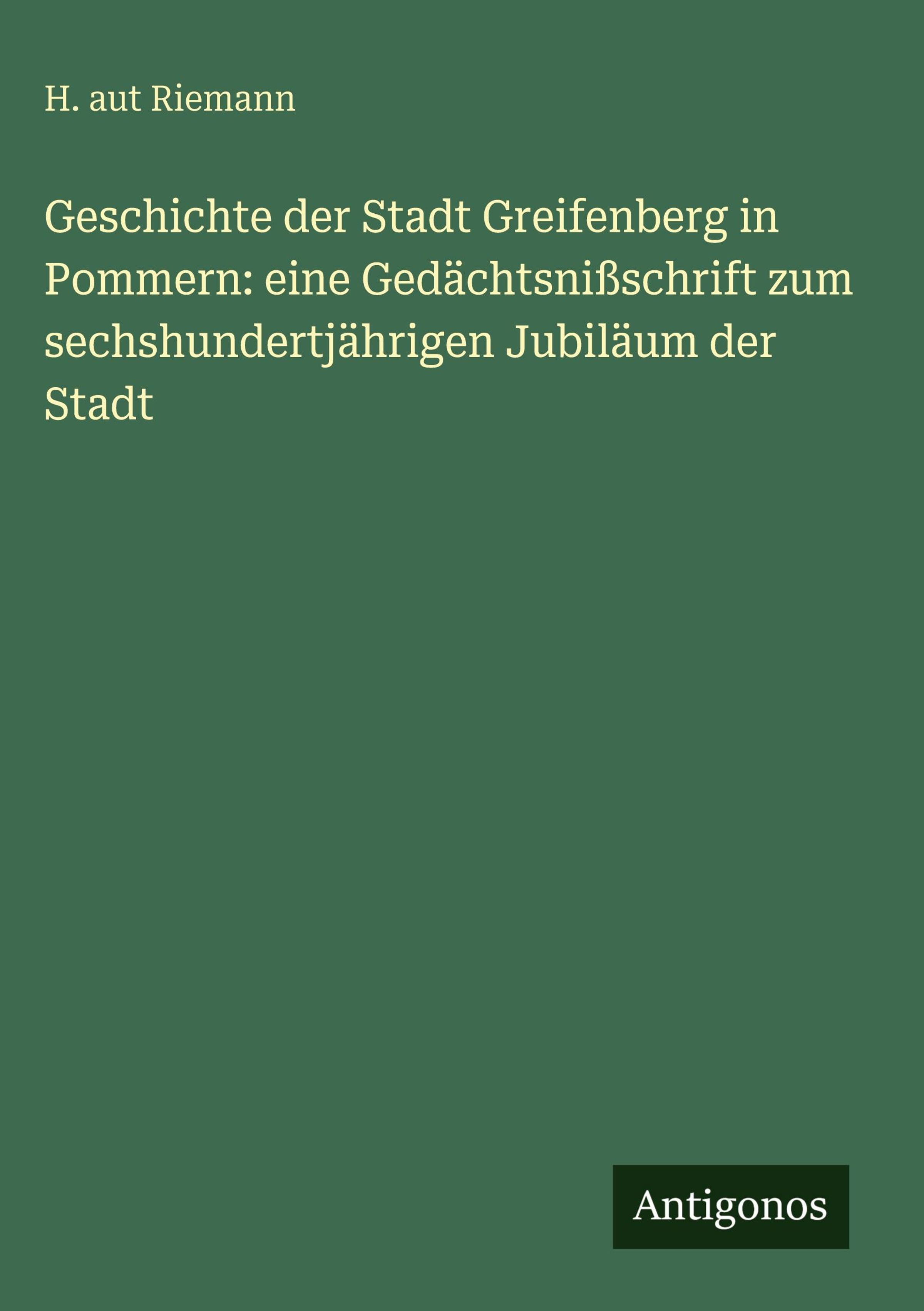 H. Aut Riemann: Geschichte der Stadt Greifenberg in Pommern: eine Gedächtsnißschrift zum sechshundertjährigen..., Gebunden