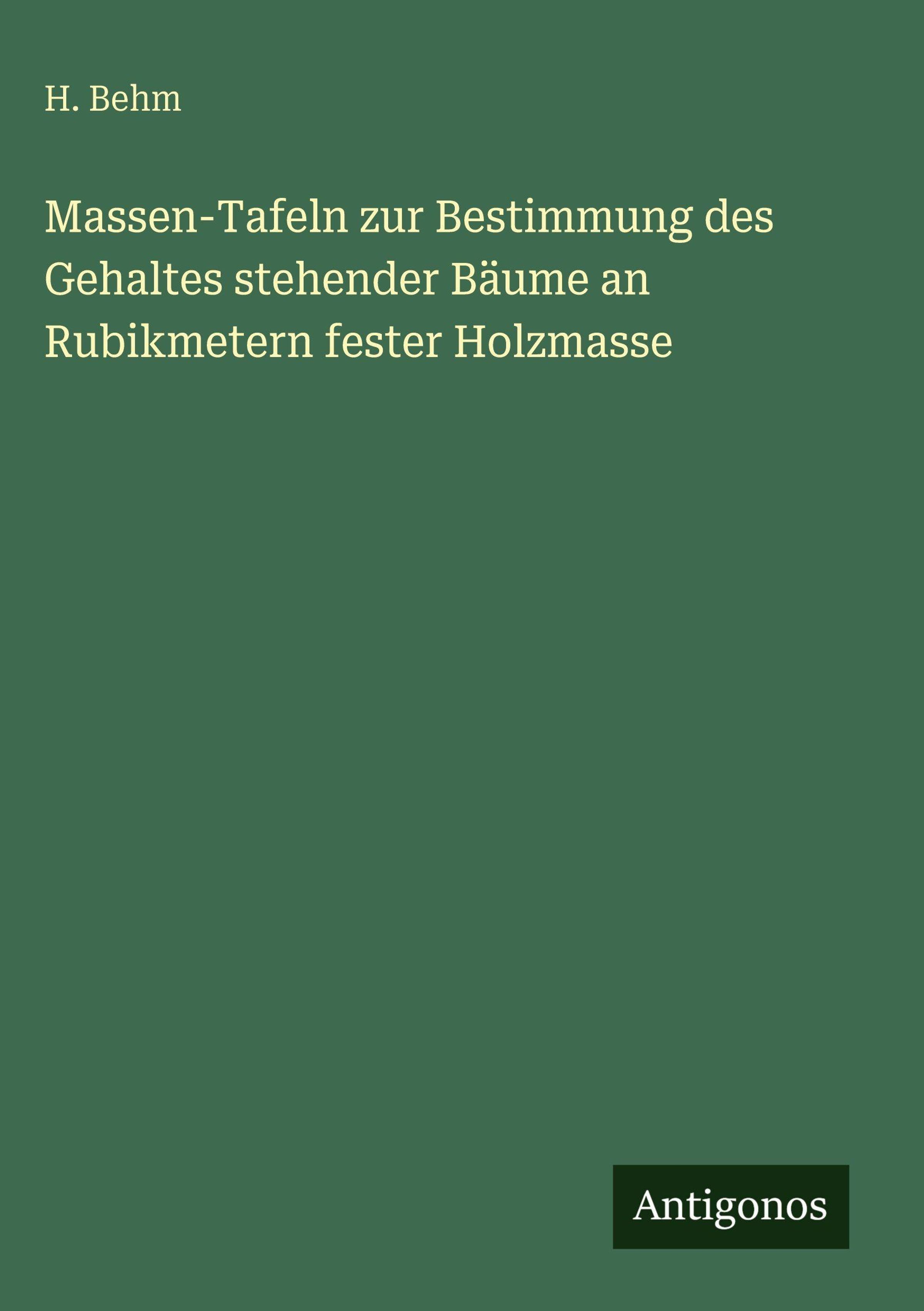 H. Behm: Massen-Tafeln zur Bestimmung des Gehaltes stehender Bäume an Rubikmetern fester Holzmasse, Gebunden