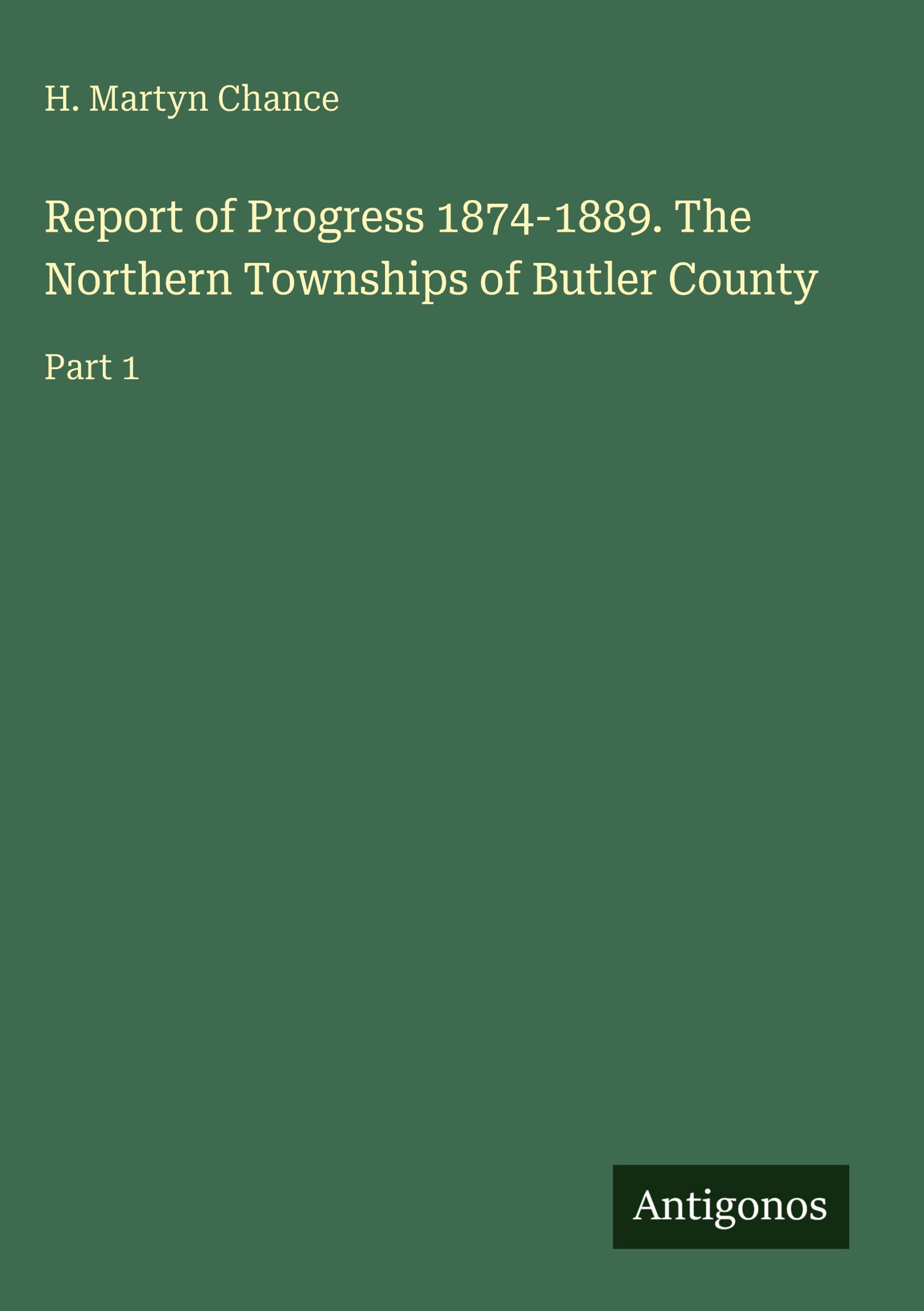 H. Martyn Chance: Report of Progress 1874-1889. The Northern Townships of Butler County, Gebunden