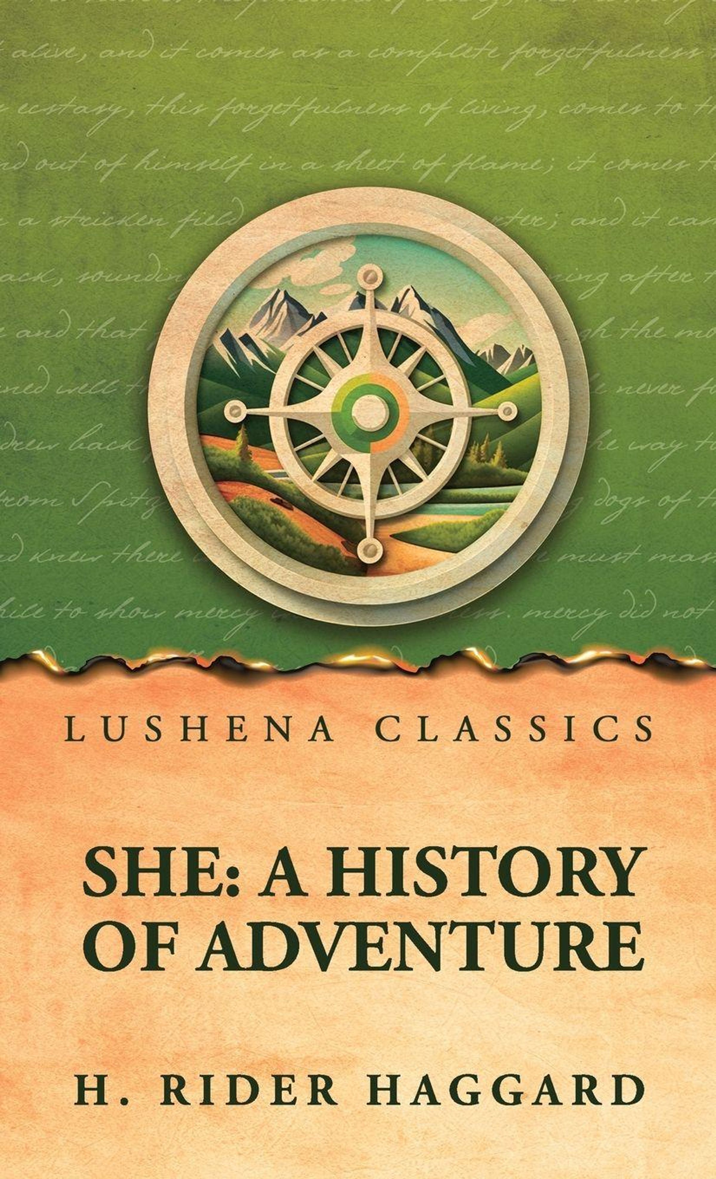 Lushena Classics: "She: A History of Adventure" von H. Rider Haggard. Kompass über Landschaftsillustration., Buch