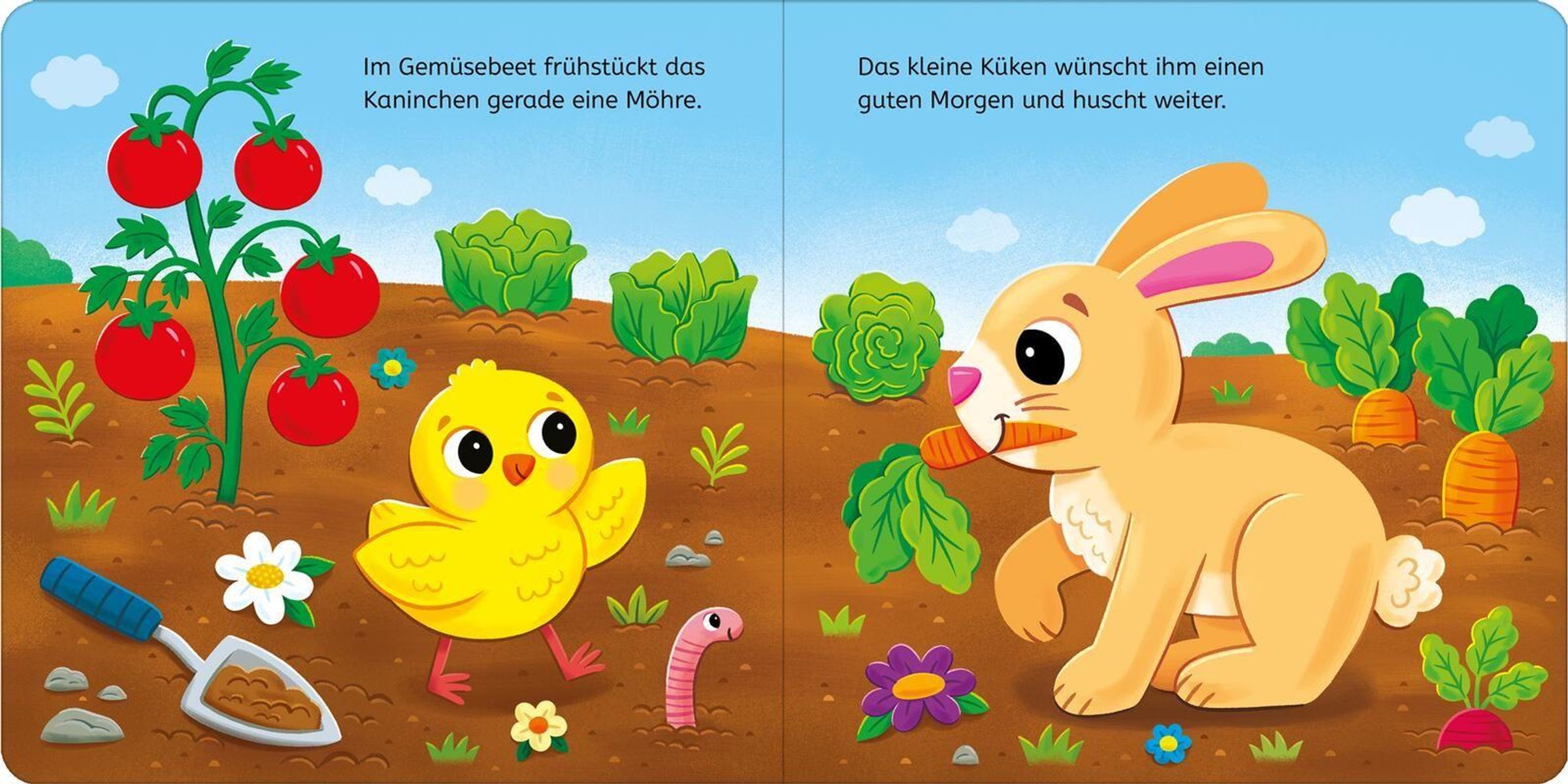- **Entdecke den Bauernhof:**Klare Bildsprache und ein kurzer Text sorgen für Bilderbuchspaß von Anfang an