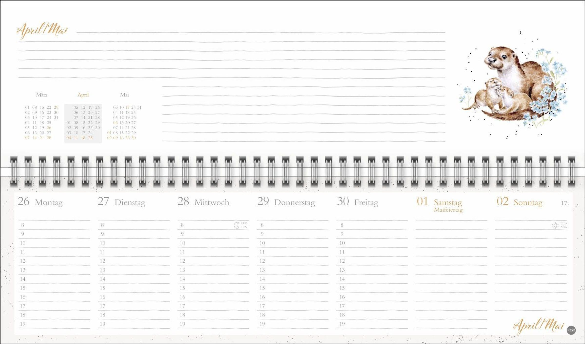 Ein gern gesehener Begleiter im Alltag: Spiral-Wochenkalender mit herzerwärmenden Tier-Motiven, vom kuscheligen Eichhörnchen bis hin zur liebevollen Entenmama
