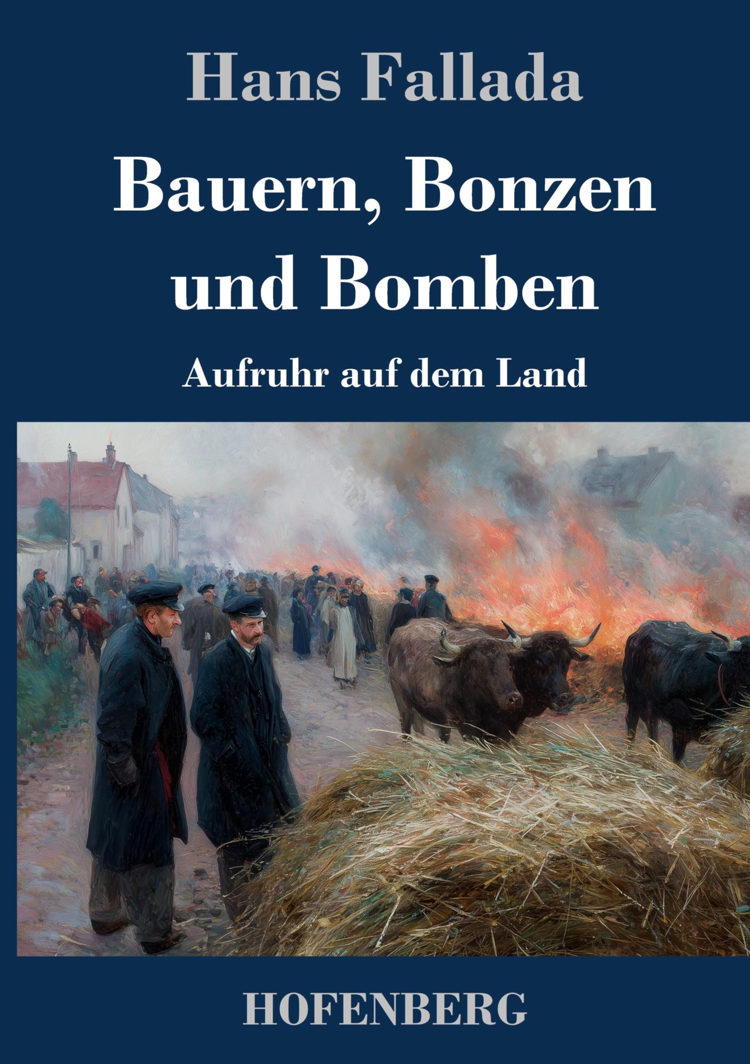 "Hans Fallada, Bauern, Bonzen und Bomben, Aufruhr auf dem Land, HOFENBERG." Illustration: Menschen und Kühe vor Feuer., Buch