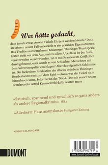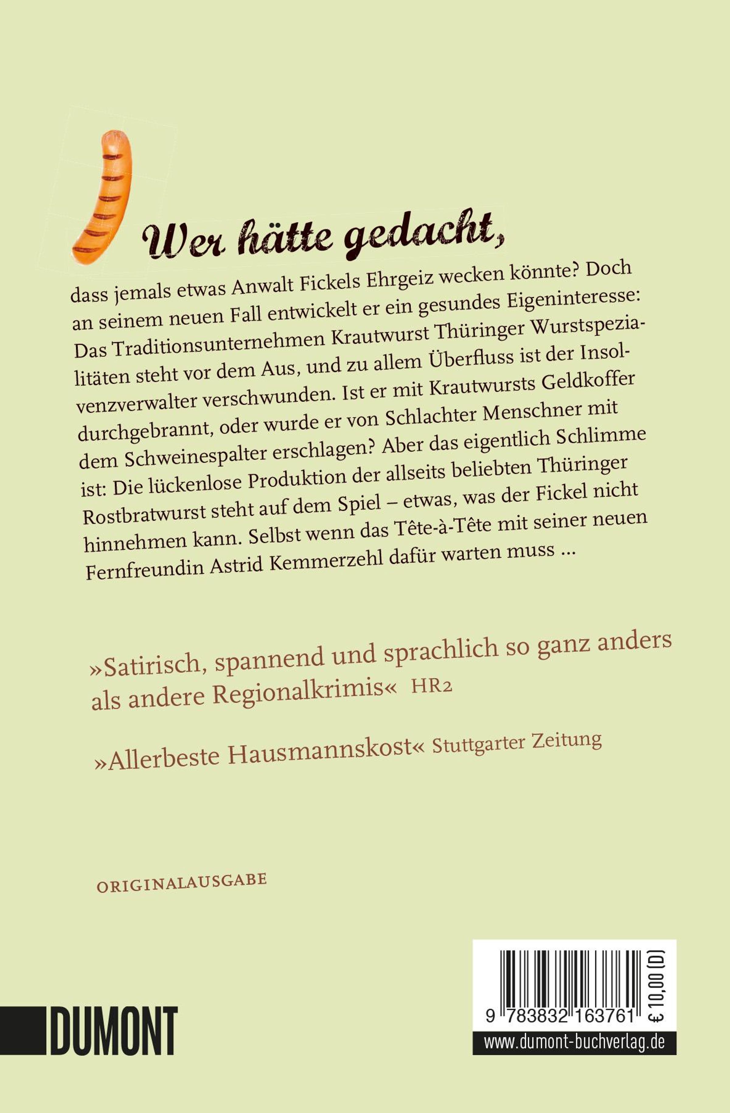 Das Traditionsunternehmen Krautwurst Thüringer Wurstspezialitäten hat Insolvenz angemeldet, Massenentlassungen stehen bevor, und das Schlimmste ist: Ein Produktionsstopp scheint unvermeidlich. - Die Folgen für Südwestthüringen und seine Bevölkerung wären verheerend: kalter Bratwurstentzug und Tofuschock, verwaiste Grillgitter und Löschbierschwemme. Eine ganze Region droht abzudriften. Zu allem Überfluss ist der Insolvenzverwalter spurlos verschwunden. Ist er mit einem Geldkoffer durchgebrannt, wie es Geschäftsführer Jürgen Krautwurst befürchtet, oder wurde er von Schlachter Menschner mit dem Schweinespalter erschlagen? Eine total verfahrene Situation - wer, wenn nicht Anwalt Fickel sollte den Karren aus dem Dreck ziehen? Dabei muss er sich allerdings zwischen zwei Leidenschaften entscheiden: Liebe oder Rostbratwurst.