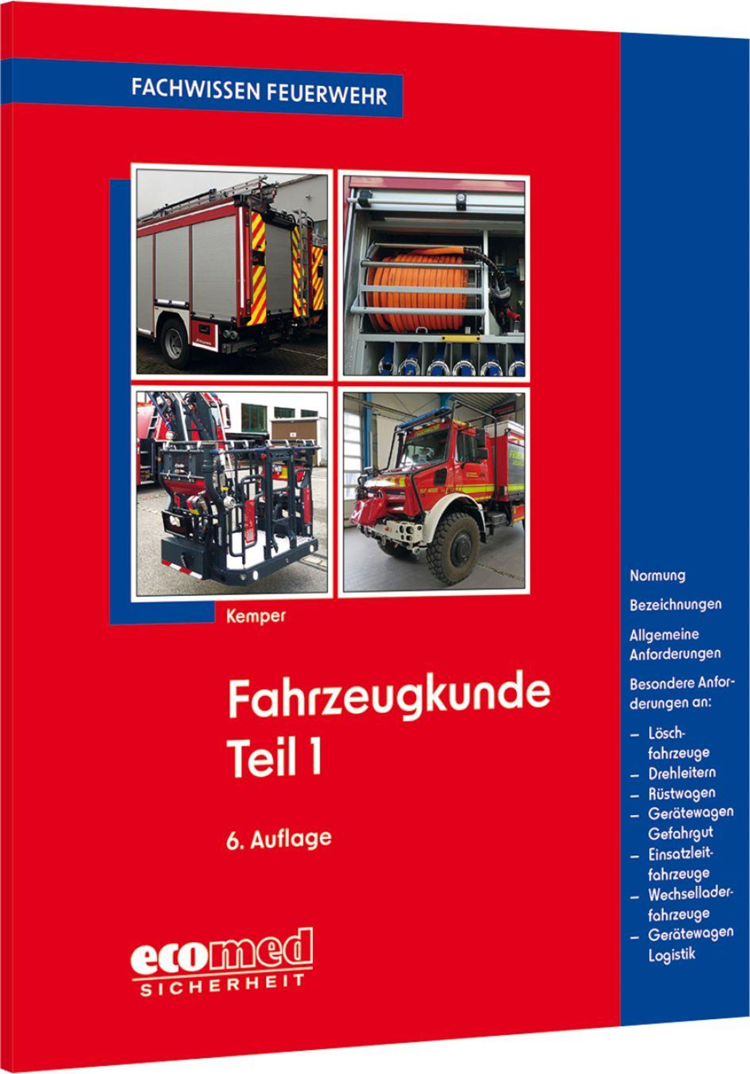 "Fachwissen Feuerwehr. Fahrzeugkunde Teil 1, 6. Auflage." Rotes Cover, Bilder von Feuerwehrfahrzeugen., Buch