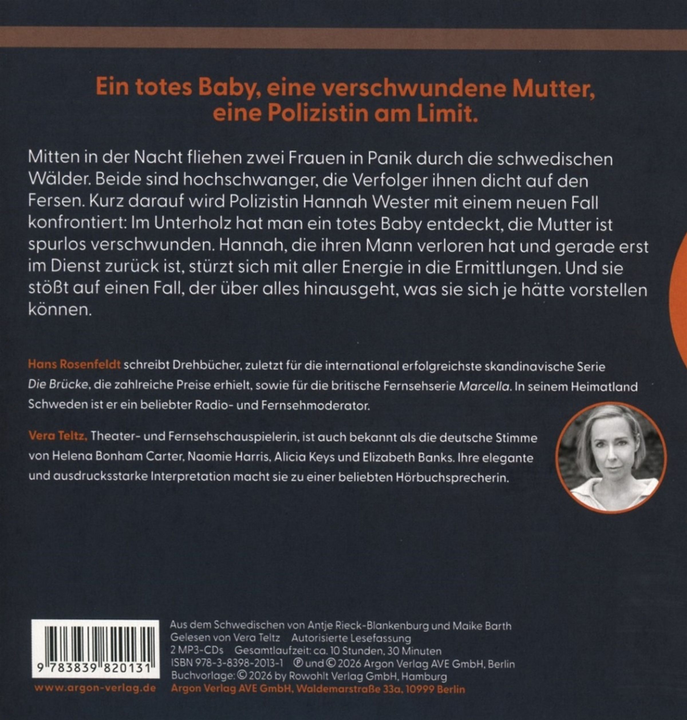 Hans Rosenfeldt, Jahrgang 1964, arbeitet erfolgreich als Drehbuchautor und als Moderator in Funk und Fernsehen.Biografie (Vera Teltz)