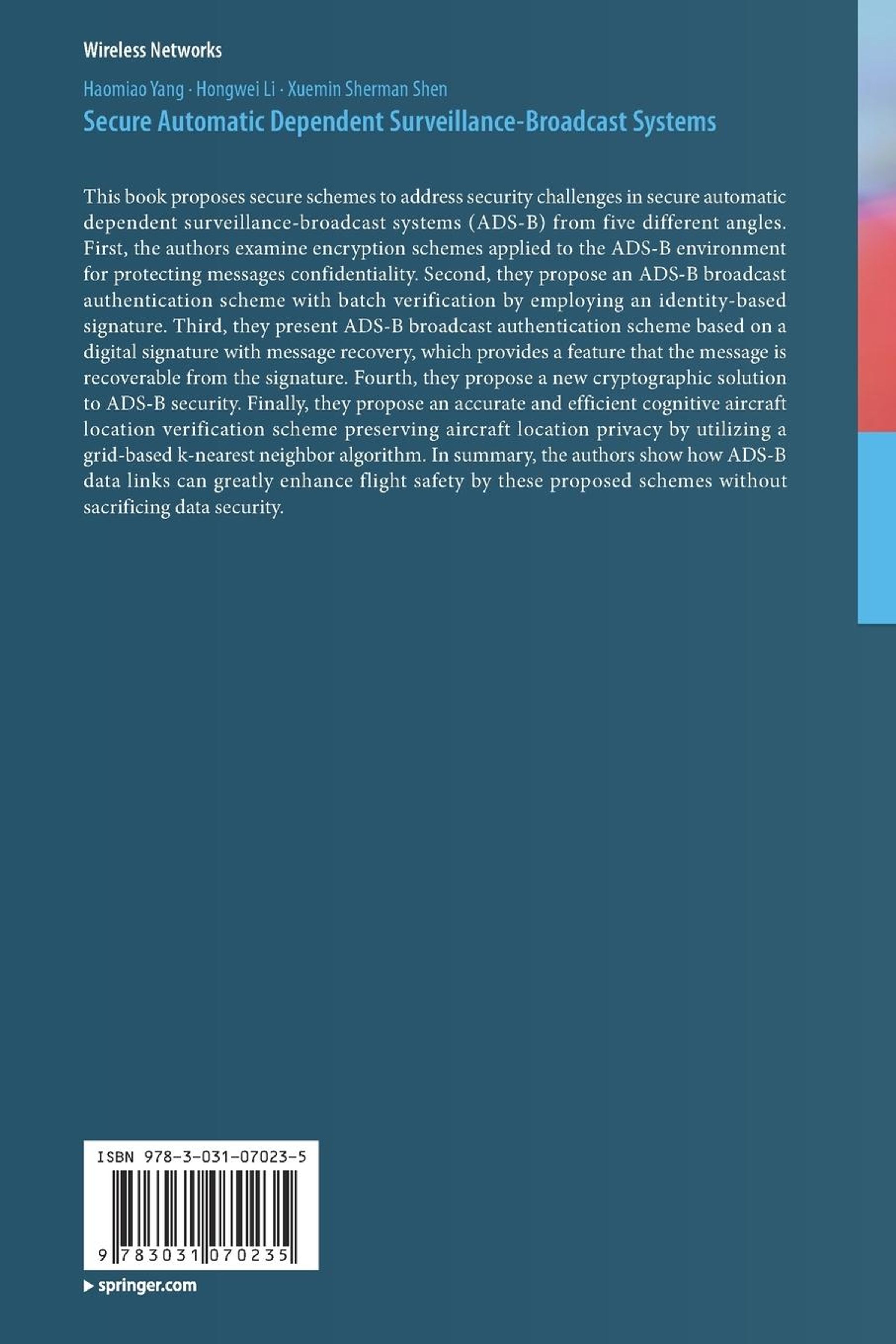 This book proposes secure schemes to address security challenges in secure automatic dependent surveillance-broadcast systems (ADS-B) from five different angles. First, the authors examine encryption schemes applied to the ADS-B environment for protecting messages confidentiality. Second, they propose an ADS-B broadcast authentication scheme with batch verification by employing an identity-based signature. Third, they present ADS-B broadcast authentication scheme based on a digital signature with message recovery, which provides a feature that the message is recoverable from the signature. Fourth, they propose a new cryptographic solution to ADS-B security. Finally, they propose an accurate and efficient cognitive aircraft location verification scheme preserving aircraft location privacy by utilizing a grid-based k-nearest neighbor algorithm. In summary, the authors show how ADS-B data links can greatly enhance flight safety by these proposed schemes without sacrificing data security. Proposes several secure schemes to address security challenges in secure automatic dependent surveillance-broadcast systems (ADS-B); Provides extensive experiments and evaluates the proposed schemes using real-world data; Shows how ADS-B data links can greatly enhance safety without sacrificing data security