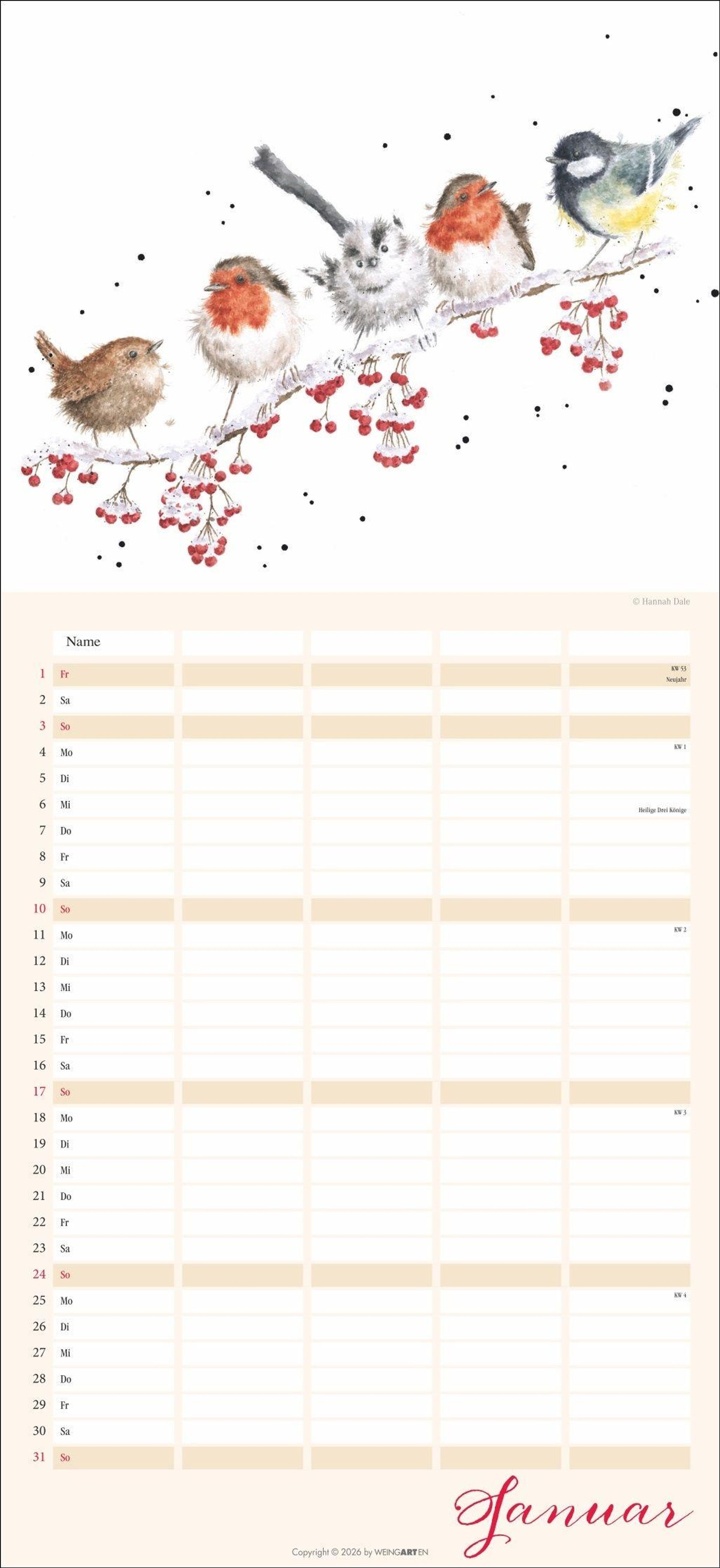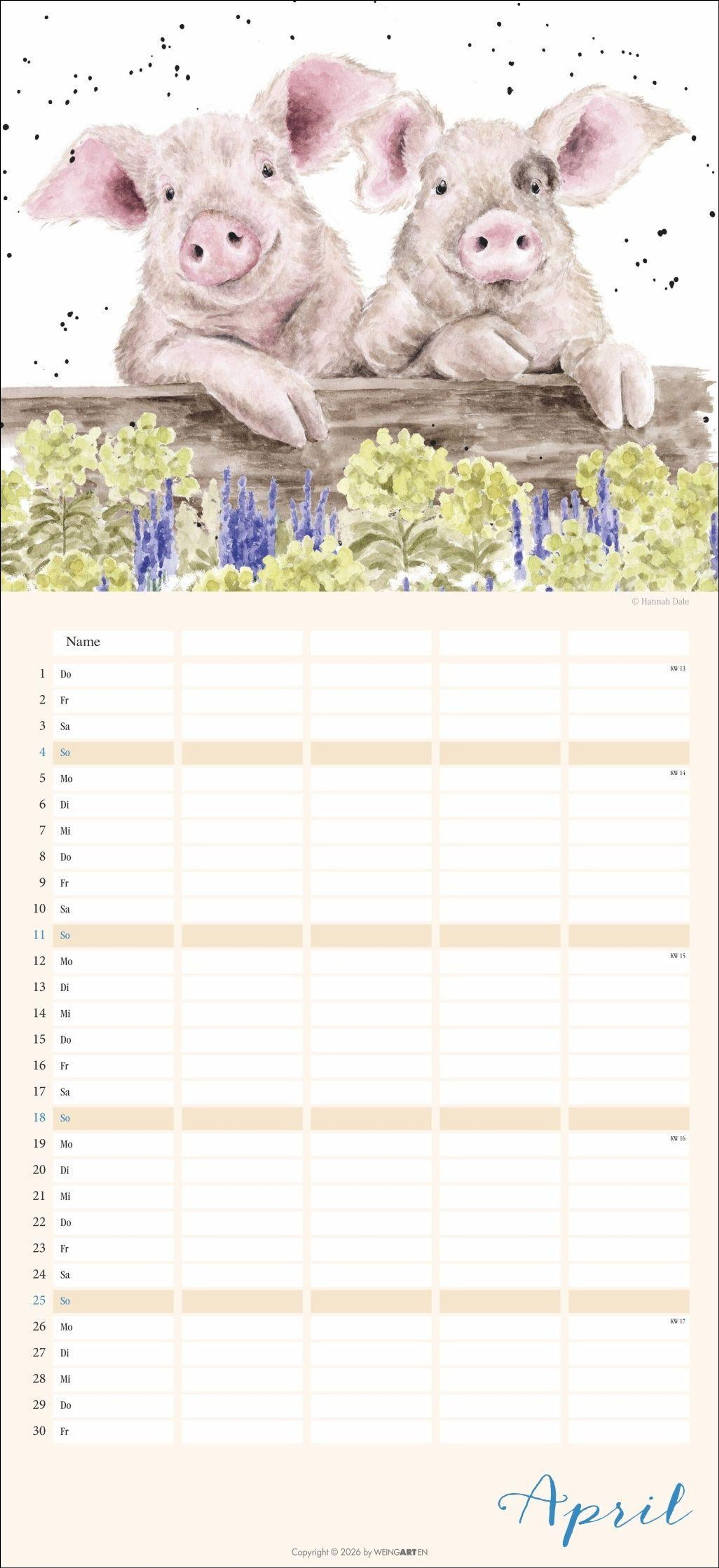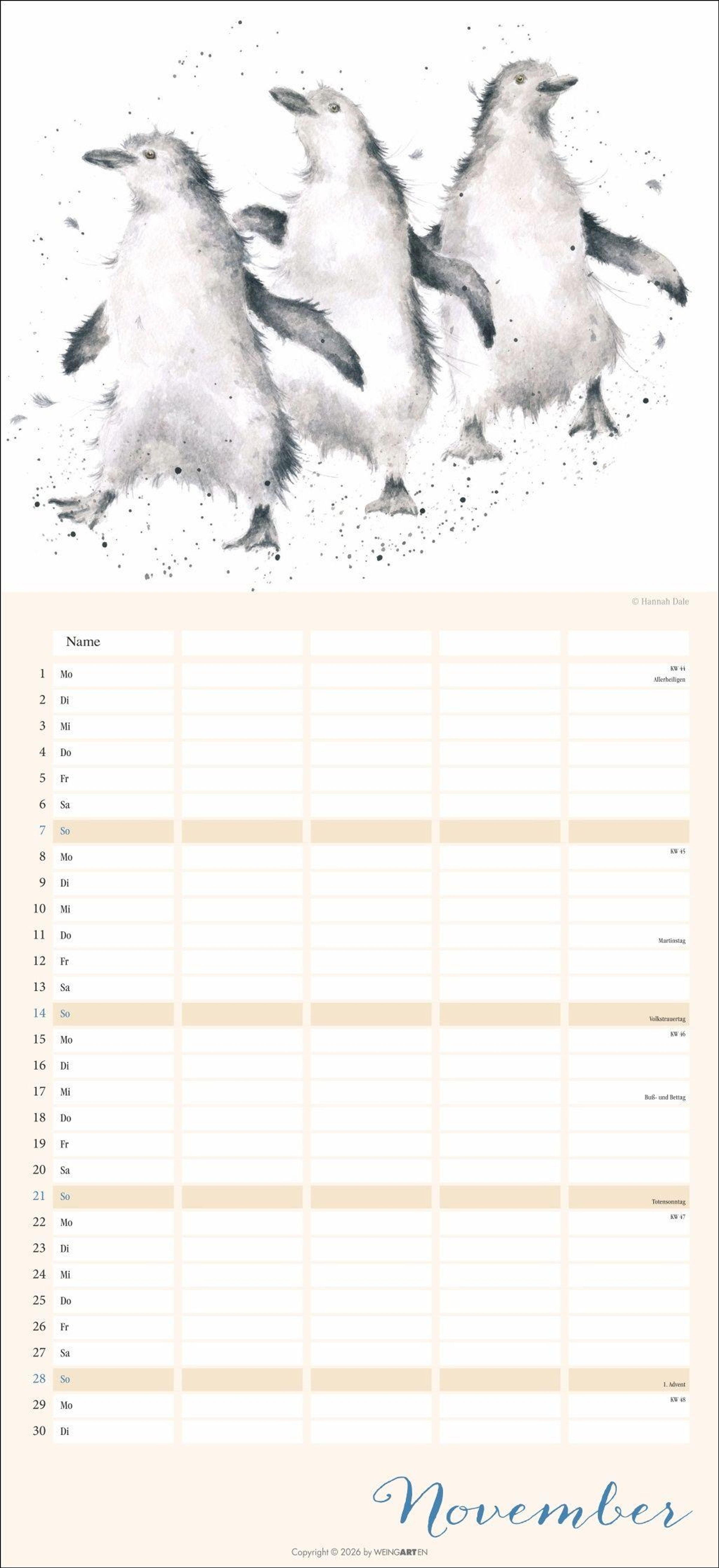 - Großer Terminkalender mit 5 Spalten für Familien. Schöner Familien-Wandkalender 2027 mit süßen Tier-Illustrationen. 22 x 48 cm.