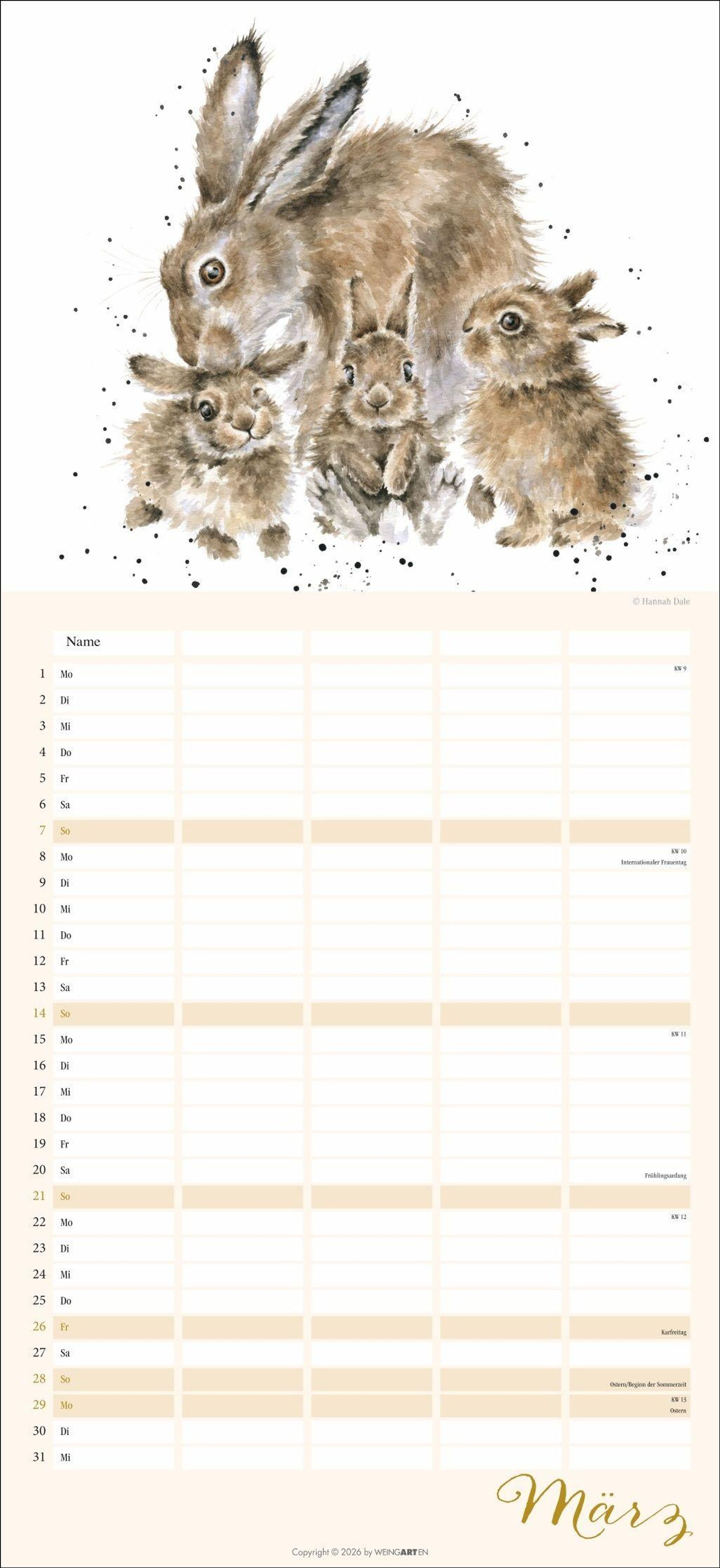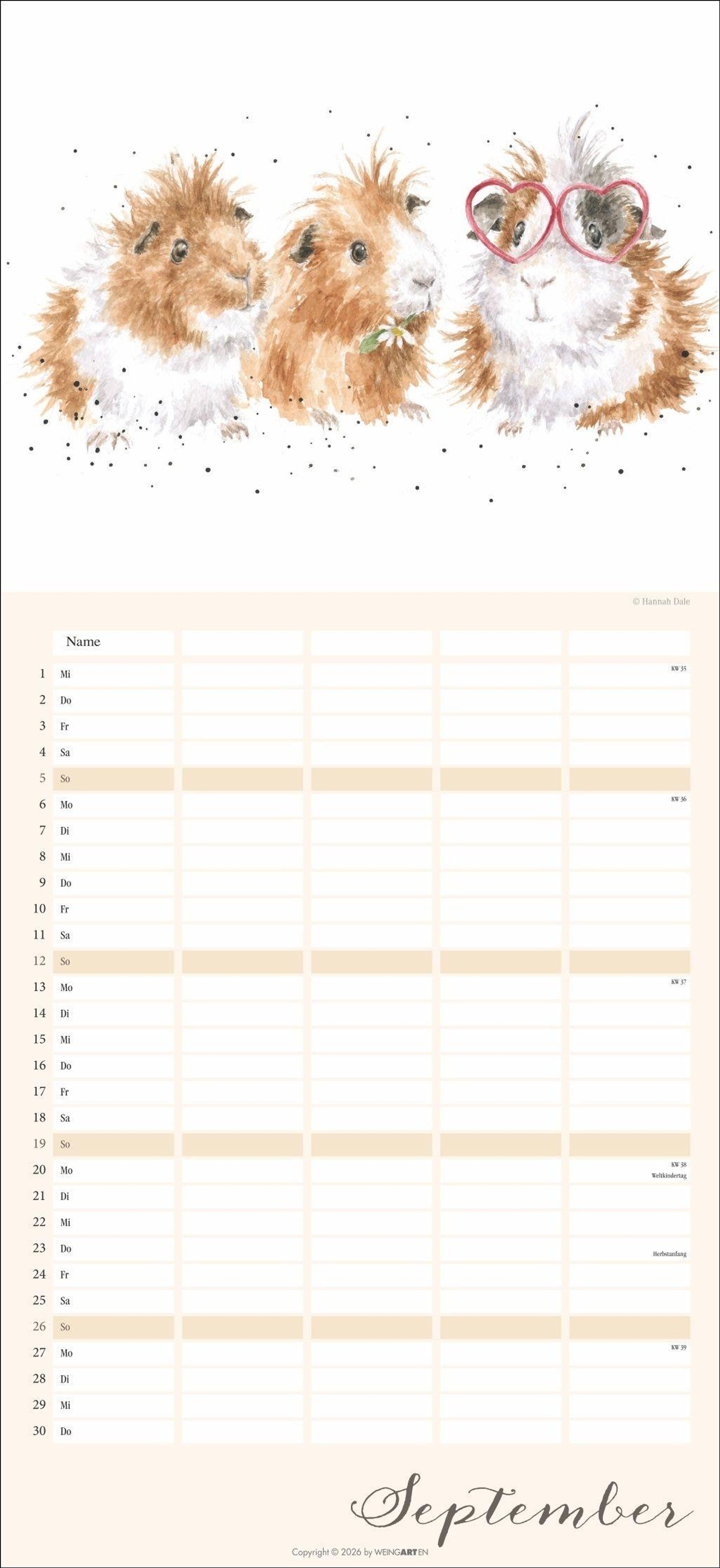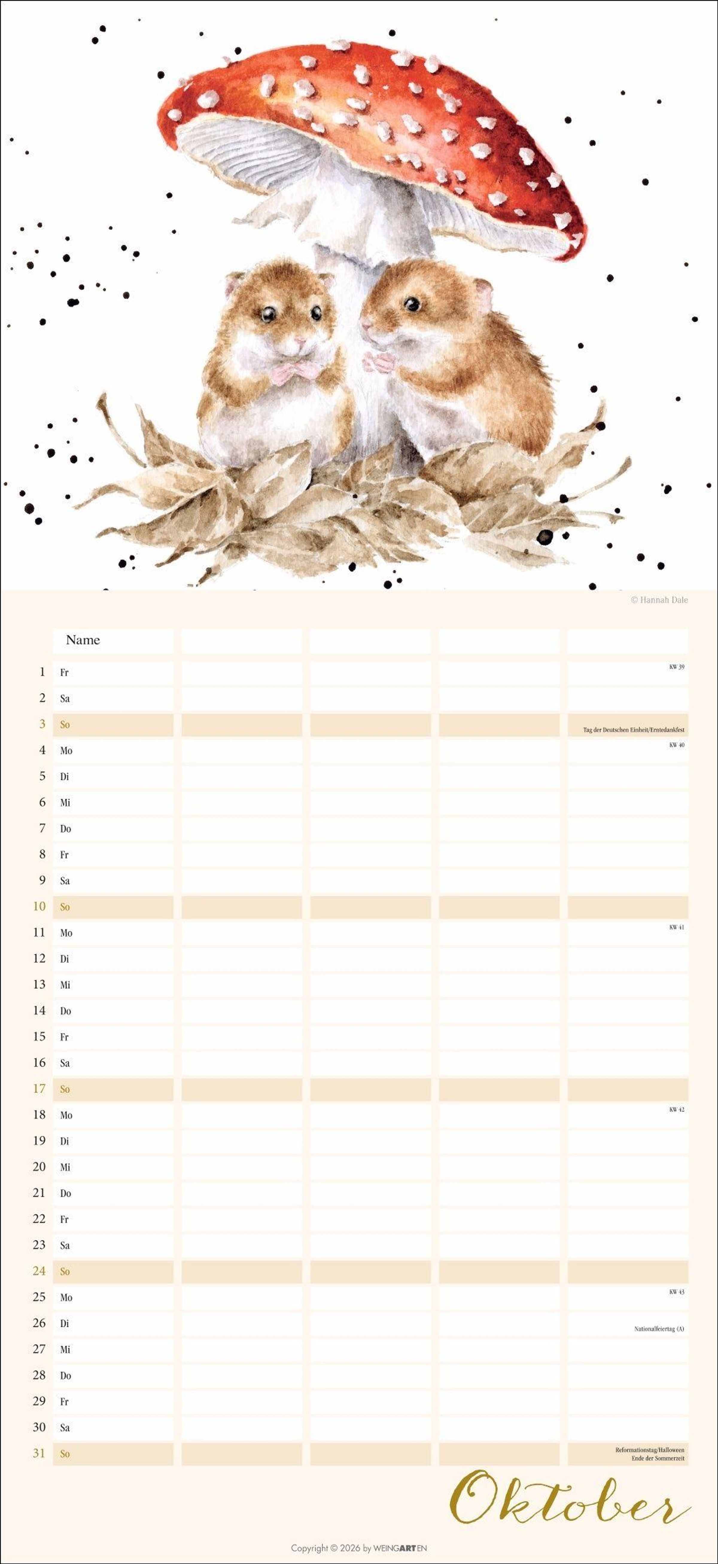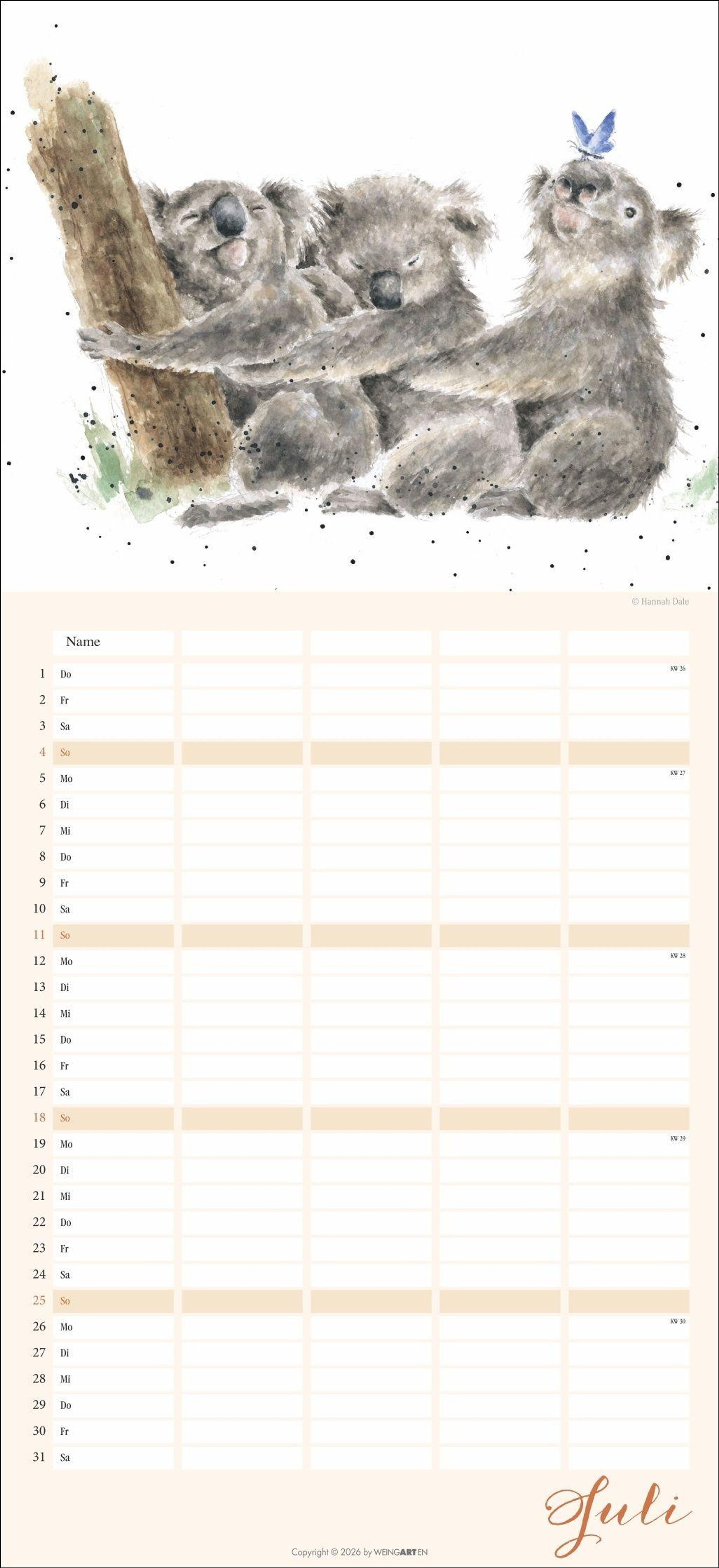 Mit 12 herzerwärmenden Motiven vom verliebten Eichhörnchen-Paar bis zu kuscheligen Koalas, aus der Feder der britischen Illustratorin Hannah Dale